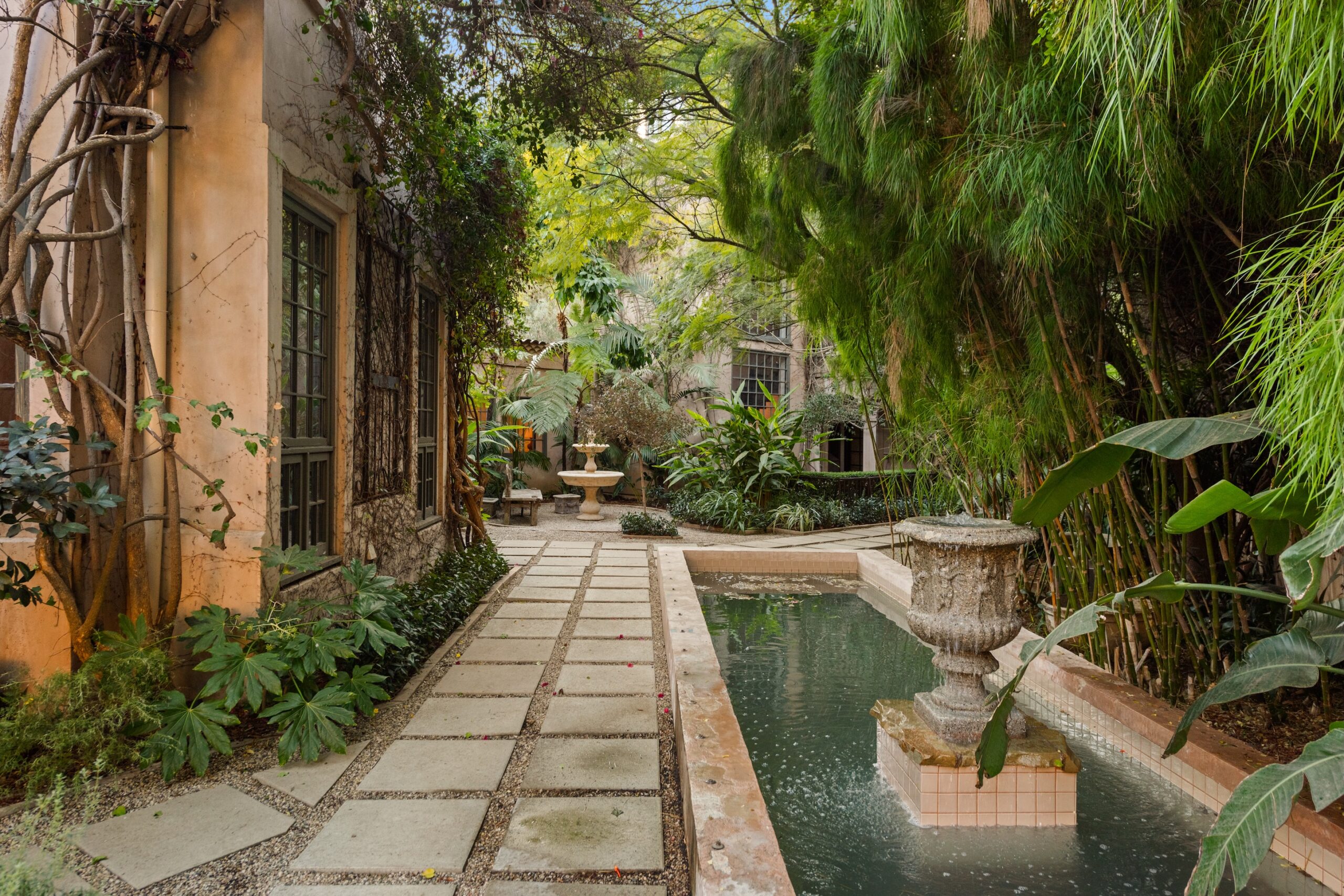 Perched in Beverly Hills, this enchanting Mediterranean retreat combines timeless design with lush natural surroundings. Exposed wooden beams, arched doorways, and hand-laid brick floors create a warm, rustic elegance throughout. Sunlit interiors feature spacious living areas, a chef's kitchen with high-end appliances, and a serene primary suite with a spa-like bath. Step outside to discover a private oasis with a sparkling pool, serene courtyards, and vine-covered pergolas. Stone pathways wind through landscaped gardens, leading to a rooftop patio with breathtaking panoramic views. Additional highlights include a detached guest suite, custom office, and the charm of a bell tower-inspired room. A perfect blend of privacy and proximity to Sunset Boulevard, this property offers an unparalleled lifestyle in one of LA's most coveted locations.