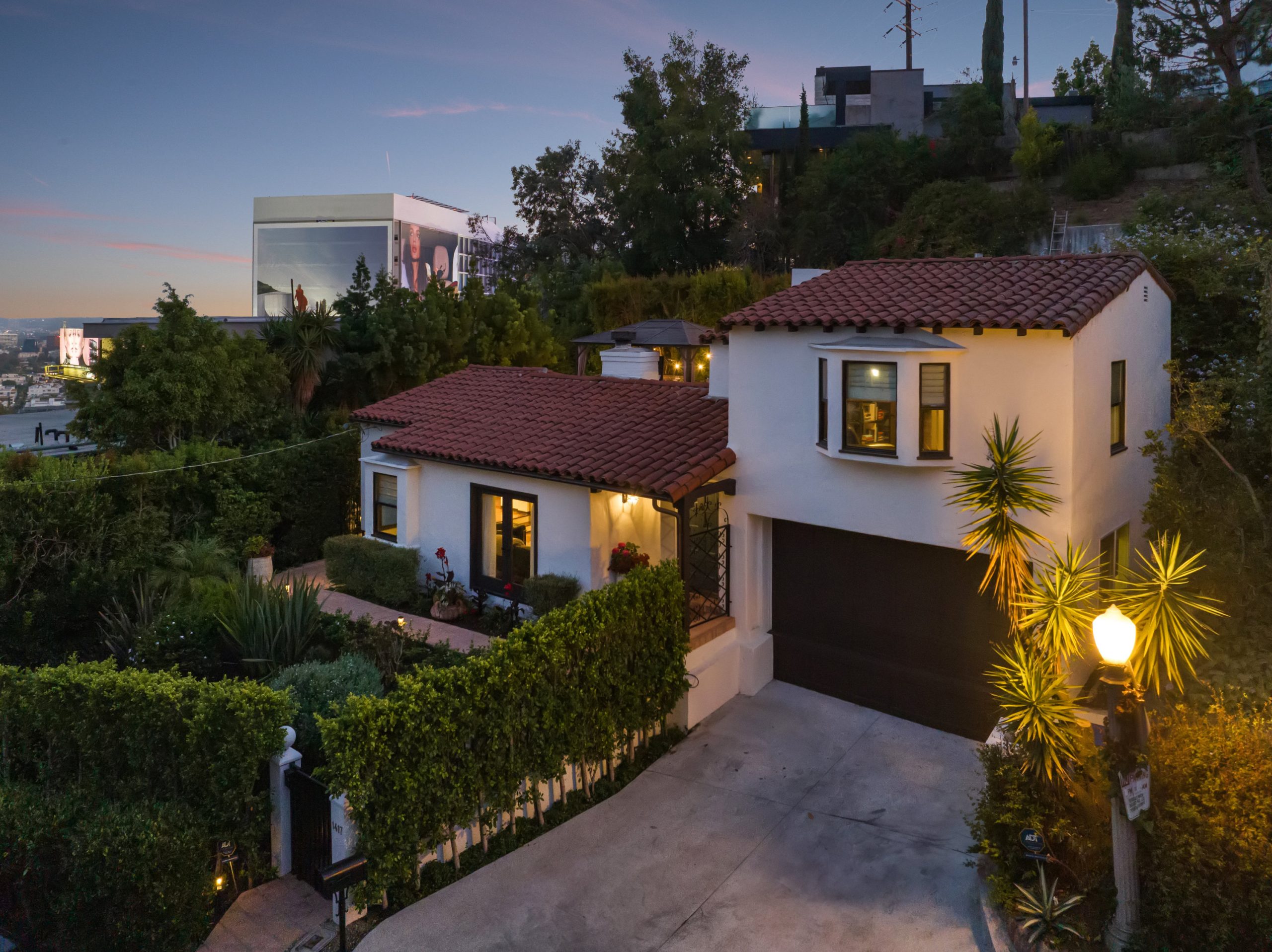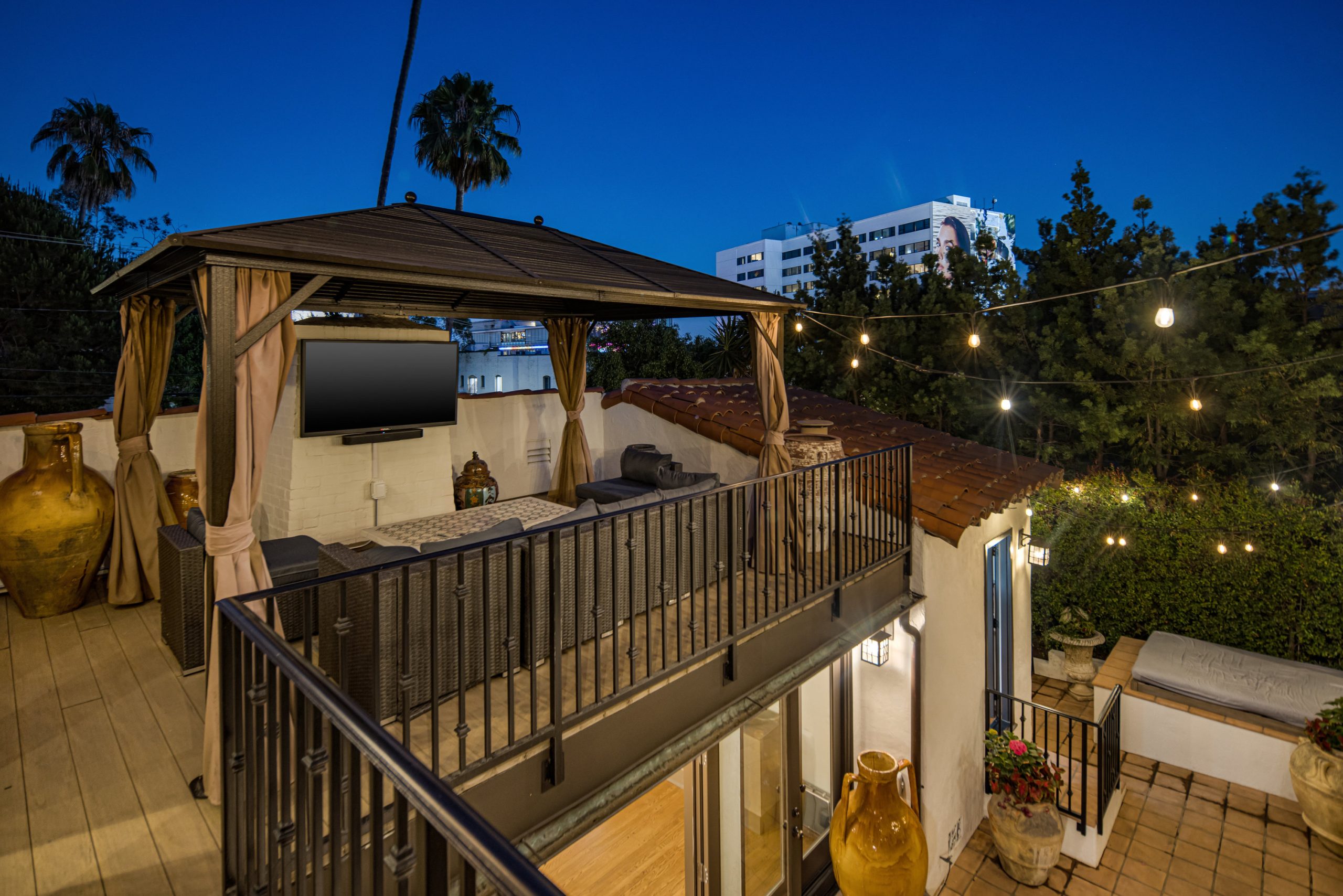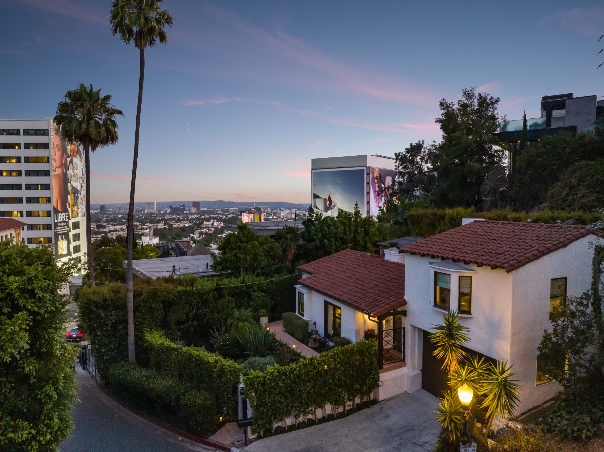 string(1484) "In a colorful garden setting just a few doors above Sunset, this vintage 2-story Spanish Revival home is ideally located in the heart of the Strip, close to many great dining establishments, upscale hotels, the Sunset Plaza shopping district, and West Hollywood's most happening nightlife. As you approach the gated home, you'll be charmed by the lush, vibrant landscaping. Enter through the original paneled front door and be welcomed by the arched walls, warm oak floors, and coved plaster ceilings laid out in a classic floor plan that incorporates large private patios on both the first and second levels; it's a California lifestyle classic. Many French doors bring great light into the interiors, and the original fireplace imbues the home with a warm, classic ambiance. The dining room, perfect for dinner parties, opens to a very private courtyard through a wall of glass doors. A previous renovation transformed the garage into a spacious primary suite, complete with a built-in wall of wardrobe cabinets and a beautiful white marble bathroom. Upstairs is a second white mosaic marble bathroom with tub and shower, and two more bedrooms; both are light-filled, one with two large closets and French doors that open to a patio that features a covered gazebo with TV entertainment system. Enjoy the glamor and excitement of the iconic Sunset Strip while living in a light-filled classic home in a private green garden; complete privacy just moments away from great experiences."