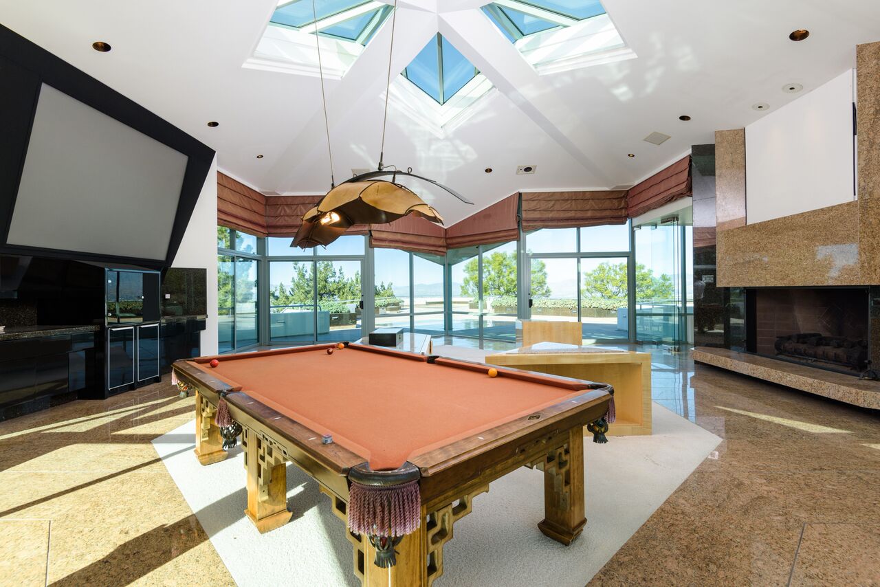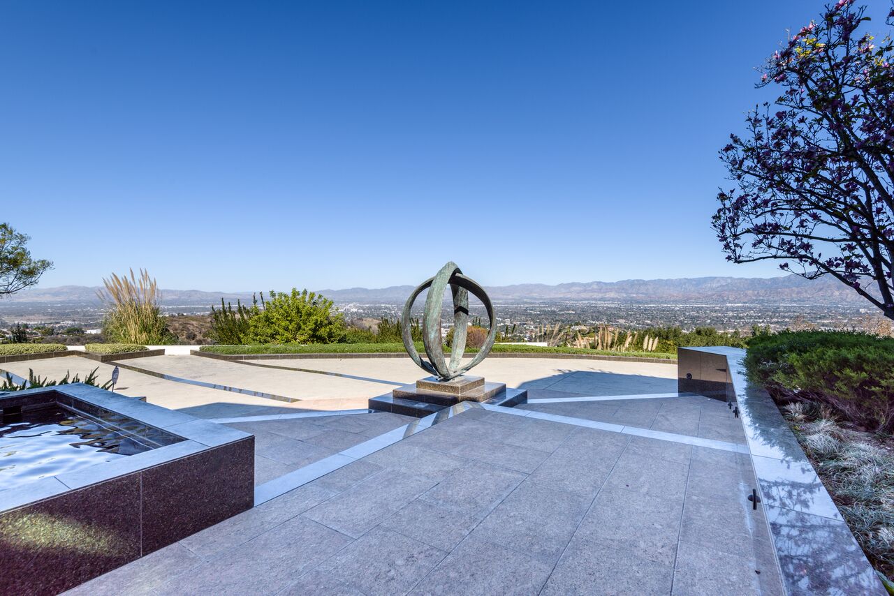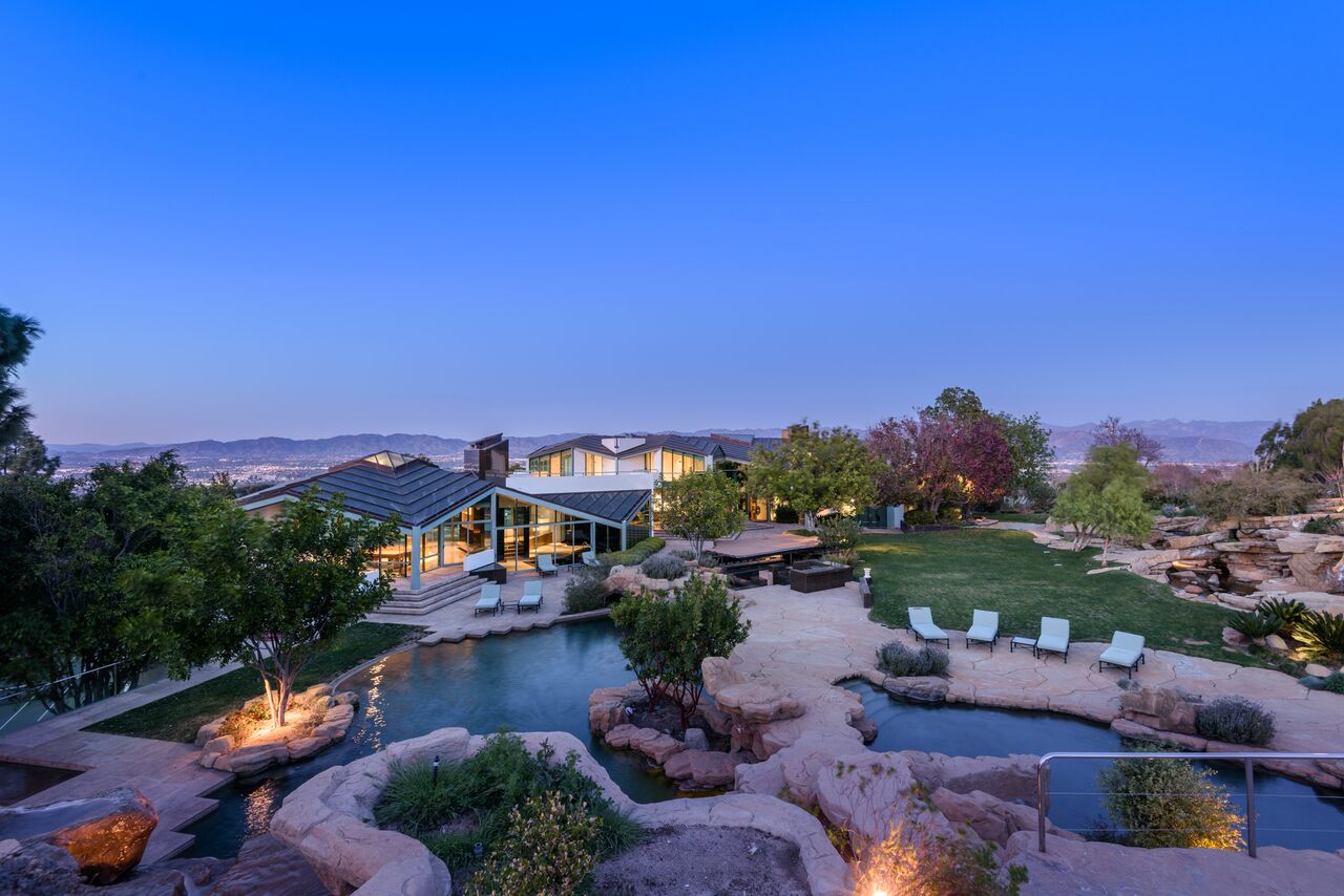 Set atop famed Mulholland Drive this magnificently designed architectural estate resides on over 4 acres, offering an unparalleled lifestyle of seclusion, luxurious comfort, and lavish entertaining. A long private driveway leads up to a spectacular setting with commanding views and a motor court for over 30 cars. This custom-designed home with over 17,000 square feet, encompasses 10 bedrooms, 11 bathrooms and floor-to-ceiling glass-lined walls with steel beams. Overlapping stone marble stairs and high-sloping angular ceilings with pyramid shaped skylights are exquisitely juxtaposed with lateral stairwells, connecting balconies and open spaces. Additional and unique features include a Koi pond and stream that flows throughout the estate. A resort-style pool with rock sculpture, slide, and grotto along with a lighted North/South tennis court and outdoor dining terrace are specifically designed for concerts, fundraisers, or holiday parties.
