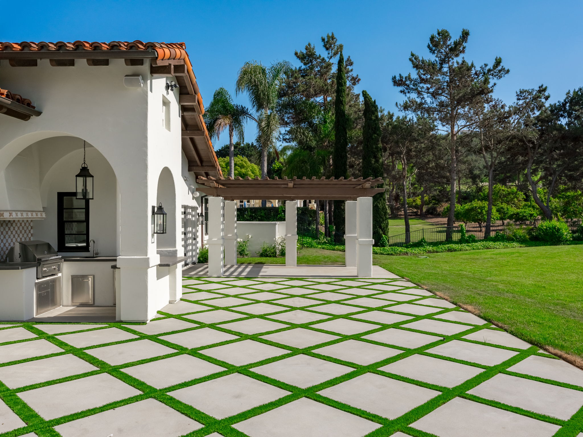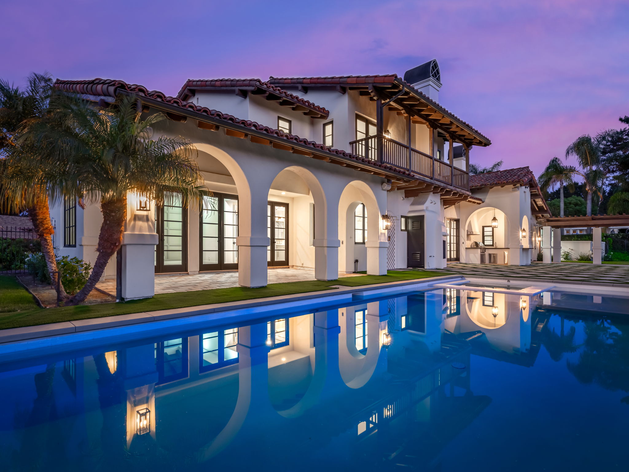 This impeccably renovated 5,478 sq. ft. residence is nestled within the prestigious guard-gated community of Del Mar Country Club. Every inch of this home has been thoughtfully curated with luxurious detail and high-end finishes. Designed to live like a single-level home, the main floor features a stunning primary suite and two versatile bonus rooms—ideal for a home office, gym, playroom, loft, or media space. The heart of the home is the show-stopping gourmet kitchen, outfitted with a grand center island, top-of-the-line stainless steel appliances, and custom cabinetry. Rich wood beams, wide-plank European oak flooring, and an abundance of natural light add warmth and character throughout. Upstairs, you’ll find three spacious ensuite bedrooms, offering comfort and privacy for family or guests. Downstairs also features a spectacular wine room that doubles as a game or playroom. The backyard is a true private oasis, complete with a sparkling pool, built-in BBQ, outdoor bathroom and shower, expansive grassy lawn, and a mature fruit orchard. Enjoy tranquil views of the golf course from multiple vantage points throughout the property. Just minutes from the beach and close to world-class dining, shopping, and top-rated schools in the award-winning Solana Beach School District and the San Dieguito Union High School District, this home seamlessly combines elegance, comfort, and coastal living.