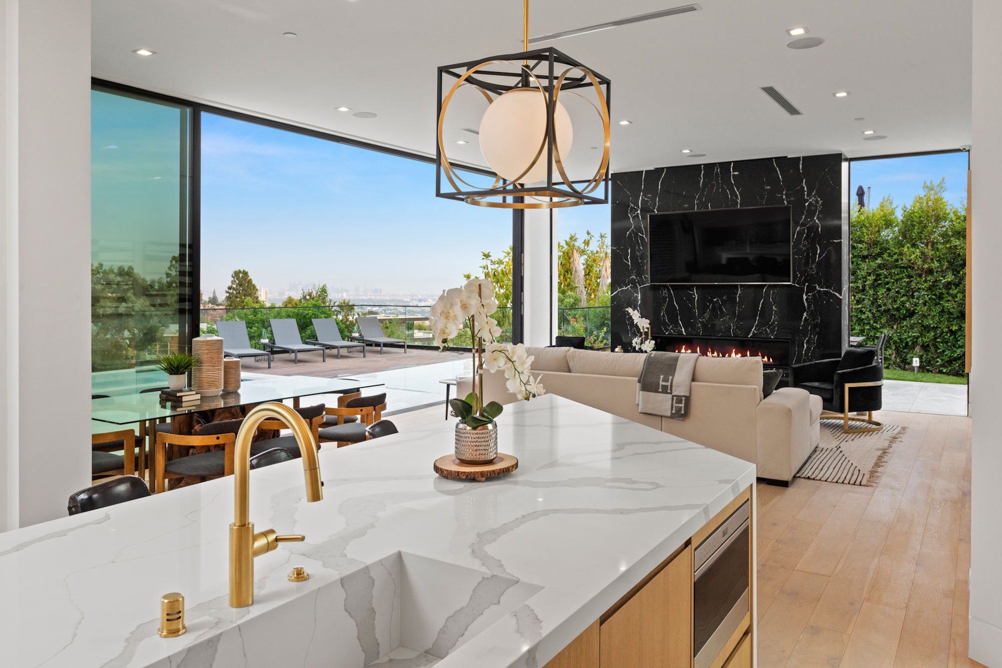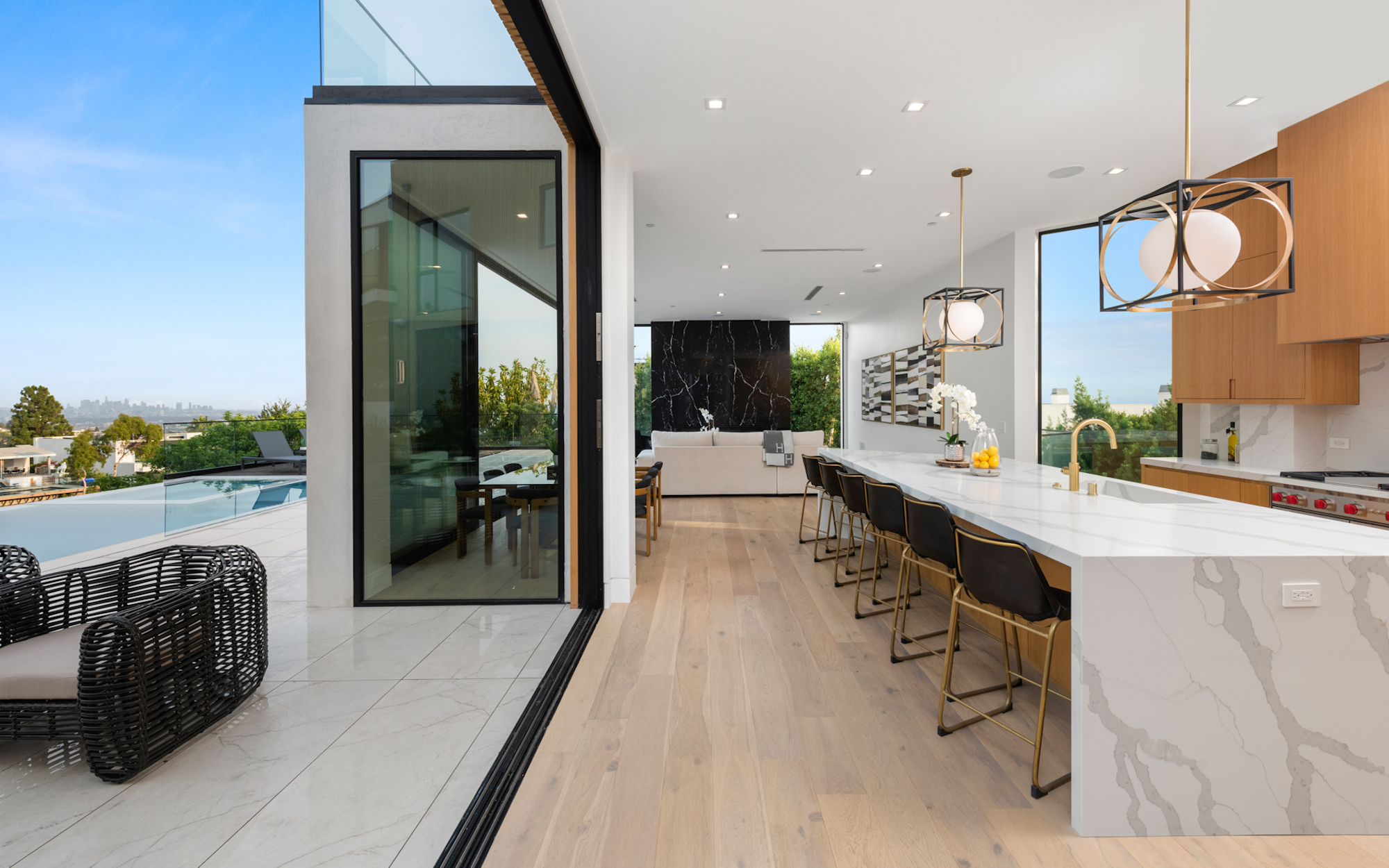 string(1230) "Setting a new standard for design and luxury, 1450 Harridge Drive is Beverly Hills latest masterpiece. Set on a double lot, the expansive city views and unmatched quality are realized from the moment the front door pivots open. Extensively remodeled with the finest materials and supreme technology, the open floorplan boasts 5,400 square feet with immense natural light and seamless indoor/outdoor living. Showcasing immaculate finishes and fixtures, the home consists of 4 bedrooms, 5 bathrooms, several living spaces and a home theater. From the kitchen, dining area and living room, walls of glass vanish and welcome you to the unrivaled outdoor living spaces that host a negative infinity edge pool, spa, dining area, grass space and ample lounge room. The chef's kitchen outfitted with bespoke wood cabinetry and a white marble island is equipped with top-of-the-line stainless steel appliances. Through walls of glass, the impressive primary suite showcases some of the best views Los Angeles has to offer. Second to none, the suite features a large balcony, custom stone filled bathroom and large walk-in closet. Parking for up to 6 in the 1,300 sqft garage. This listing consists of 2 APN's 4355-018-004 and 4355-018-005."