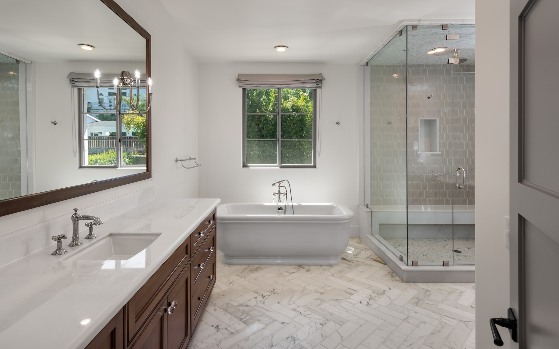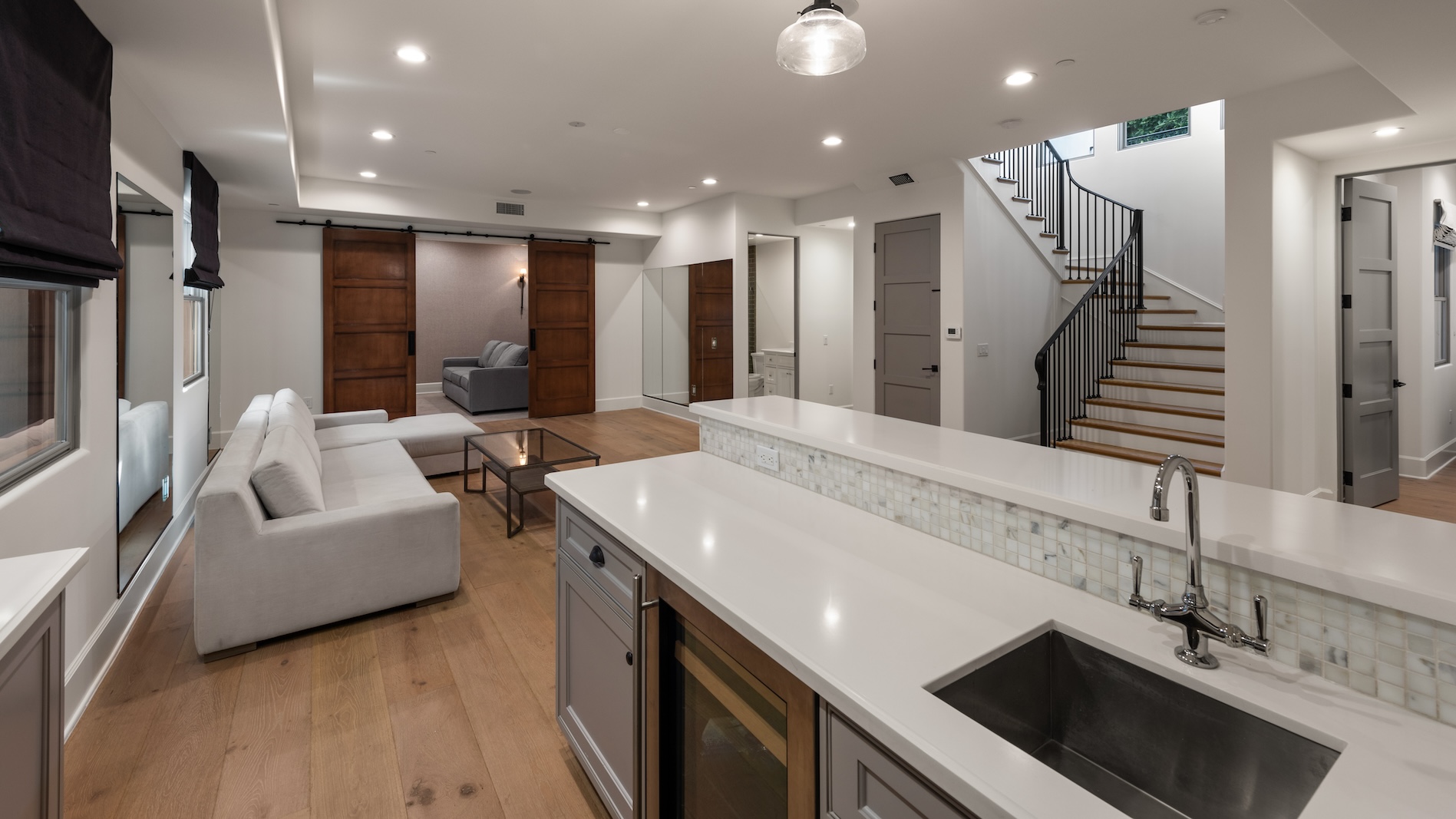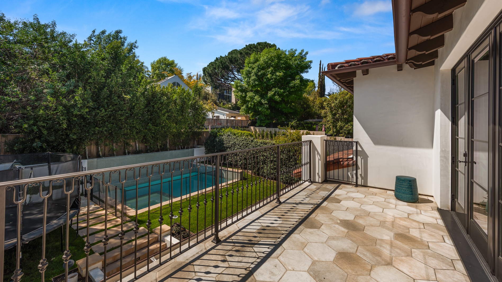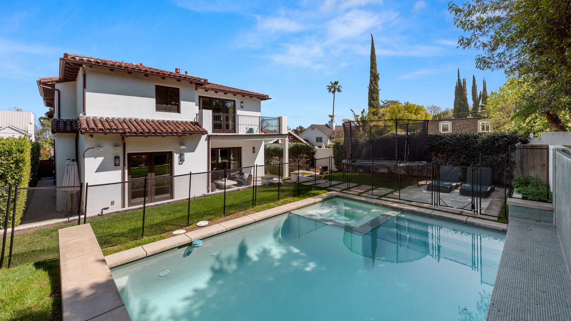Experience the epitome of luxury living in this exquisite Spanish Modern residence nestled South of the Blvd. With 6 generously appointed bedrooms and 6.5 sumptuous bathrooms, this home is meticulously crafted. Spanning 5,600 square feet, the residence exudes opulence with European oak floors and an open floorplan. The main level welcomes you with a chef's kitchen boasting a marble center island, top-of-the-line Thermador appliances, Calcutta tile backsplash, and abundant cabinetry. The adjacent dining and family areas feature a cozy fireplace, built-ins, and surround sound, seamlessly flowing into the private backyard oasis with a built-in BBQ, cascading waterfall, sparkling pool, spa, and manicured grassy area to set the stage for lavish outdoor gatherings. The basement reveals an entertainer's paradise, complete with a full wine cellar, office, media room, bar area with sink, laundry facilities, two spacious bedroom, and two bathrooms. Upstairs, transcend in the primary suite with a spacious balcony, fireplace, his and hers walk-in closets, and an upscale bathroom adorned with double vanities, a freestanding soaking tub, and an expansive steam shower featuring Italian Calcutta and Zanger tiling. Also on the upper level are three additional bedrooms, two of which boast private balconies, and a separate laundry room. The residence is protected with a security system and enjoys an unbeatable location in Sherman Oaks.