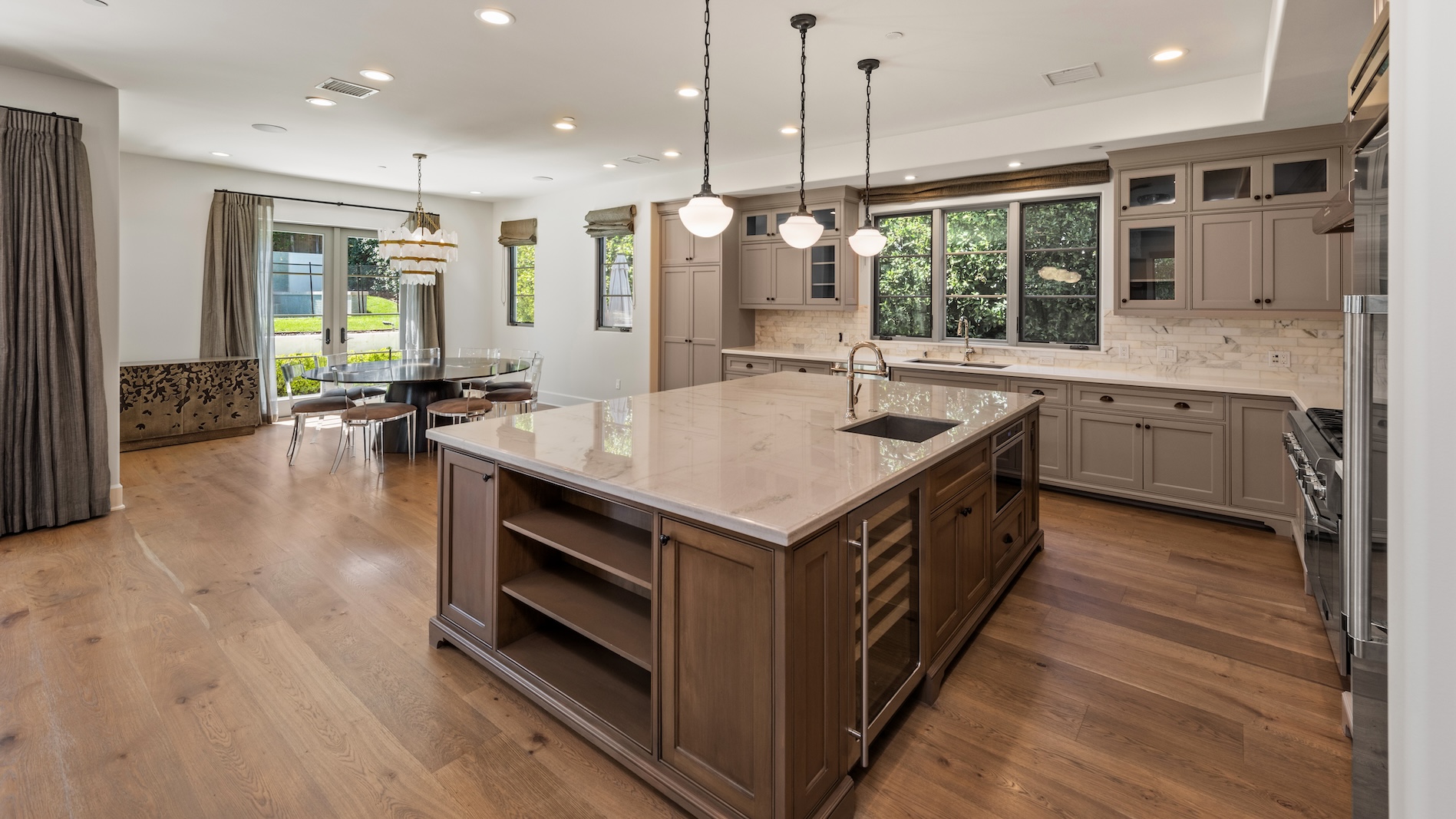 string(1440) "Experience the epitome of luxury living in this exquisite Spanish Modern residence nestled South of the Blvd. With 6 generously appointed bedrooms and 6.5 sumptuous bathrooms, this home is meticulously crafted. Spanning 5,600 square feet, the residence exudes opulence with European oak floors and an open floorplan. The main level welcomes you with a chef's kitchen boasting a marble center island, top-of-the-line Thermador appliances, Calcutta tile backsplash, and abundant cabinetry. The adjacent dining and family areas feature a cozy fireplace, built-ins, and surround sound, seamlessly flowing into the private backyard oasis with a built-in BBQ, cascading waterfall, sparkling pool, spa, and manicured grassy area to set the stage for lavish outdoor gatherings. The basement reveals an entertainer's paradise, complete with a full wine cellar, office, media room, bar area with sink, laundry facilities, two spacious bedroom, and two bathrooms. Upstairs, transcend in the primary suite with a spacious balcony, fireplace, his and hers walk-in closets, and an upscale bathroom adorned with double vanities, a freestanding soaking tub, and an expansive steam shower featuring Italian Calcutta and Zanger tiling. Also on the upper level are three additional bedrooms, two of which boast private balconies, and a separate laundry room. The residence is protected with a security system and enjoys an unbeatable location in Sherman Oaks."