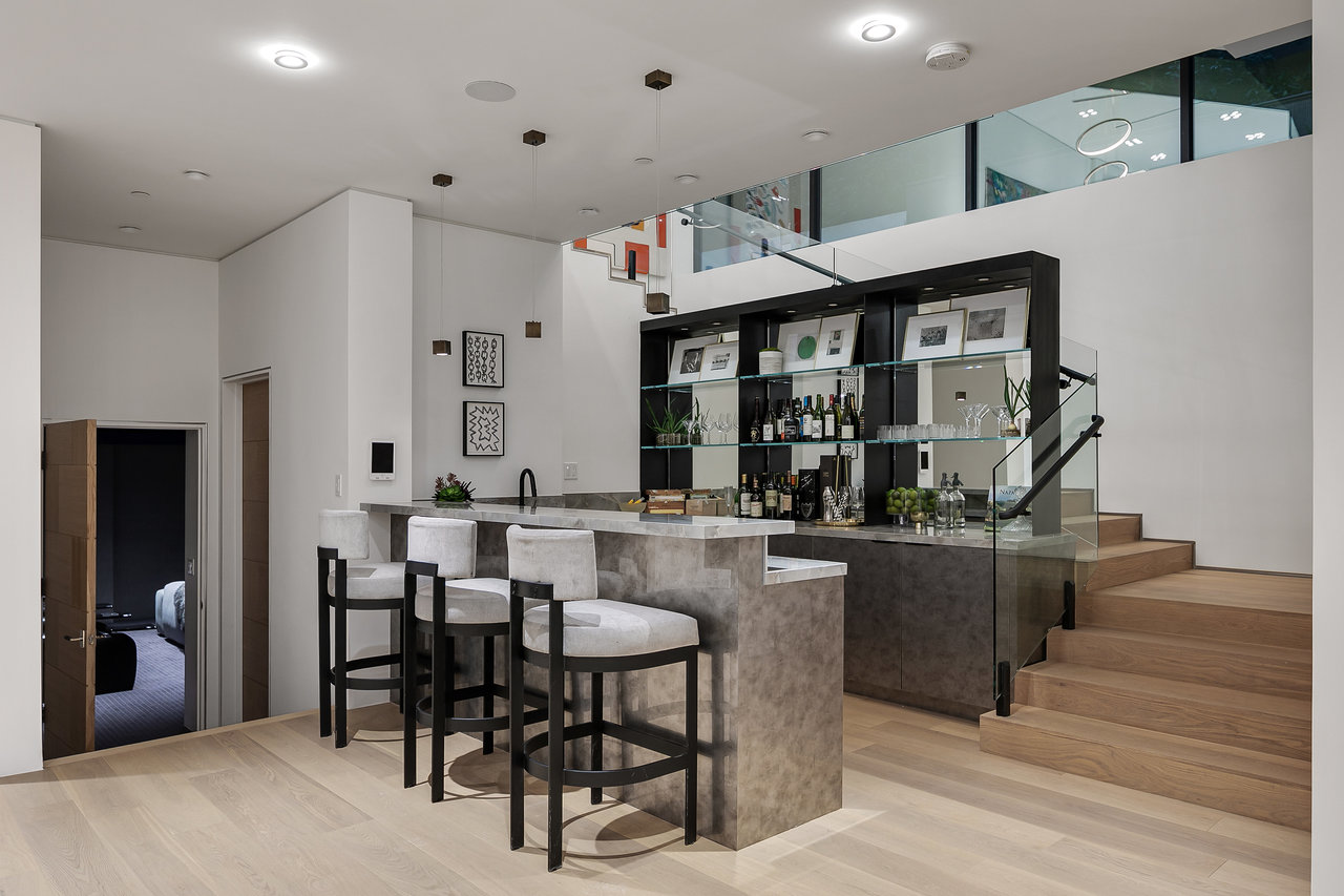 Fourteen88 Rising Glen: Brand New, ultra-Private Organic Contemporary, painstakingly modified to owners specifications over years of constructions. Highest end finishes throughout, world class amenities, sparing no detail. Spanning approximately 7,000 SQFT with incredible scale, and flooded with an abundance of natural light. You are welcomed to a double height massive custom Brazilian monkey wood pivot door, unto a gracious foyer. Disappearing walls of glass to giant pool area, with Full BBQ/ Outdoor Kitchen and smart wiring throughout. Primary suite that rivals the best, 4 total bedrooms, GYM, STATE OF THE ART THEATER, wine tasting/ Billiards room, and downstairs bar. Best rooftop deck in the city with staggering views city skyline. An architectural feat long in the making, ready for the most discerning buyer that could not be built again for the price we are asking.