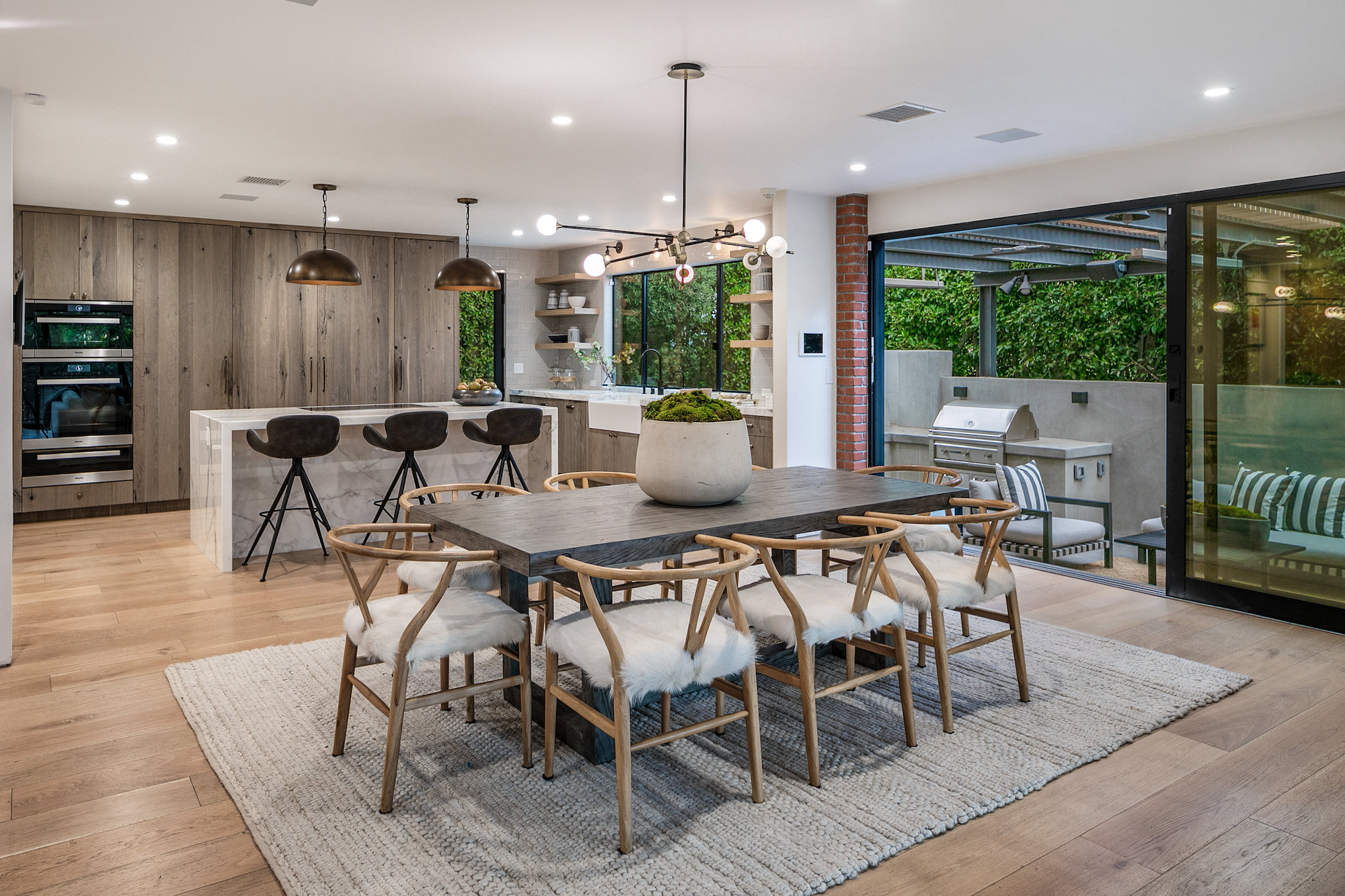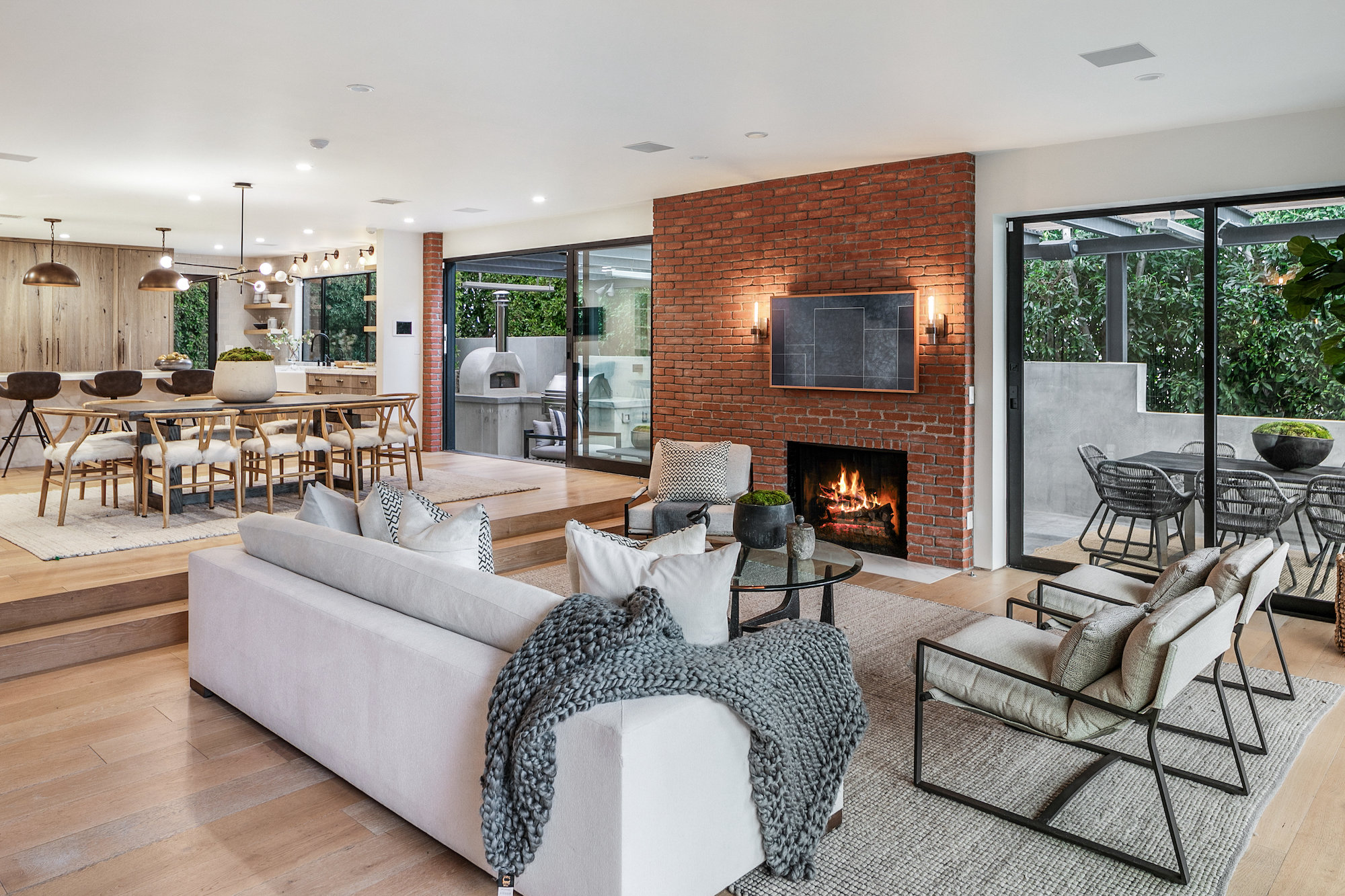 string(921) "Set behind gates in the coveted location of lower Sunset Plaza, this contemporary home provides the utmost privacy. With 3,751 square feet of immaculate design and jet-liner city views, the home boasts a beautifully designed open floor plan with 4 bedrooms and 5 bathrooms, a guest house with an additional 1 bedroom and 1 bathroom and a flex theatre/office. Showcasing a Calacatta marble waterfall island, reclaimed wood cabinetry and top of the line gourmet appliances, the stunning chef's kitchen is open to the dining and living room. From the living room sliding Fleetwood doors open completely to the outdoor patio hosting a grill and an imported Italian pizza oven. The outdoor setting is an entertainers dream with a stunning pool, spa, flat grass area, and lush mature landscape. Designed to offer ultimate comfort and convenience, the home is fully equipped with a comprehensive smart system and A/V technology."