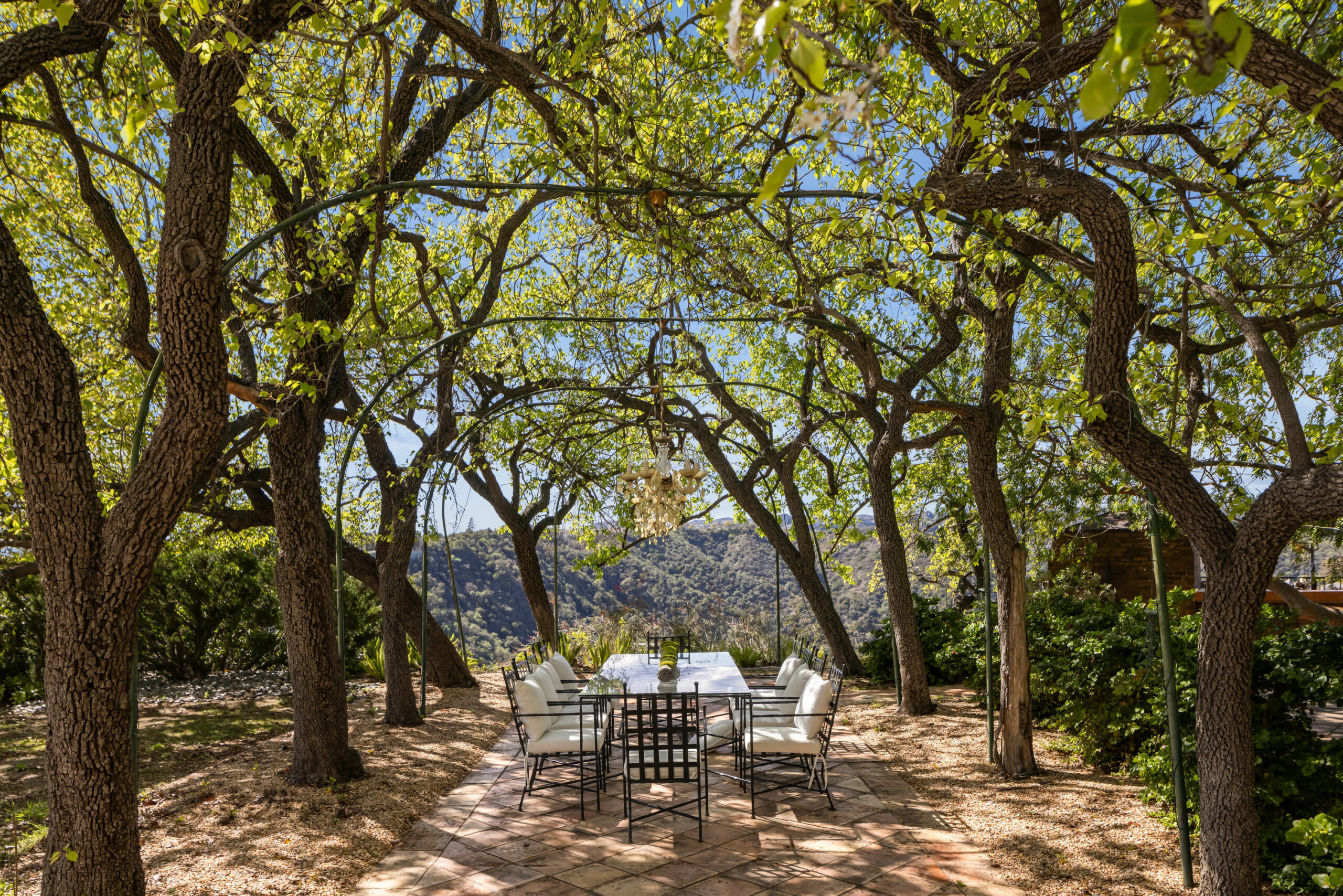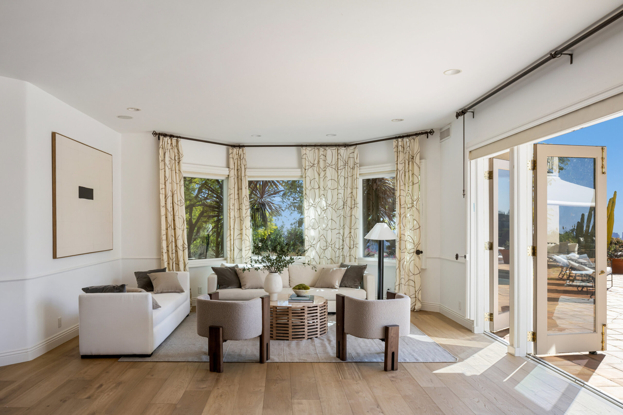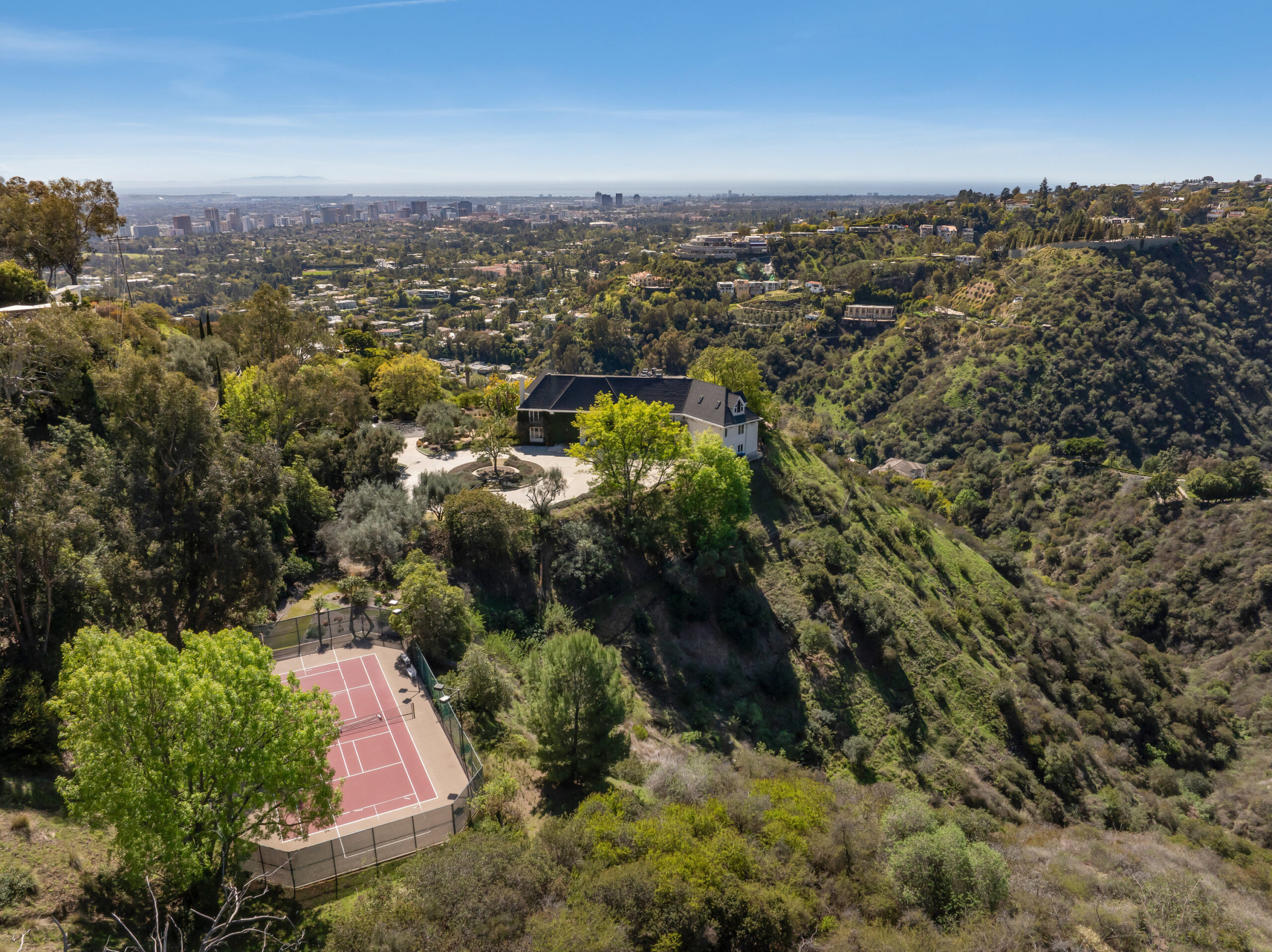 Perched atop a private 8.3-acre promontory in Beverly Hills, this extraordinary tennis court estate offers breathtaking panoramic views stretching from the city skyline to the ocean. A rare combination of seclusion and proximity to the heart of Los Angeles, this residence is a true sanctuary in the hills. Set on an expansive lot, the property boasts a beautifully designed main residence with classic architecture, a grand entry foyer with dual sweeping staircases, and sophisticated interiors bathed in natural light. The seamless indoor-outdoor flow invites you to enjoy the meticulously landscaped grounds, where an oversized terrace, pool, and spa provide an idyllic setting for relaxation and entertainment. A full-size tennis court is nestled within the lush greenery, offering a private retreat for recreation. Mature trees and thoughtfully designed outdoor dining spaces create a tranquil environment, perfect for al fresco gatherings with unparalleled views. With soaring ceilings, elegant finishes, and an open layout designed for both comfort and luxury, this home is a masterpiece of timeless design and modern amenities. Experience the ultimate in privacy and luxury at 1501 Tower Grove Drive - a rare offering in one of Los Angeles' most coveted enclaves.