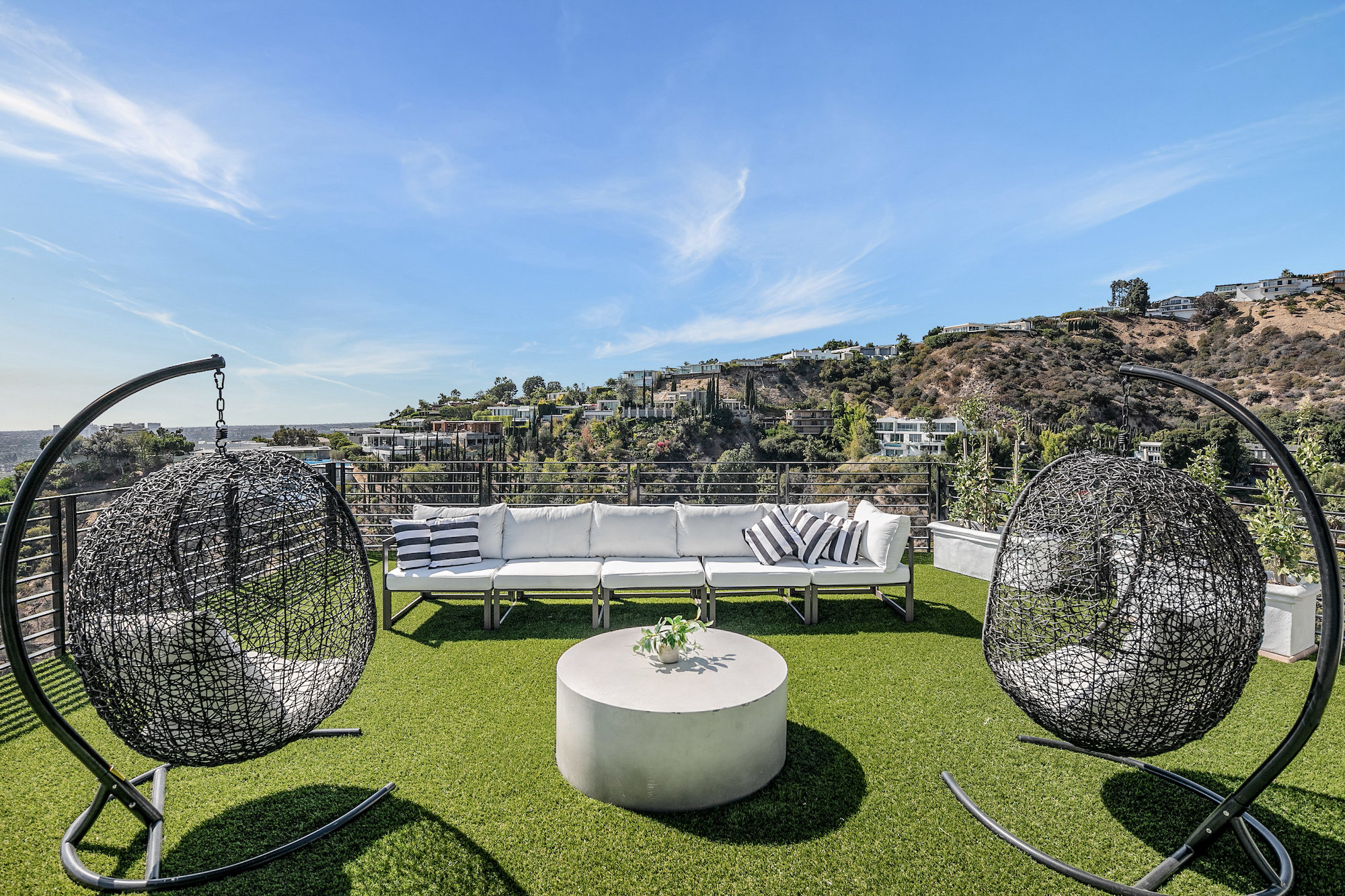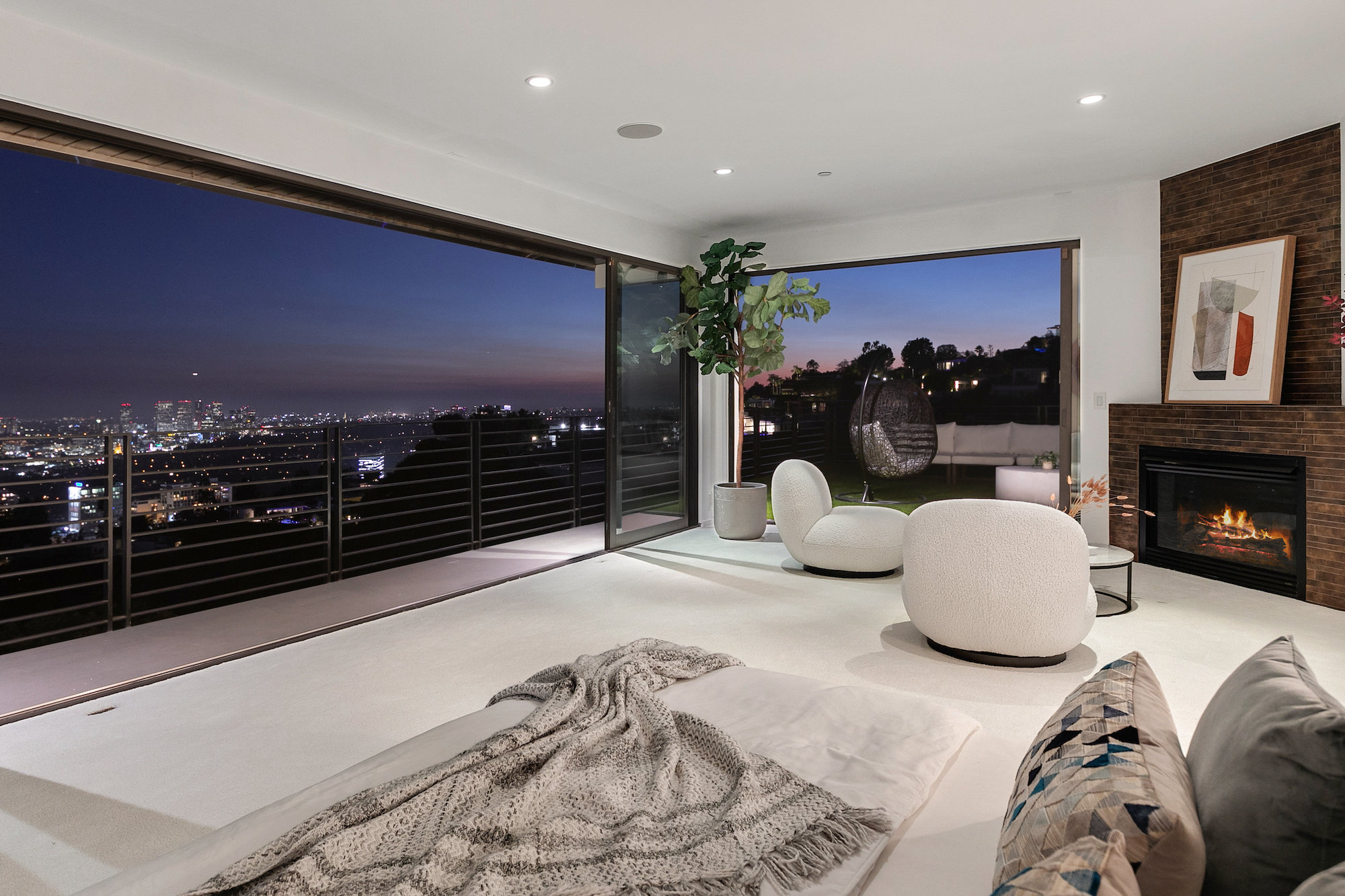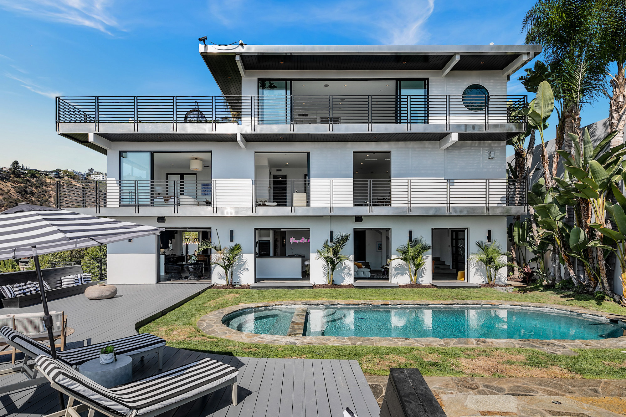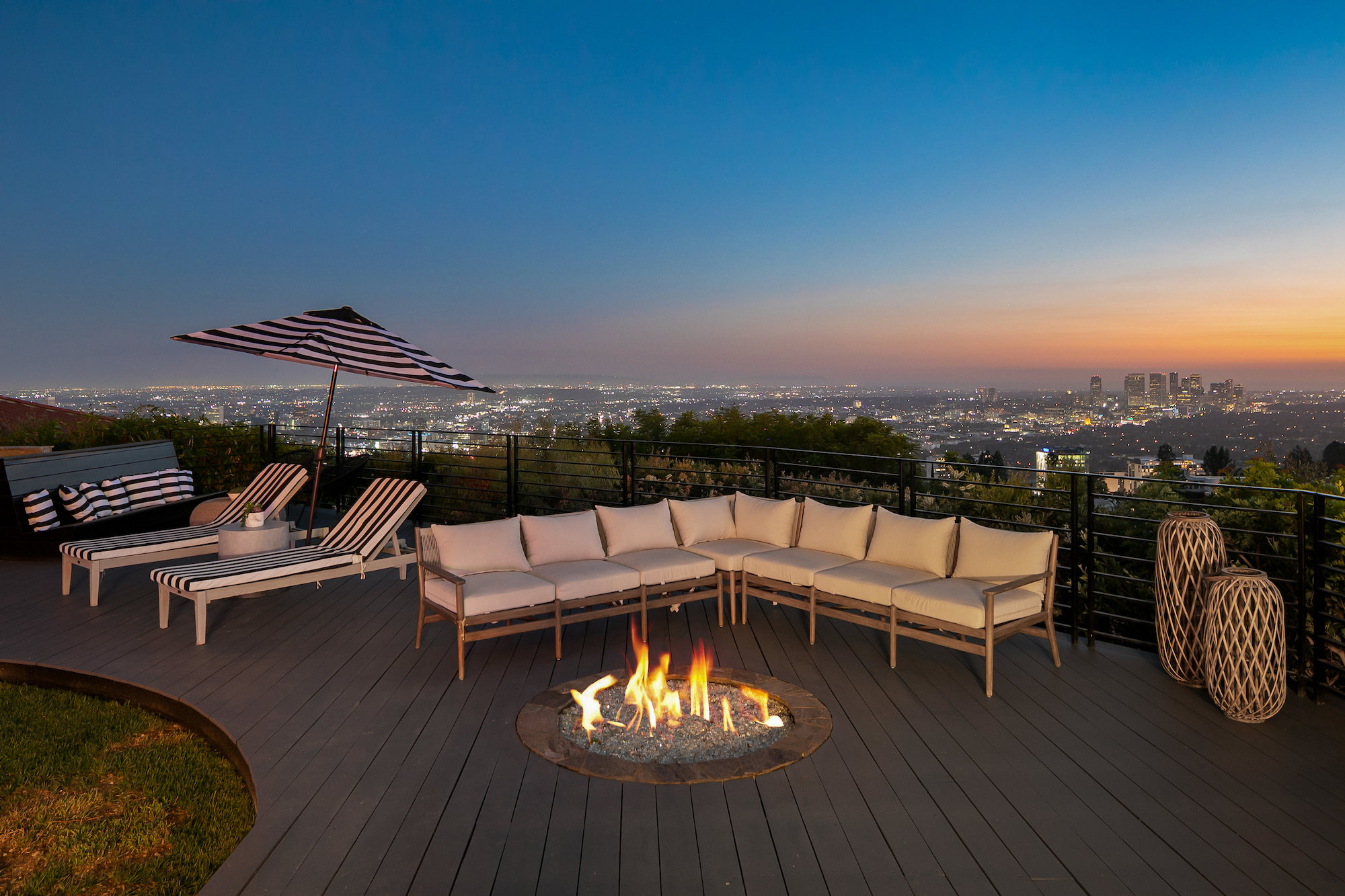 Newly remodeled entertainers paradise with explosive 360 degree views. Gated for privacy & security with 2-car garage direct access, magical walkway to front door or yard for guests and third service entrance with direct access to kitchen. Lushly landscaped backyard, pebble bottom salt water pool/spa, sunken fire pit, outdoor kitchen & gazebo. Chefs kitchen with Viking, Miele and SubZero appliances. Scintillating views from Downtown and Century City to the Ocean. Fleetwood sliding glass doors on every level and wrap-around decks with over 1,450 sq ft. of additional outdoor living space. 3 plush en-suite beds with multiple baths, floating tub, steam shower, jetted tub, bidet and impressive primary walk-in closet. 850 sq ft. rooftop-like deck off primary bed with breathtaking city and hillside views of famed Bird Streets. Screening room with projector, Blu Ray & Sonos. Elevator with access to every floor.