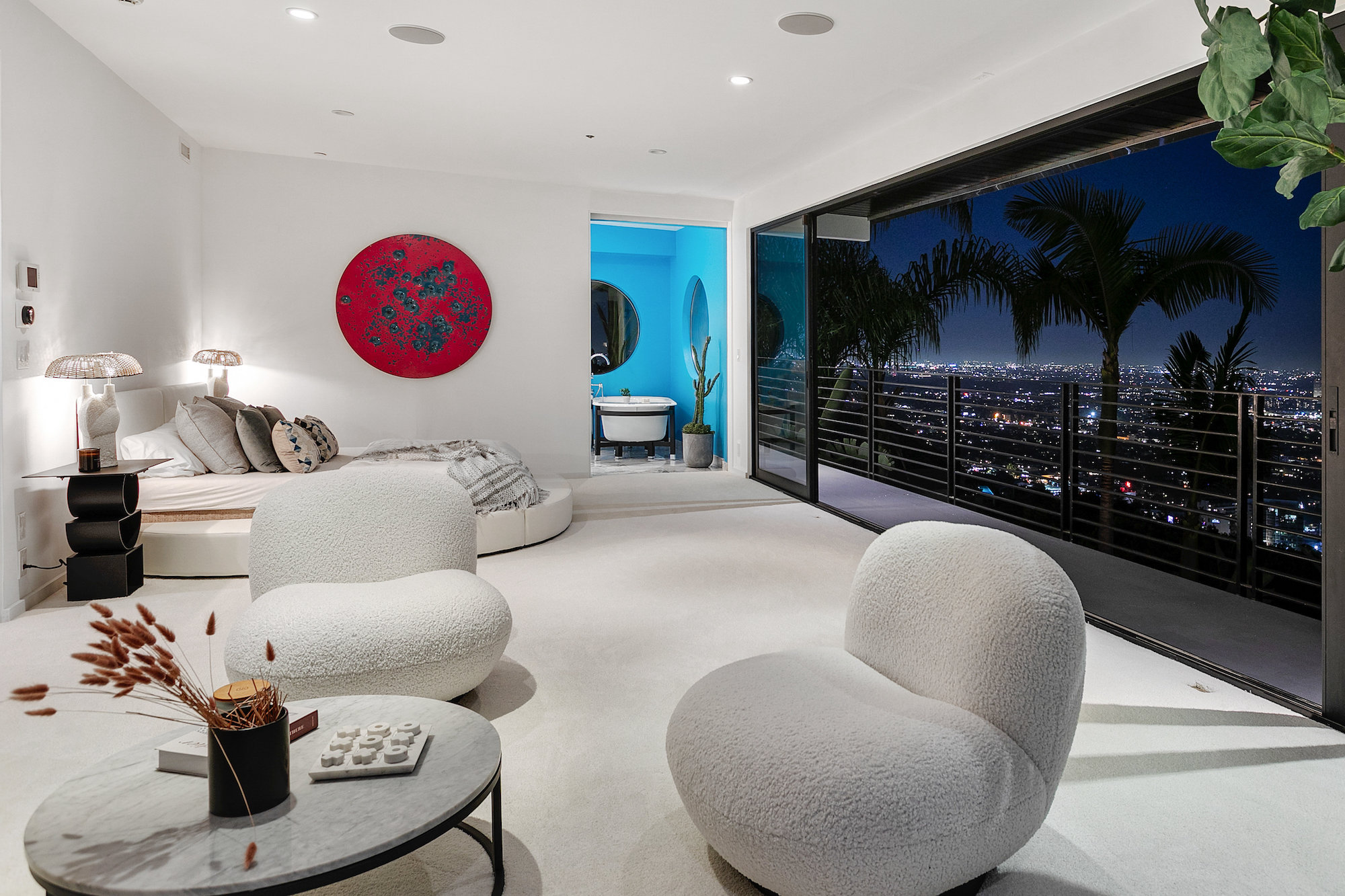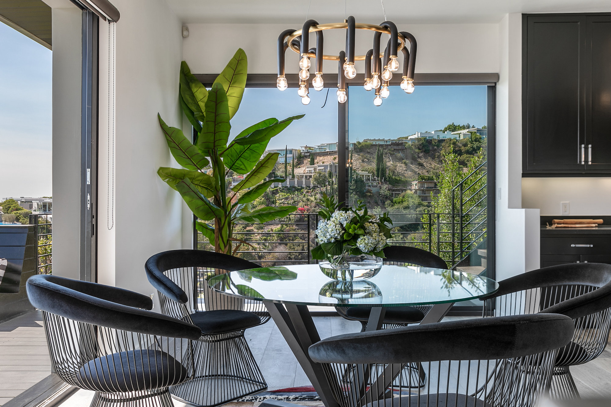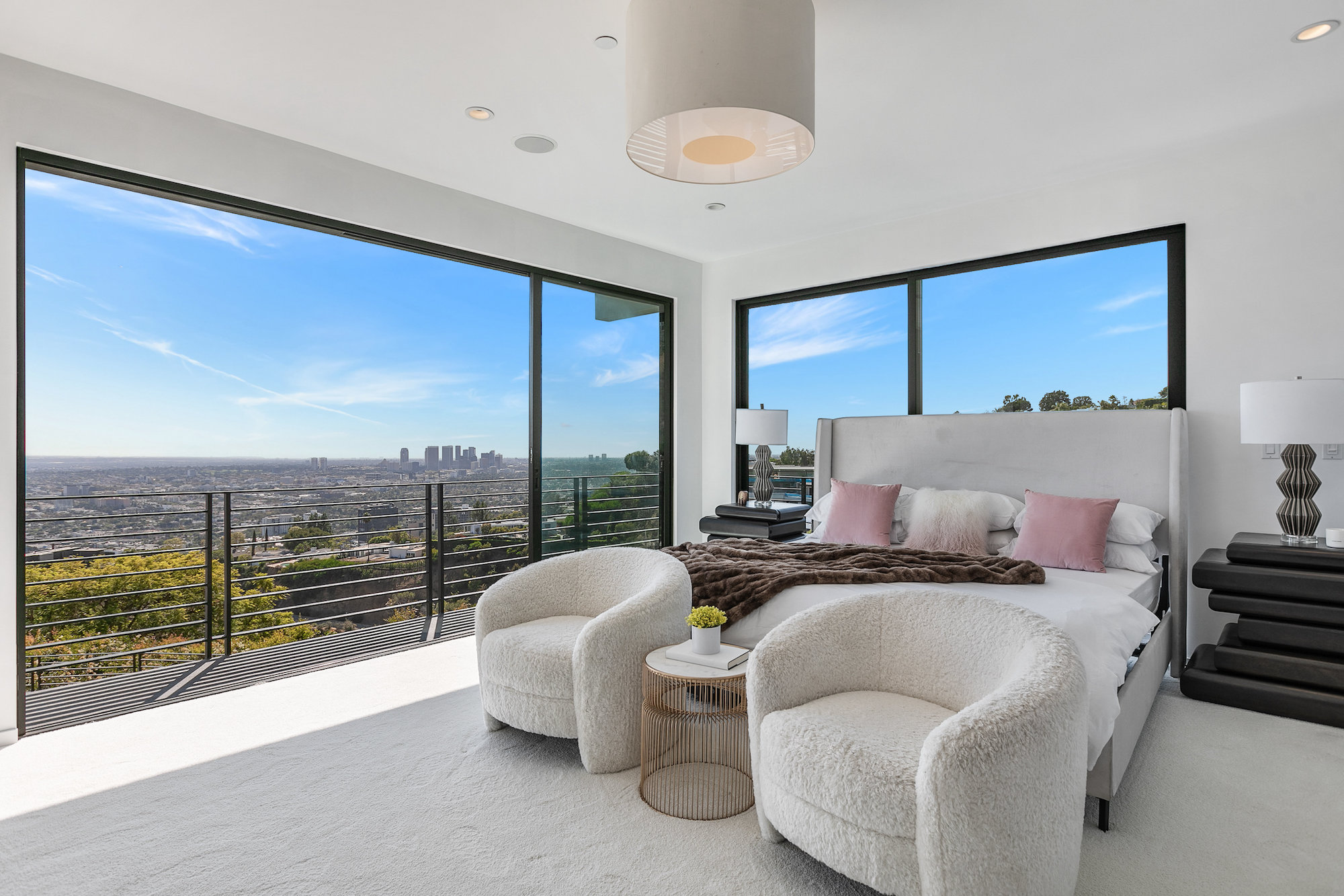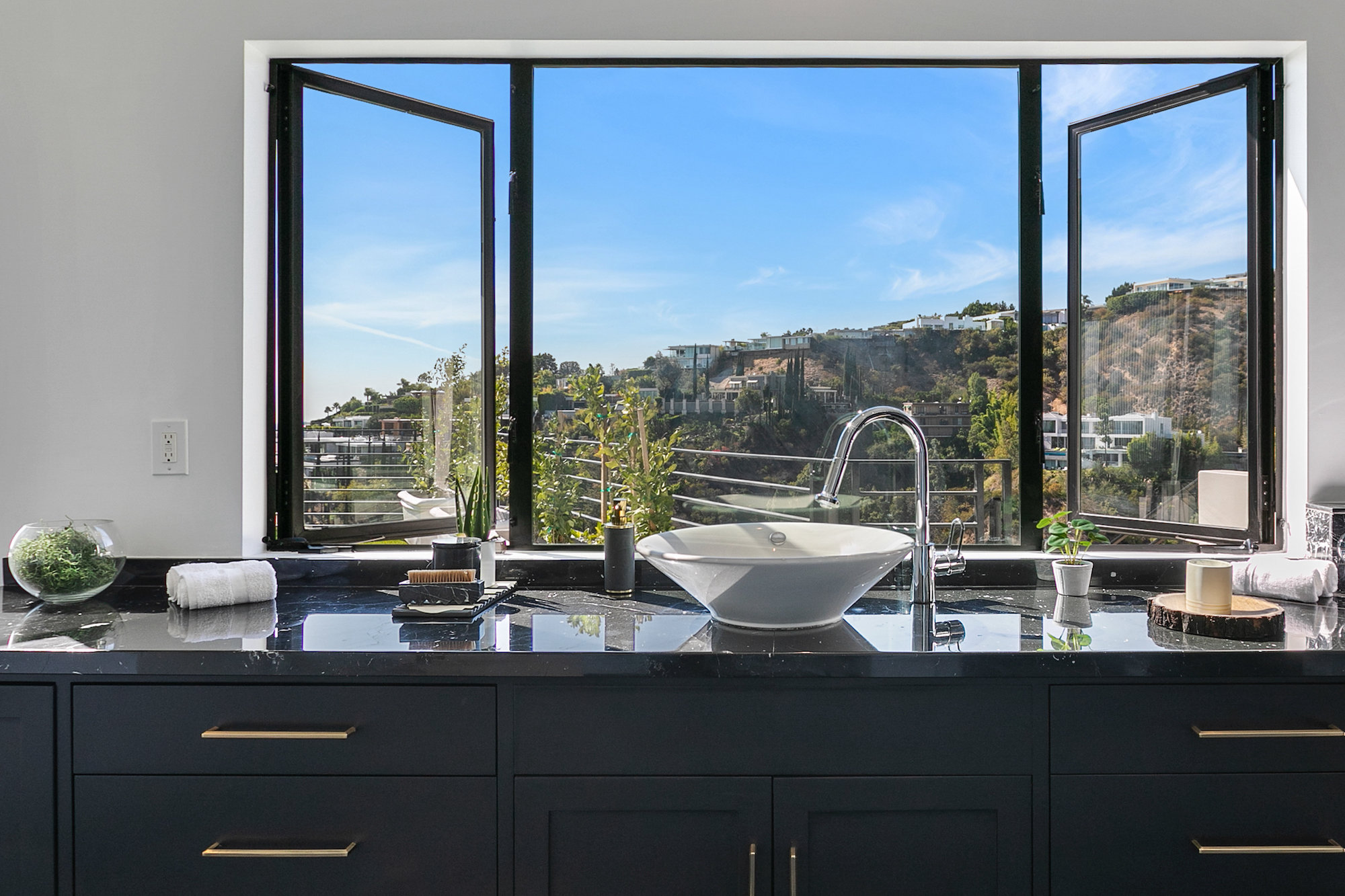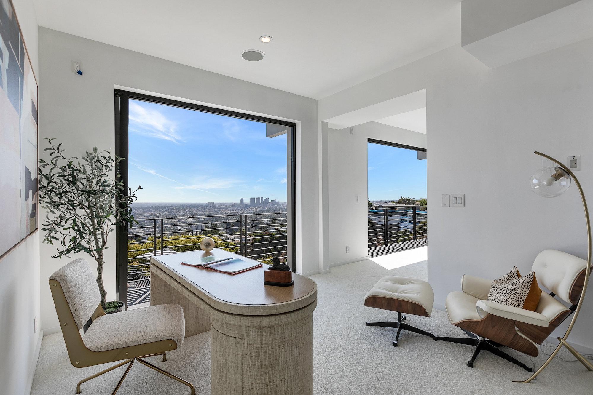 Newly remodeled entertainers paradise with explosive 360 degree views. Gated for privacy & security with 2-car garage direct access, magical walkway to front door or yard for guests and third service entrance with direct access to kitchen. Lushly landscaped backyard, pebble bottom salt water pool/spa, sunken fire pit, outdoor kitchen & gazebo. Chefs kitchen with Viking, Miele and SubZero appliances. Scintillating views from Downtown and Century City to the Ocean. Fleetwood sliding glass doors on every level and wrap-around decks with over 1,450 sq ft. of additional outdoor living space. 3 plush en-suite beds with multiple baths, floating tub, steam shower, jetted tub, bidet and impressive primary walk-in closet. 850 sq ft. rooftop-like deck off primary bed with breathtaking city and hillside views of famed Bird Streets. Screening room with projector, Blu Ray & Sonos. Elevator with access to every floor.