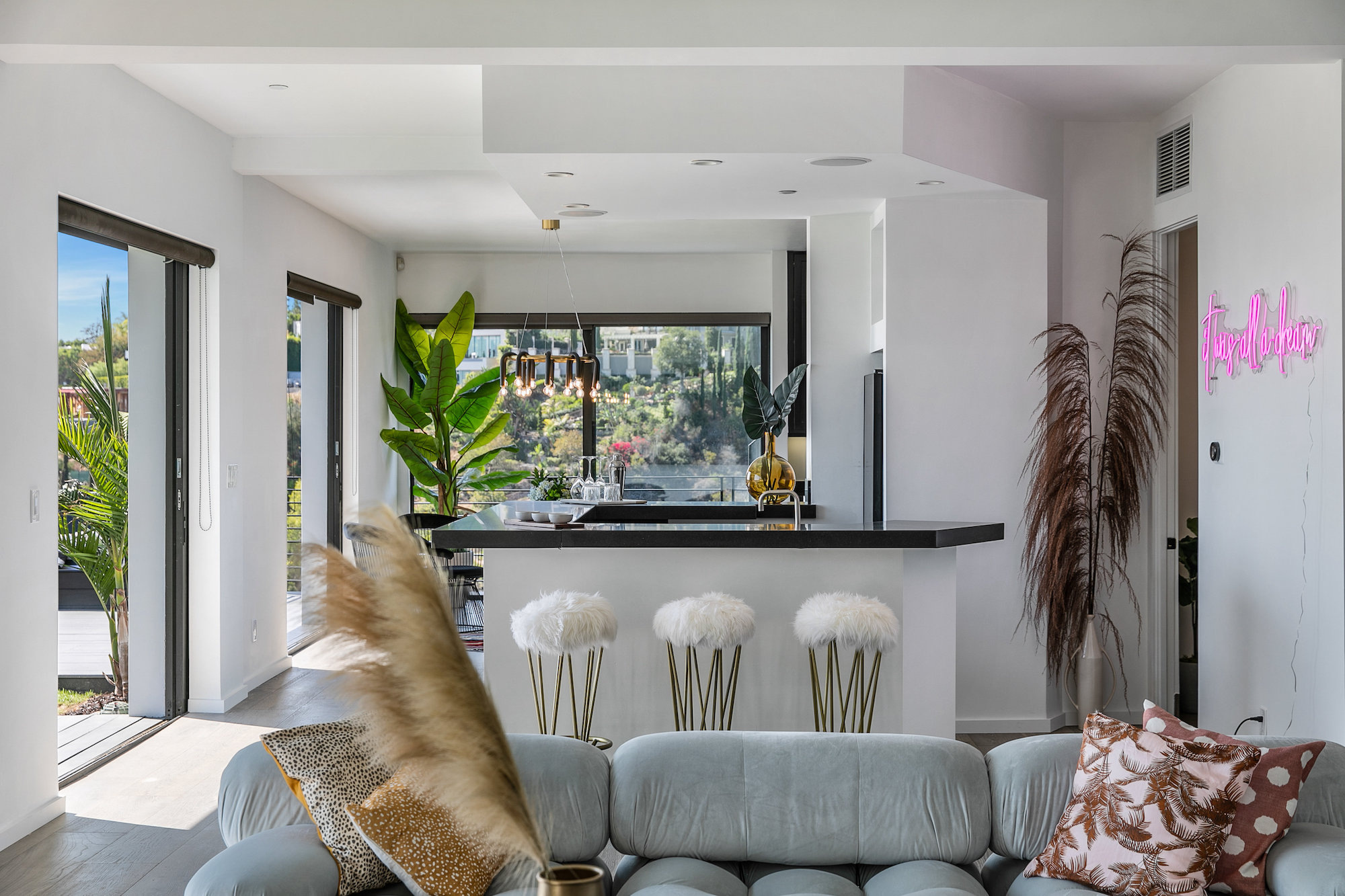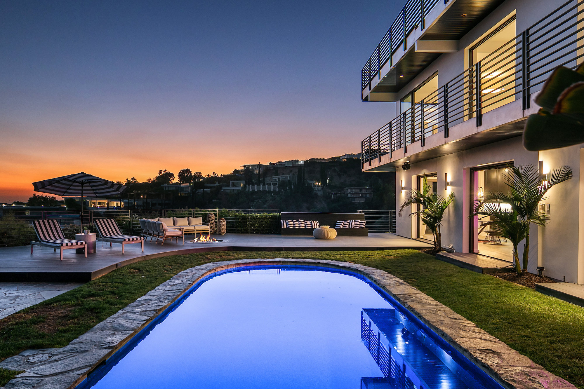 string(917) "Newly remodeled entertainers paradise with explosive 360 degree views. Gated for privacy & security with 2-car garage direct access, magical walkway to front door or yard for guests and third service entrance with direct access to kitchen. Lushly landscaped backyard, pebble bottom salt water pool/spa, sunken fire pit, outdoor kitchen & gazebo. Chefs kitchen with Viking, Miele and SubZero appliances. Scintillating views from Downtown and Century City to the Ocean. Fleetwood sliding glass doors on every level and wrap-around decks with over 1,450 sq ft. of additional outdoor living space. 3 plush en-suite beds with multiple baths, floating tub, steam shower, jetted tub, bidet and impressive primary walk-in closet. 850 sq ft. rooftop-like deck off primary bed with breathtaking city and hillside views of famed Bird Streets. Screening room with projector, Blu Ray & Sonos. Elevator with access to every floor. "