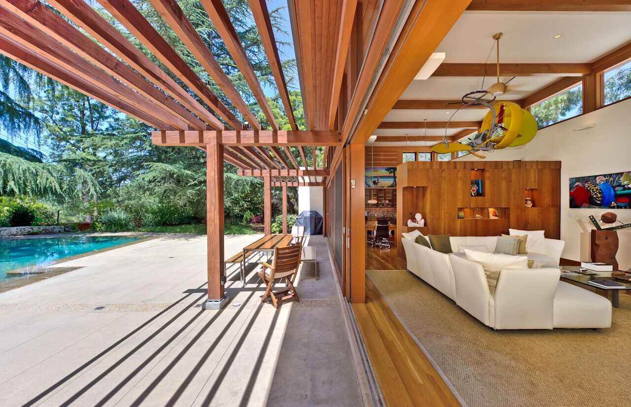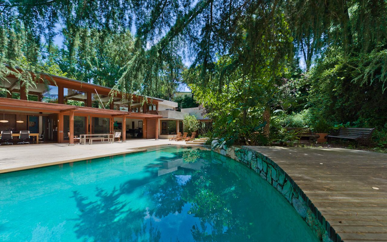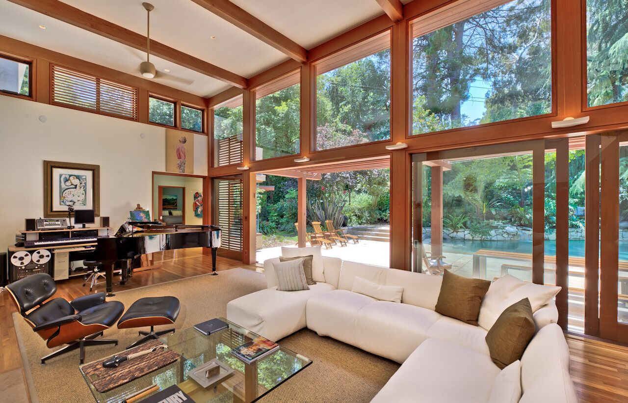 This one of a kind modern compound lets you live in a private indoor/outdoor Zen world. Built by William Hefner, this 6 bedroom 4 ½ bathroom masterpiece is over 4,400 sq feet resting on a flat acre. Totally private wonderful for artist and celebrities to express themselves without neighbors. Located at the bottom of a cul-de-sac, waterfalls, giant salt water pool, insulated sound studio, soft water system and private storage barn make this a vacation from everyday.