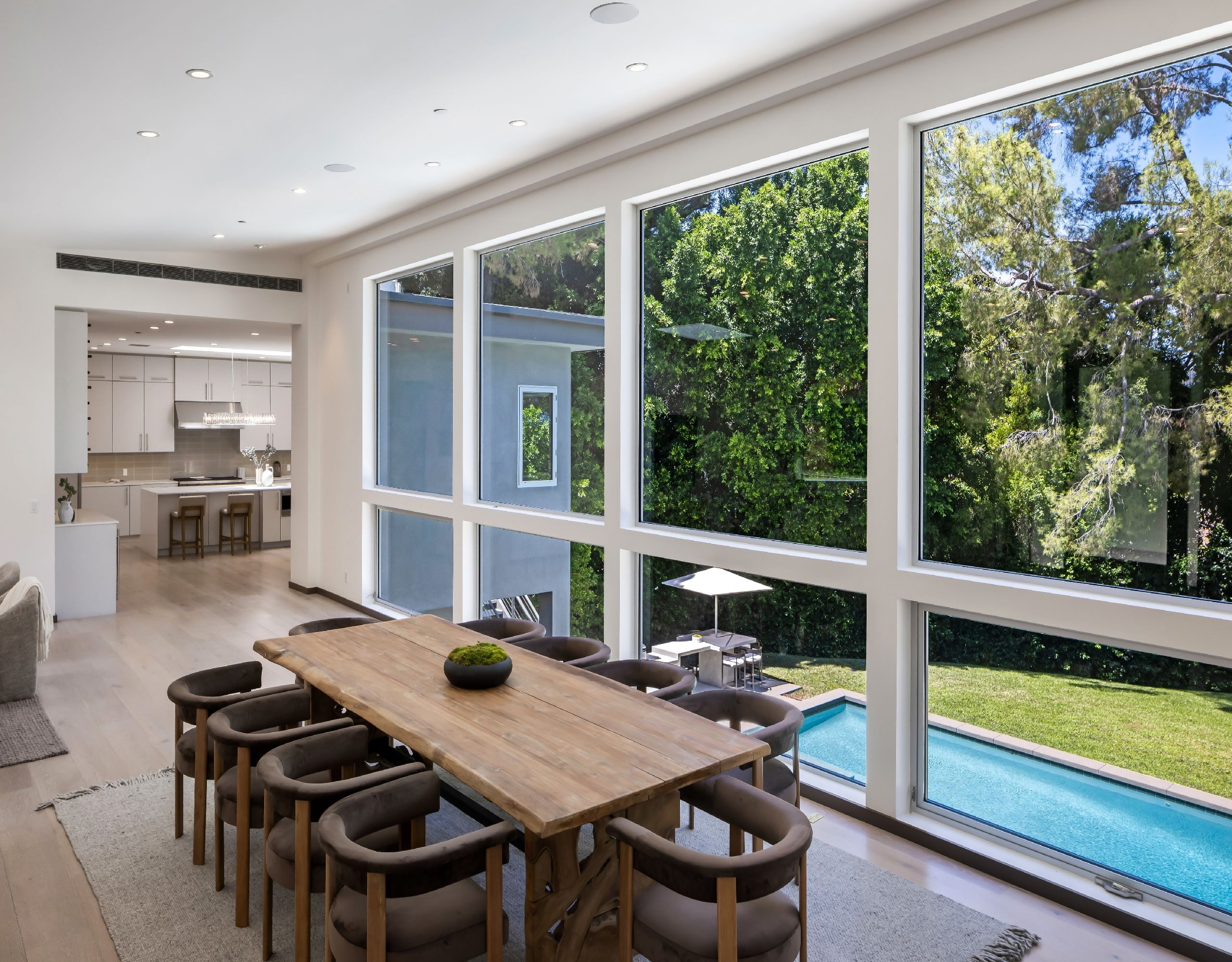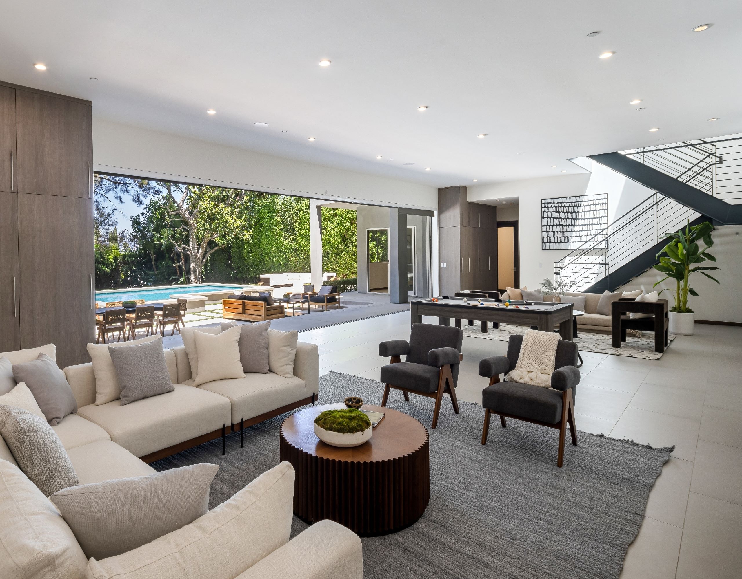Introducing a masterpiece in the prestigious enclave of Royal Oaks. Completely gated for privacy, this newer architectural gem sets a standard of elevated living. Step into a realm of clean elegance with modern flair, where every detail exudes sophistication. The oversized living and dining areas, adorned with soaring vaulted ceilings and panoramic walls of glass that flood the space with natural light, effortlessly flow into the expansive chef's kitchen. The primary suite and a separate powder room complete the main floor. Below, four guest suites allow for separation and privacy. Unwind in the second living room, boasting floor to ceiling Fleetwood doors opening to the serene outdoor oasis, complete with a pool house, inviting pool and spa, and built-in BBQ. The sprawling backyard is enveloped by lush, mature landscaping, creating a private sanctuary for lavish gatherings or tranquil relaxation. Designed to exceed the expectations of the most discerning buyer, this home is more than a residence; it's an experience awaiting your arrival.
