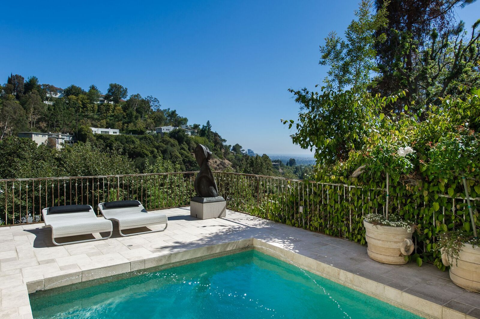 Priced to sell. Spectacular home located in "Crest Street" BHPO with the allure of a sophisticated villa in the South of France. Stunning, Sophisticated, Exquisitely Appointed and Meticulously redone. Built with incredible quality and craftsmanship with city to ocean views. A dramatic foyer with its soaring ceiling sets the tone. The home features a salon with mirrored wet bar, grand living room and formal dining room with hand-painted murals. The entertaining rooms have antique marble mantels. The floors are limestone and wide plank wood. There are three spacious bedrooms, each with large walk-in closets and 3.5 custom marble baths. French doors open to a travertine wrap-a-round deck with breathtaking views and a mosaic swimmer's pool perfect for relaxing and entertaining.