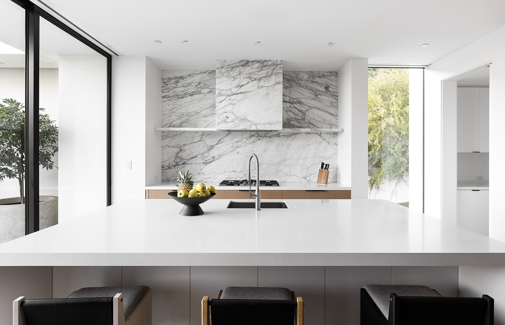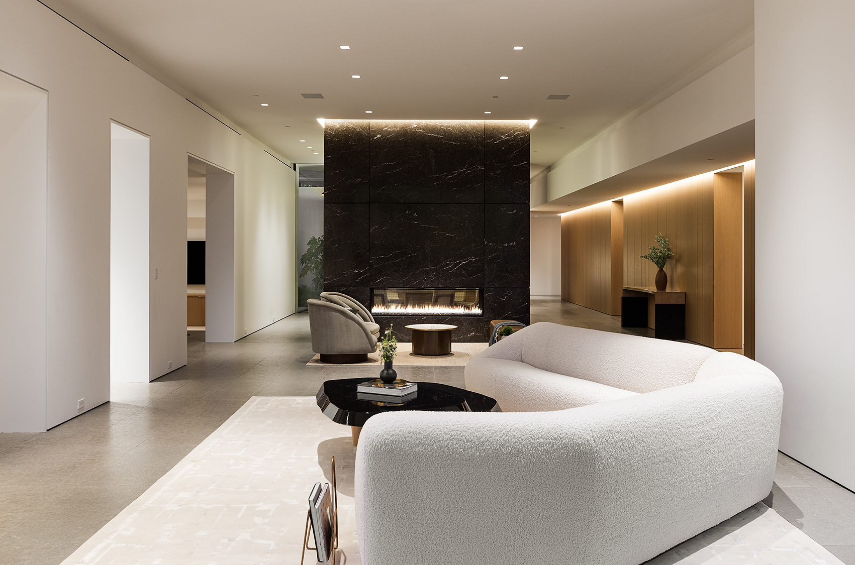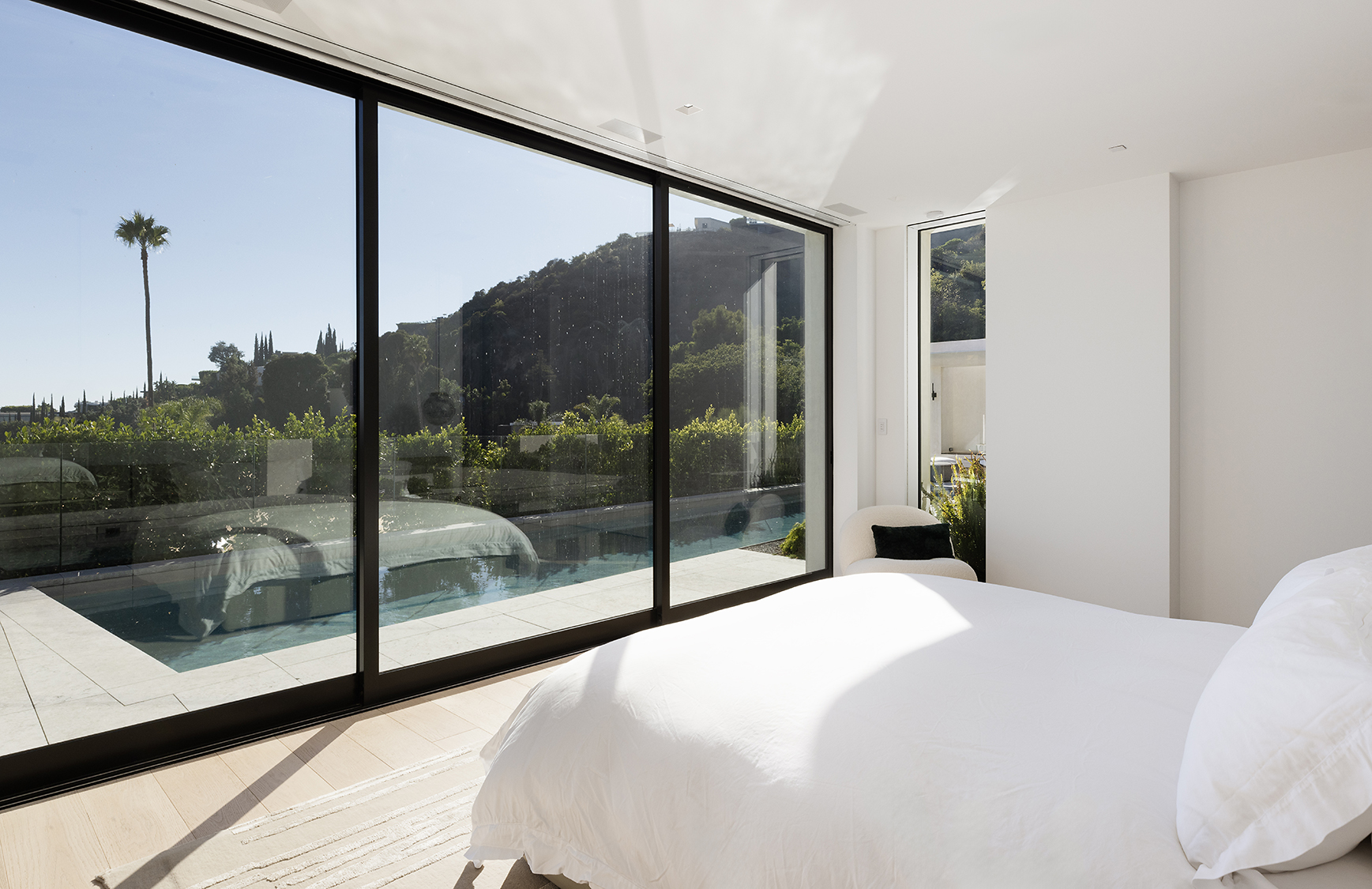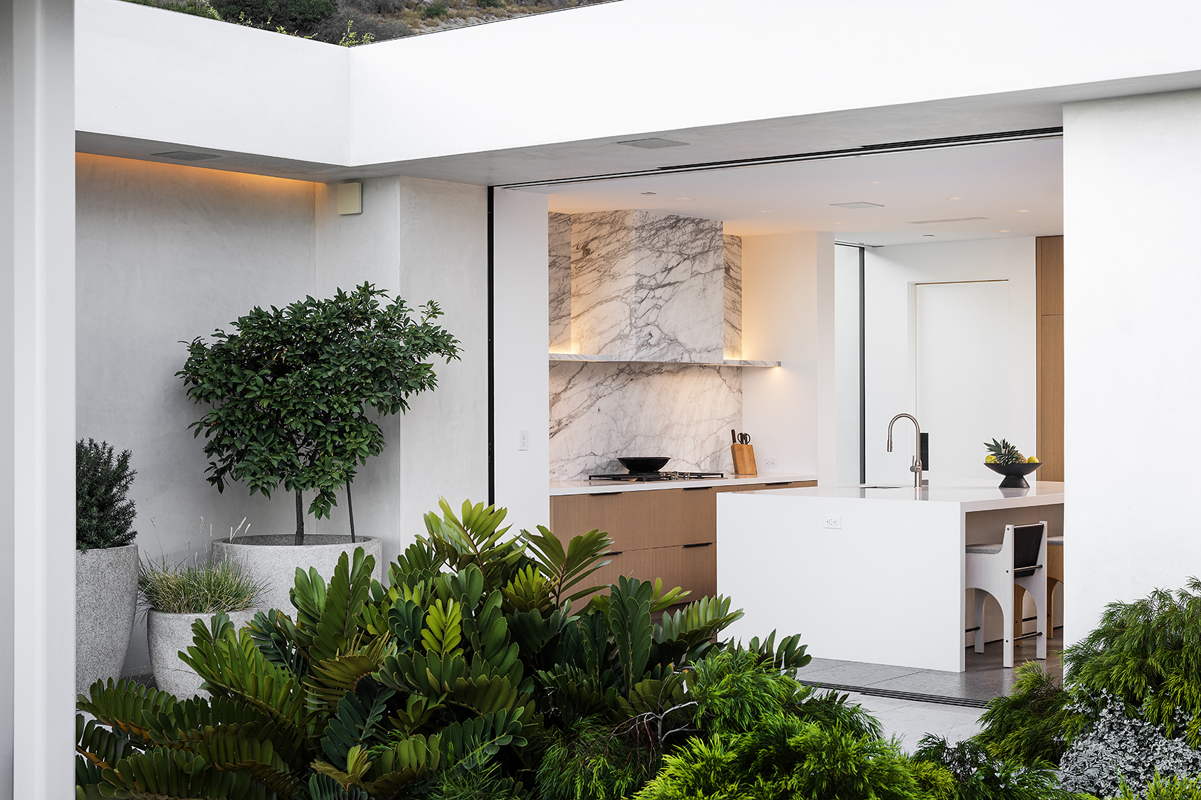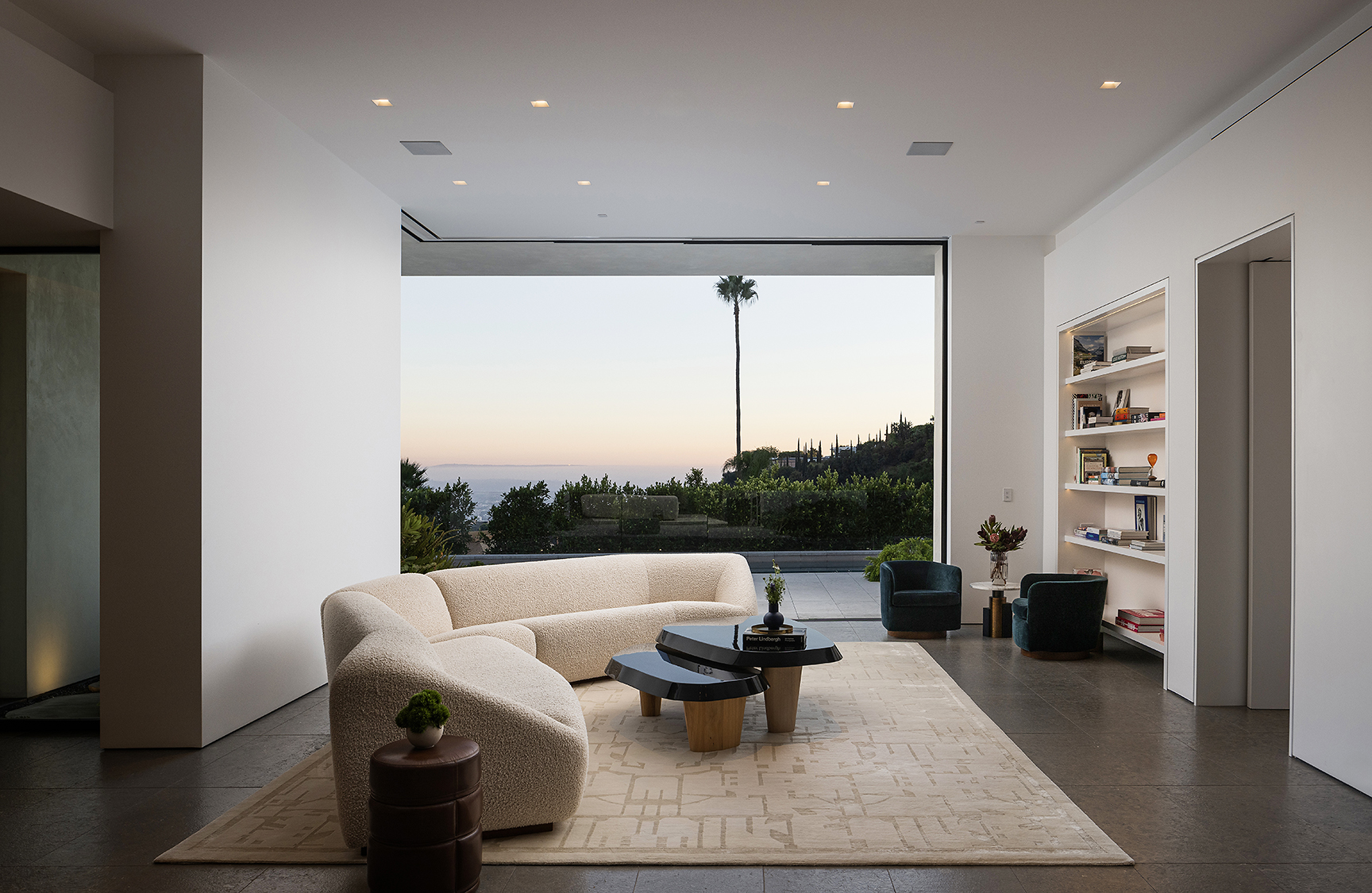Perched above the Sunset Strip, this ultra private, newly completed, immaculately designed prime Sunset Plaza Contemporary is the epitome of luxury living. Spanning over 5,650sf of single level living, enter into your zen oasis through a secured double entry surrounded with lush greenery and landscaping completed by a world famous landscape architect. The 5 bed/6 bath estate boasts a sun-filled open floor plan, custom finishes and breathtaking city views. The perfect home for entertaining, this indoor/outdoor one-of-a-kind property showcases an expansive formal living room with walls of glass that vanish out to the sparkling infinity edge pool overlooking the city. A dramatic double sided, dual Aegean Limestone encased fireplace divides the formal living room and dining room. The open family room lends itself to comfort and relaxation doubling as a movie theater and breakfast room. Enter into your state-of-the art chef's kitchen with high end appliances, large center island, striking marble backsplash and ample cabinetry with floor to ceiling doors opening to the backyard with stunning and intimate glass cabana with fireplace perfect for lounging or dining al fresco. The opulent owner's suite overlooks the cityscape and canyon views with a large soaking tub, dual vanities, oversized shower and custom built walk-in closet. The four generous size en-suite guest rooms have private and direct outdoor access. Large 3 car garage. Moments away from the famed Sunset Strip, best dining and shops Los Angeles has to offer.
