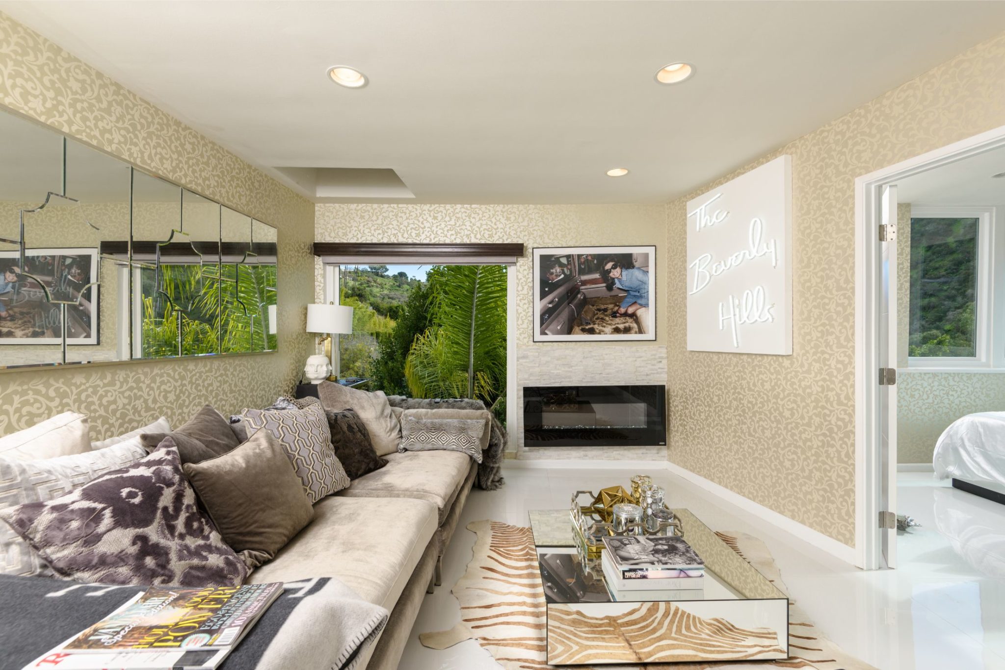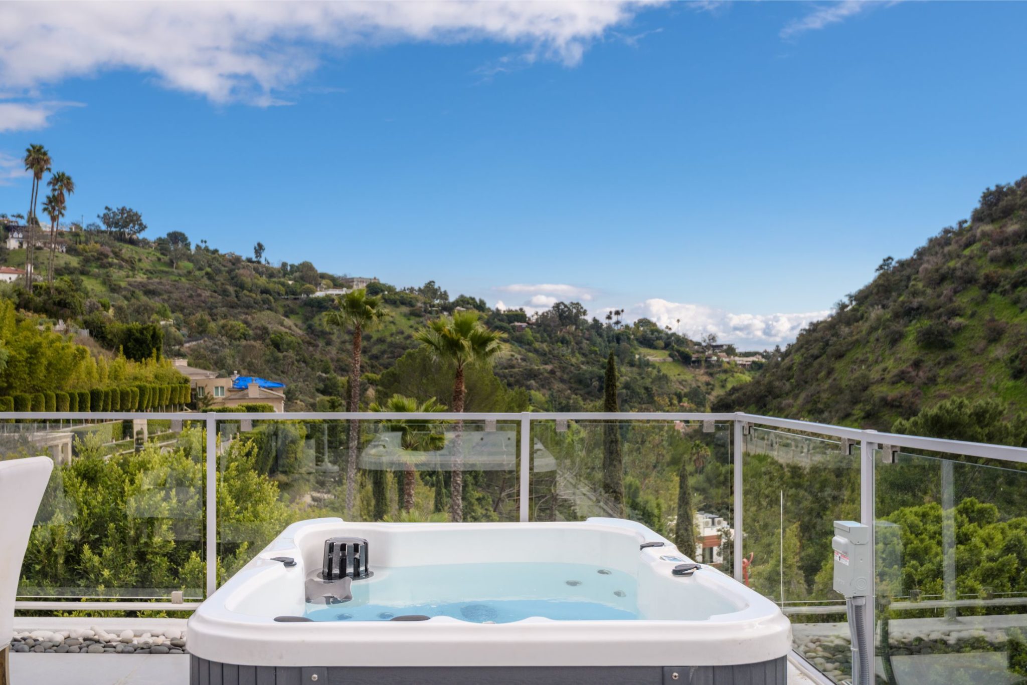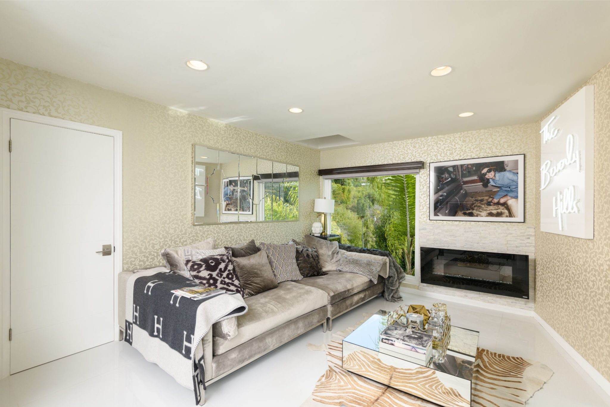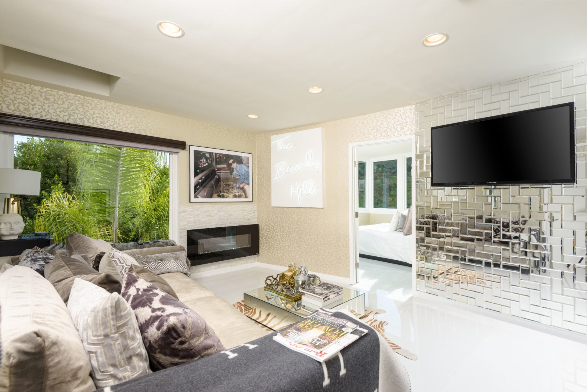TURN KEY and fully remodeled contemporary Beverly Hills home in the exclusive 90210 zip code! This 3 bed 3 bath home is perched on a beautiful tree lined street centrally located just off Benedict Canyon; minutes from downtown Beverly Hills. Dark hardwood floors throughout complement the light and bright open floor plan which includes the kitchen, dining and living areas, large den and bonus office space. The kitchen features updated quartz counters, wine cooler, and stainless steel appliances. Views and an abundance of light from each and every room. The newly finished roof top terrace with 360 degree views of tranquil canyons is equipped with an outdoor kitchen, BBQ and fire-pit. A rare find in this upscale neighborhood.