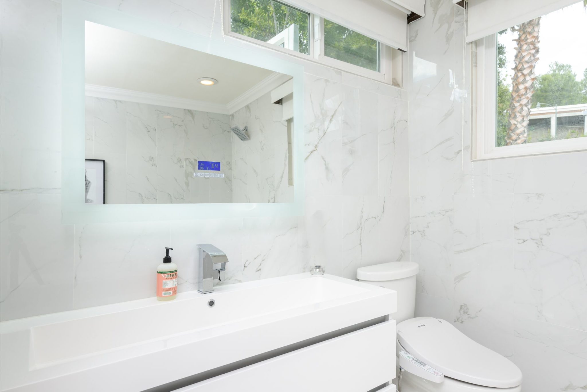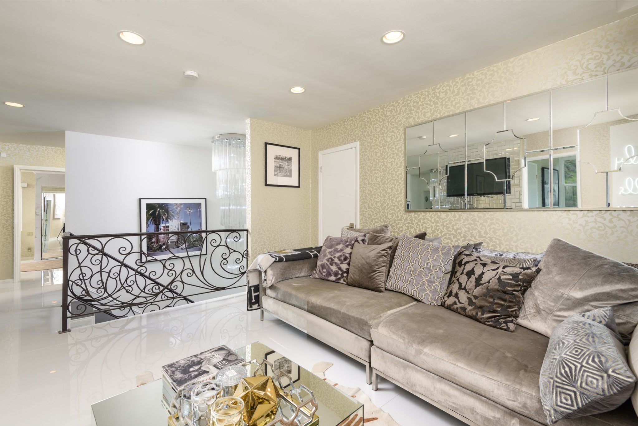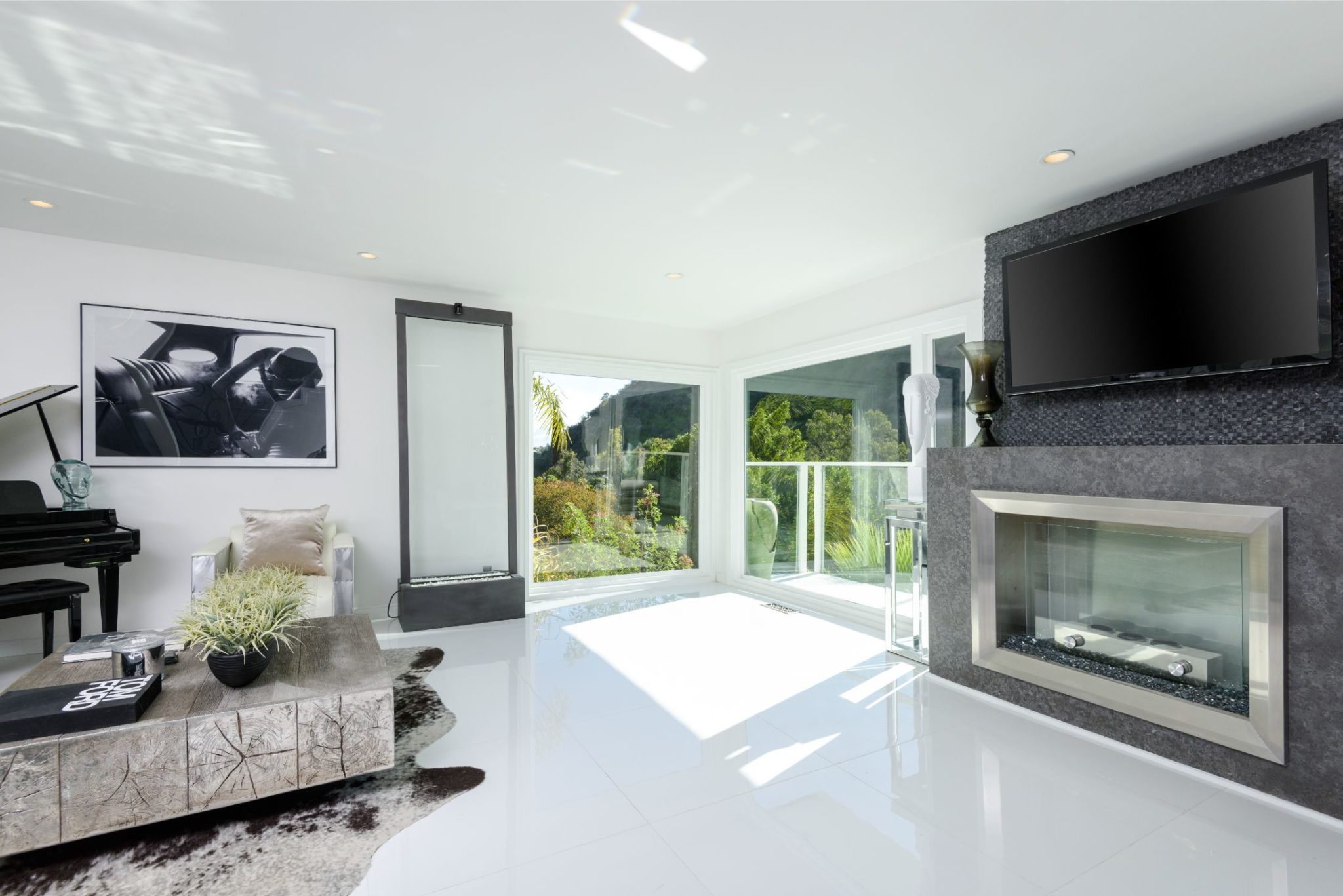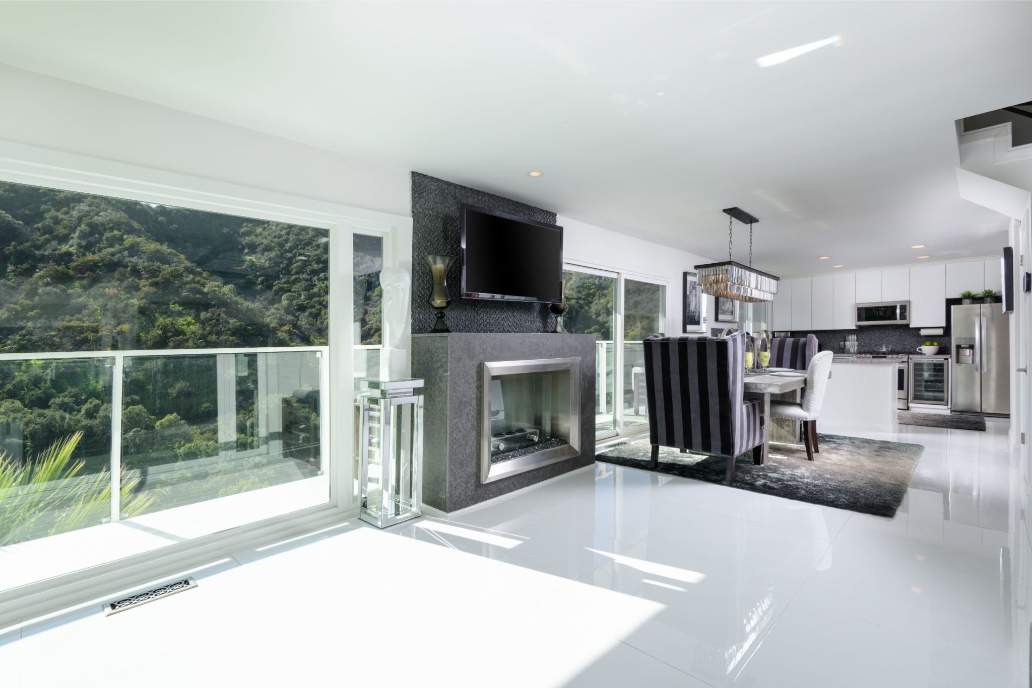 TURN KEY and fully remodeled contemporary Beverly Hills home in the exclusive 90210 zip code! This 3 bed 3 bath home is perched on a beautiful tree lined street centrally located just off Benedict Canyon; minutes from downtown Beverly Hills. Dark hardwood floors throughout complement the light and bright open floor plan which includes the kitchen, dining and living areas, large den and bonus office space. The kitchen features updated quartz counters, wine cooler, and stainless steel appliances. Views and an abundance of light from each and every room. The newly finished roof top terrace with 360 degree views of tranquil canyons is equipped with an outdoor kitchen, BBQ and fire-pit. A rare find in this upscale neighborhood.