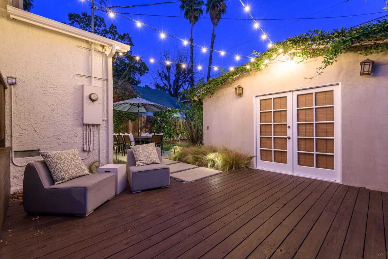 string(981) "Gorgeous rejuvenated California bungalow featuring 3 bedrooms and 2 bathrooms. This white picket fenced, the gated home boasts timeless charm, extensive windows creating abundant natural light, gleaming hardwood floors, recessed lighting and top of the line designer finishes. Open and expansive floor plan includes light-filled dining and living room with Bachelder-style tiled fireplace ideal for entertaining, which leads to gourmet kitchen with custom-built cabinets, granite counter tops, farmhouse sink, stainless steel appliances and breakfast bar. Large family room leads to private landscaped backyard with mature citrus trees and new redwood deck. Spacious master bedroom with dual closets overlooks the backyard and connects to large master bath with subway tiles and period cabinetry. Home also features two generous sized and bright guest rooms, converted garage with tons of storage, 3+ car driveway. Just minutes to restaurants, markets, and beautiful Runyon Canyon."