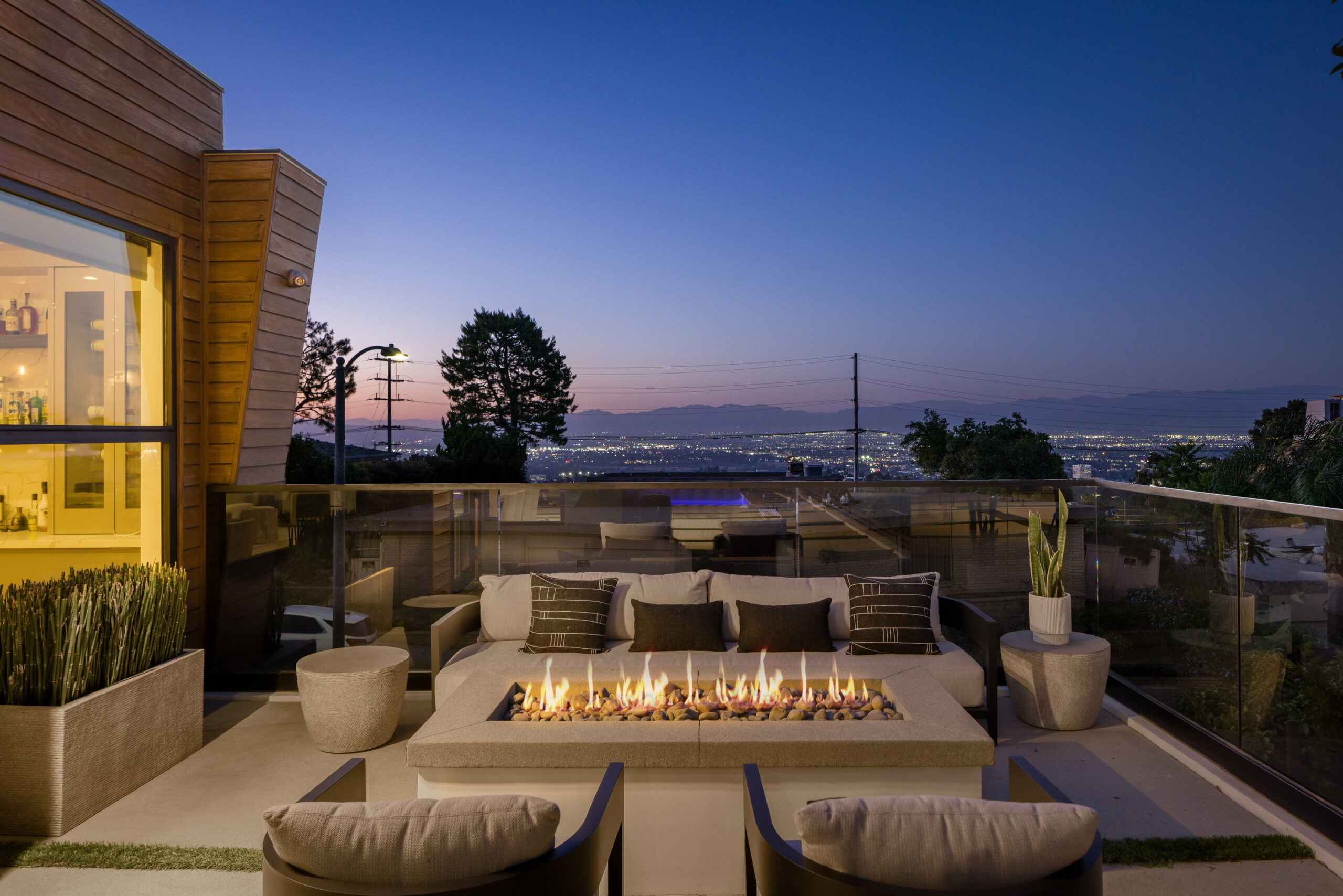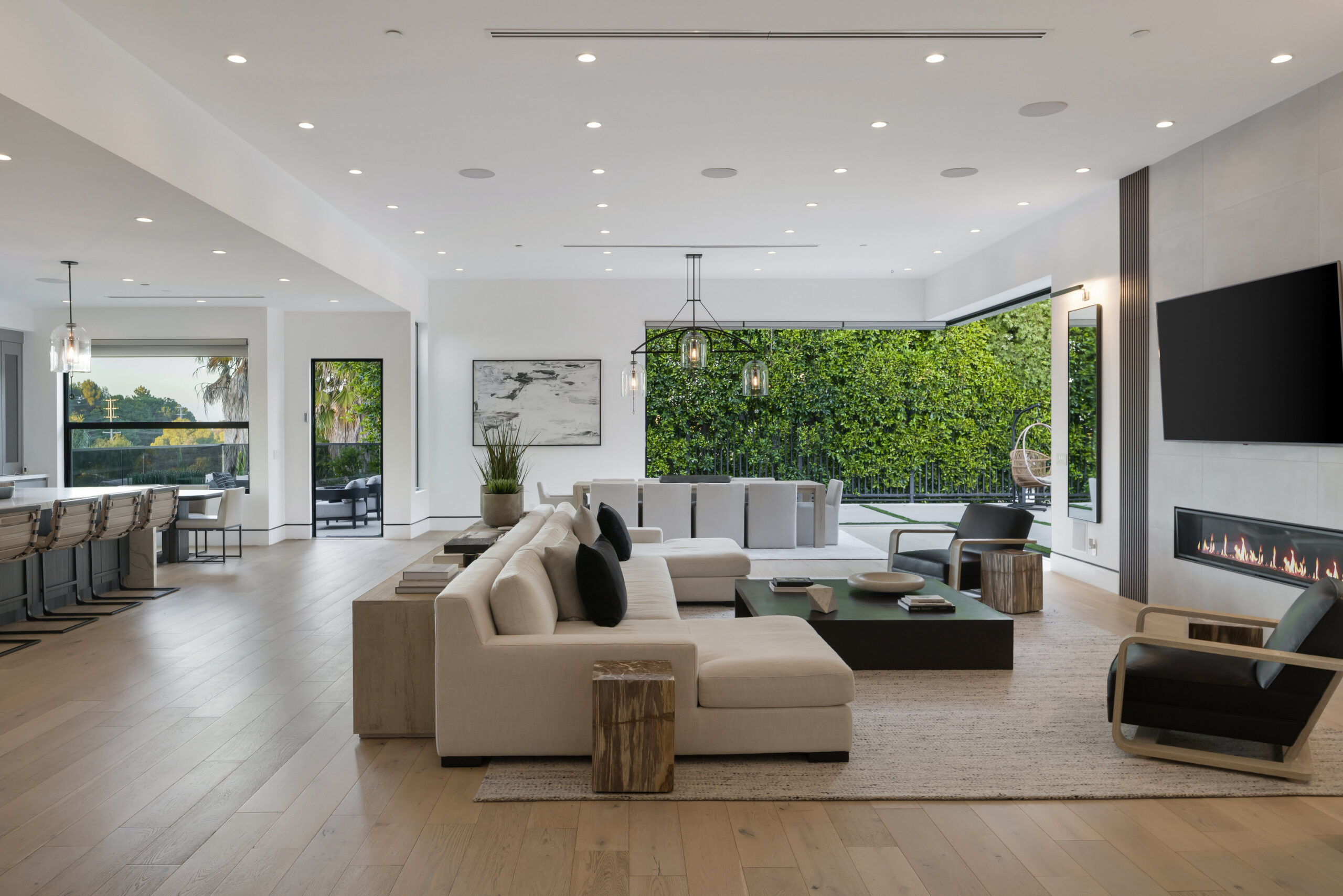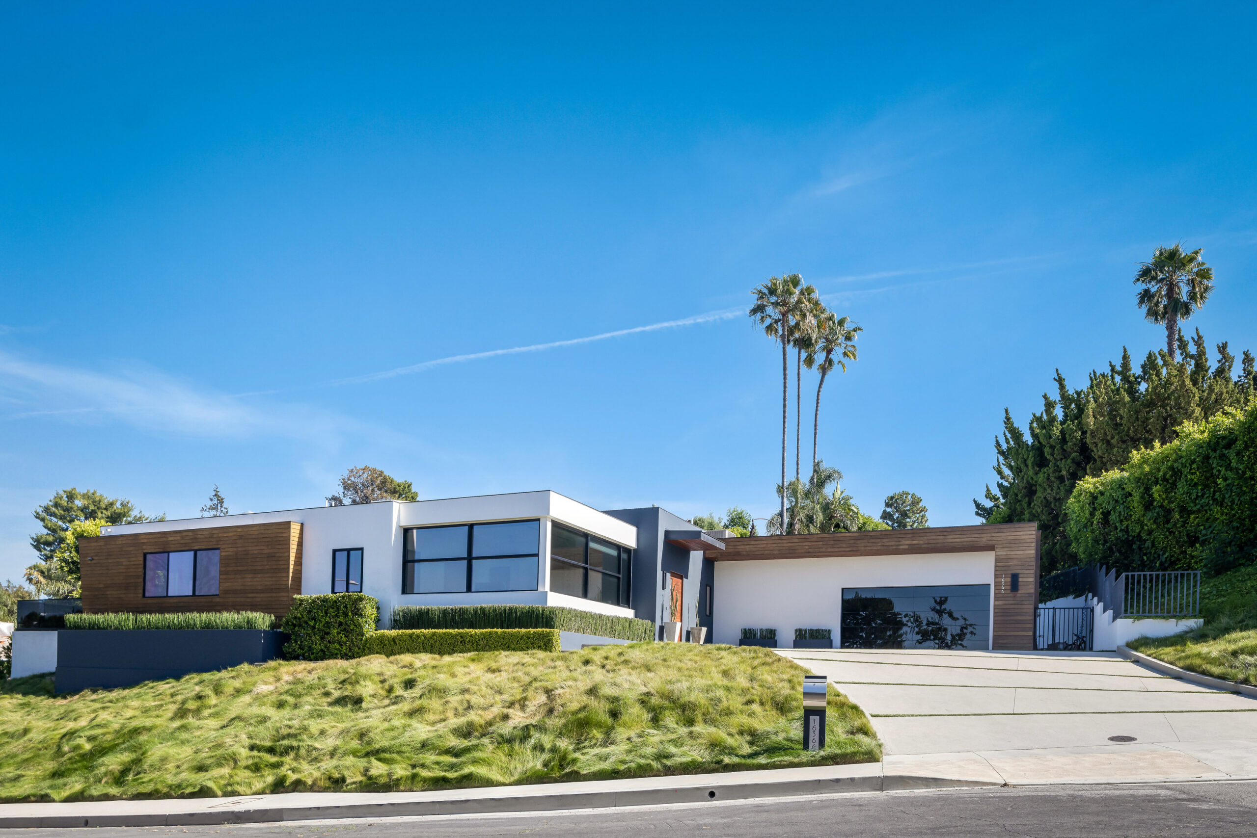 Welcome to this exquisite single-level modern residence in the prestigious Bel Air Skycrest Community, with included security patrol guards. Upon entering, you are greeted by an expansive foyer with soaring ceilings and abundant natural light, creating a gallery-like ambiance perfect for displaying your art collection. The heart of this home is its open-layout featuring a gourmet kitchen, with a built-in range, an oversized island, and a spacious walk-in pantry. The adjoining family room and dining area seamlessly blend together, making it an ideal space for family gatherings and dinner parties. Fleetwood sliding doors disappear into the wall, merging indoor elegance with outdoor splendor. Step outside to a private oasis where a dreamy pool, spa, and waterfall water feature await. An outdoor firepit offers a cozy spot to enjoy the breathtaking City lights that illuminate the twilight hours. The single-level floor plan ensures a sense of spaciousness, felt in every corner of this residence. The Primary suite is a serene retreat with a walk-in closet, dual vanity bathroom, and direct access to the outdoor spa. Three generous guest suites provide ample space and comfort for family and visitors alike. Homes of this caliber and quality are a rare find in this coveted community. Experience luxury living at its finest!