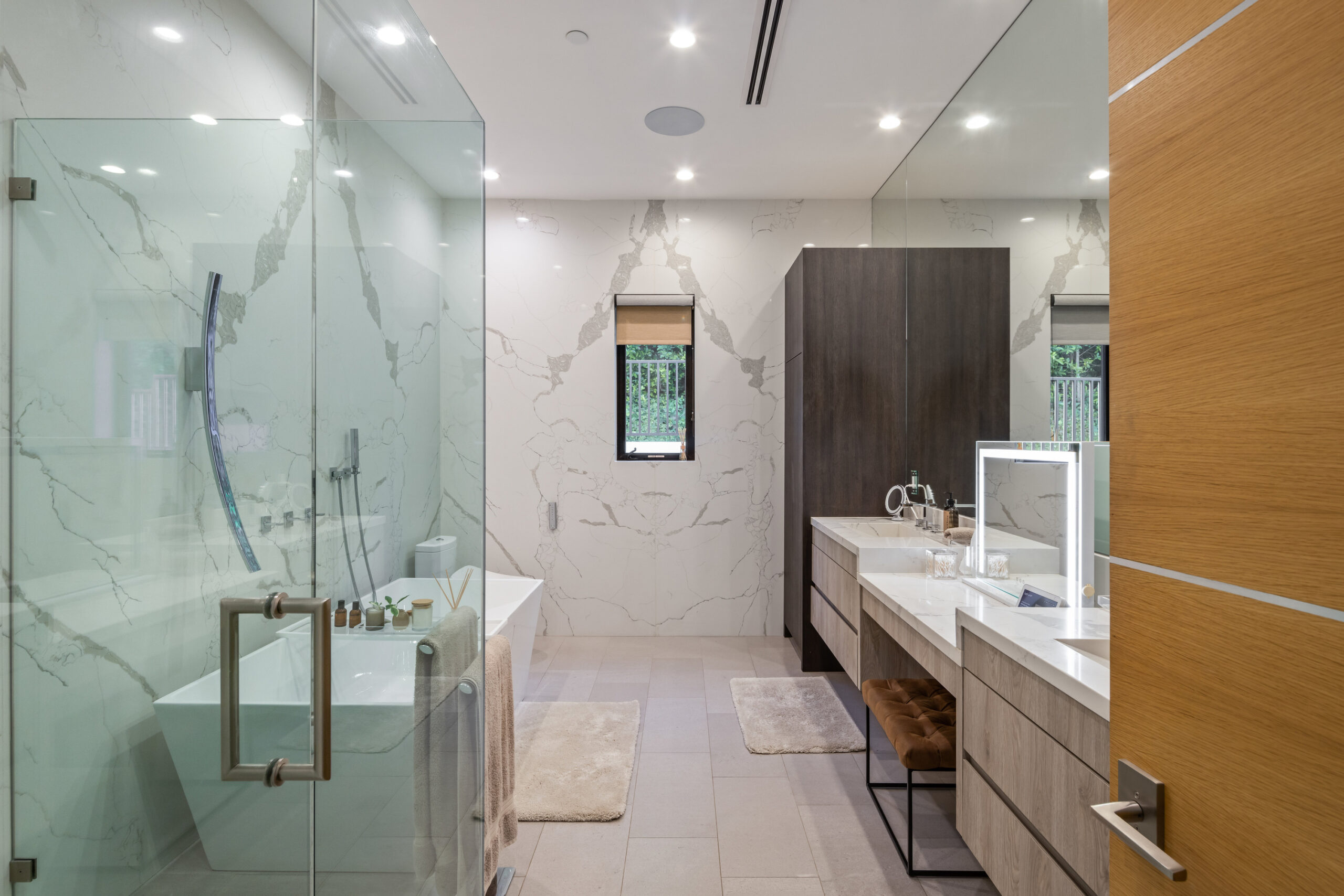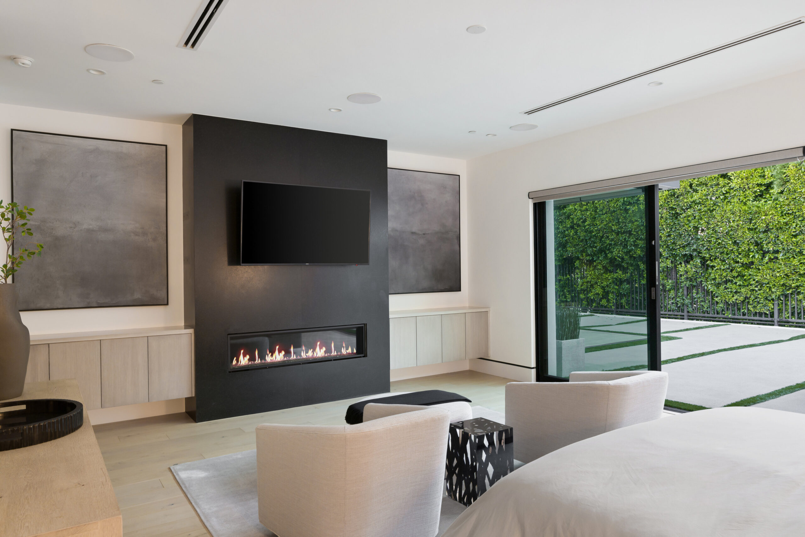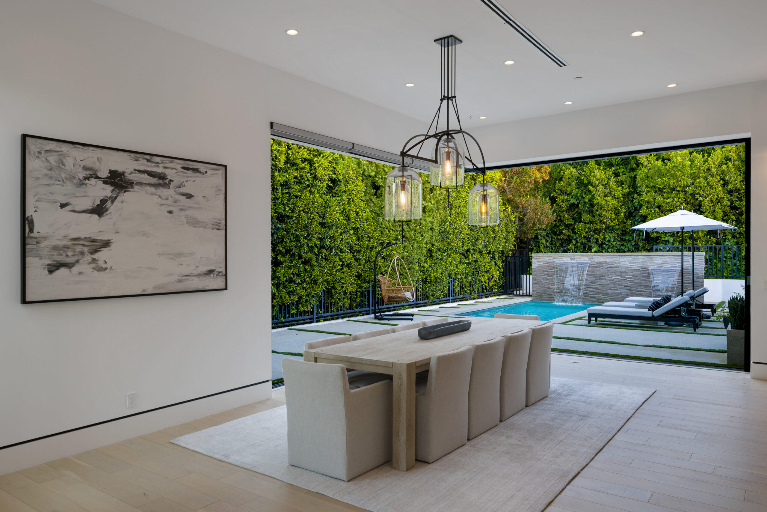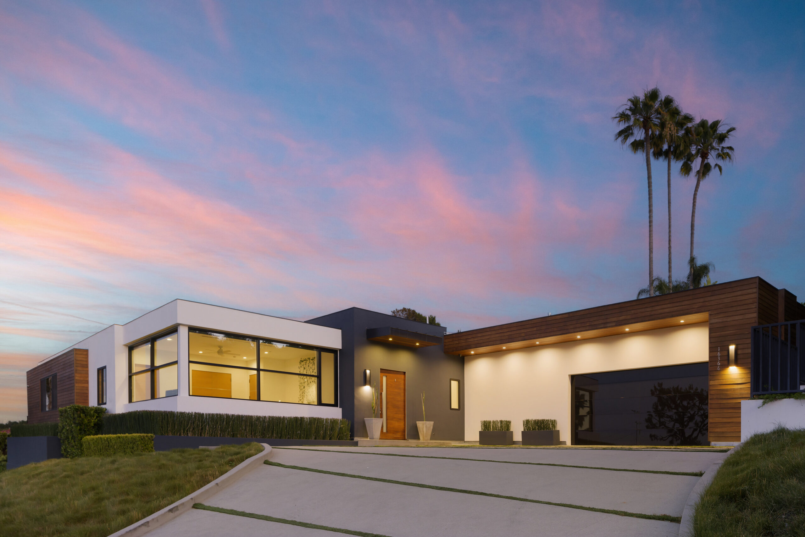 Welcome to this exquisite single-level modern residence in the prestigious Bel Air Skycrest Community, with included security patrol guards. Upon entering, you are greeted by an expansive foyer with soaring ceilings and abundant natural light, creating a gallery-like ambiance perfect for displaying your art collection. The heart of this home is its open-layout featuring a gourmet kitchen, with a built-in range, an oversized island, and a spacious walk-in pantry. The adjoining family room and dining area seamlessly blend together, making it an ideal space for family gatherings and dinner parties. Fleetwood sliding doors disappear into the wall, merging indoor elegance with outdoor splendor. Step outside to a private oasis where a dreamy pool, spa, and waterfall water feature await. An outdoor firepit offers a cozy spot to enjoy the breathtaking City lights that illuminate the twilight hours. The single-level floor plan ensures a sense of spaciousness, felt in every corner of this residence. The Primary suite is a serene retreat with a walk-in closet, dual vanity bathroom, and direct access to the outdoor spa. Three generous guest suites provide ample space and comfort for family and visitors alike. Homes of this caliber and quality are a rare find in this coveted community. Experience luxury living at its finest!