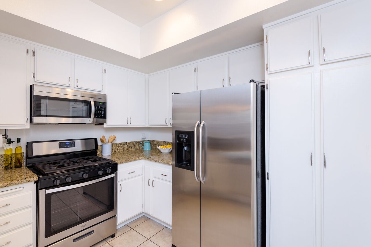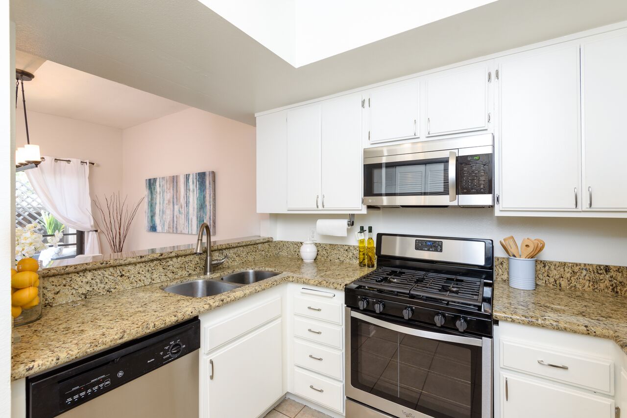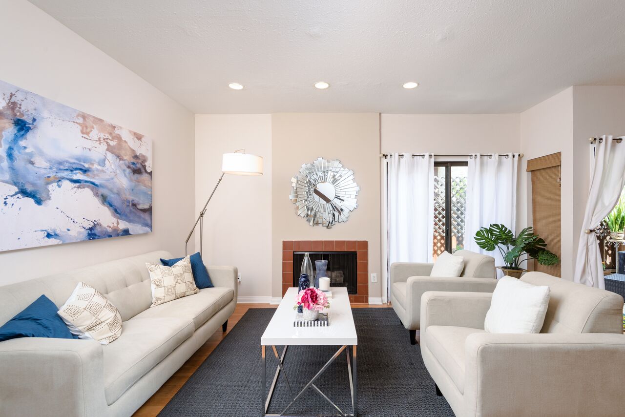 Turnkey and charming 2 bed / 2.5 bath townhouse located on a beautiful and quiet tree lined street in one of the hottest areas in Westwood. The first floor features a newly updated kitchen, open and spacious living/dining room floor plan, hardwood floors, fireplace, side by side laundry, powder room and sliding glass doors which lead you to private and secluded patio; perfect for entertaining, BBQ's and flower beds. Head upstairs to the master suite with vaulted ceilings, walk-in closet, en suite bathroom and serene private balcony. The sizable second bedroom also features an en suite bath and walk-in closet. The HOA is $475mo and includes earthquake insurance and hot/cold water. Also included are 2 secure parking spaces and additional storage. This is a great opportunity to own in a top-rated school district, walkable to parks, restaurants and shopping.