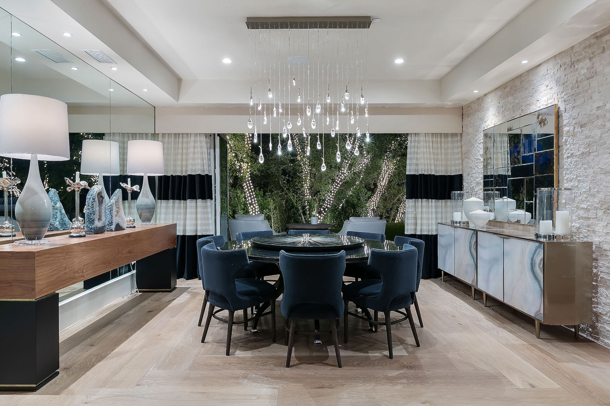 string(1397) "Set behind gates this bespoke home provides ample privacy and exclusivity. Boasting ~9,000 square feet of unparalleled luxury and exquisite finishes, this home has been completely redone with every first-class amenity imaginable. Custom built with immaculate design, the open concept home features 6 bedrooms, 8 bathrooms, a dining room, multiple living rooms, lounge, bar, movie theatre, and butler's pantry. The luminous kitchen is equipped with top-of-the-line appliances, beautiful cabinetry, a large island topped with spectacular Geo White Quarts stone that has under lighting, and a motorized window that opens to the backyard. From the kitchen, there is a seamless flow into the great room with a custom floor-to-ceiling entertainment wall and motorized glass doors that vanish allowing flawless indoor/outdoor living. On the second floor, double doors open revealing the Master Suite complete with a sitting room, 2 fireplaces, 2 spacious walk-in closets, and 2 separate bathrooms with heated floors and a steam shower. Furthermore, the loggia has heated floors. The exceptional outdoor space hosts a tranquil pool with a water feature along the back wall edge, a spa with an additional waterfall feature, an outdoor kitchen, and a dining area. The home is secured and operated by an Elan Smart System personalized to your lifestyle providing an inimitable, convenient living experience. "
