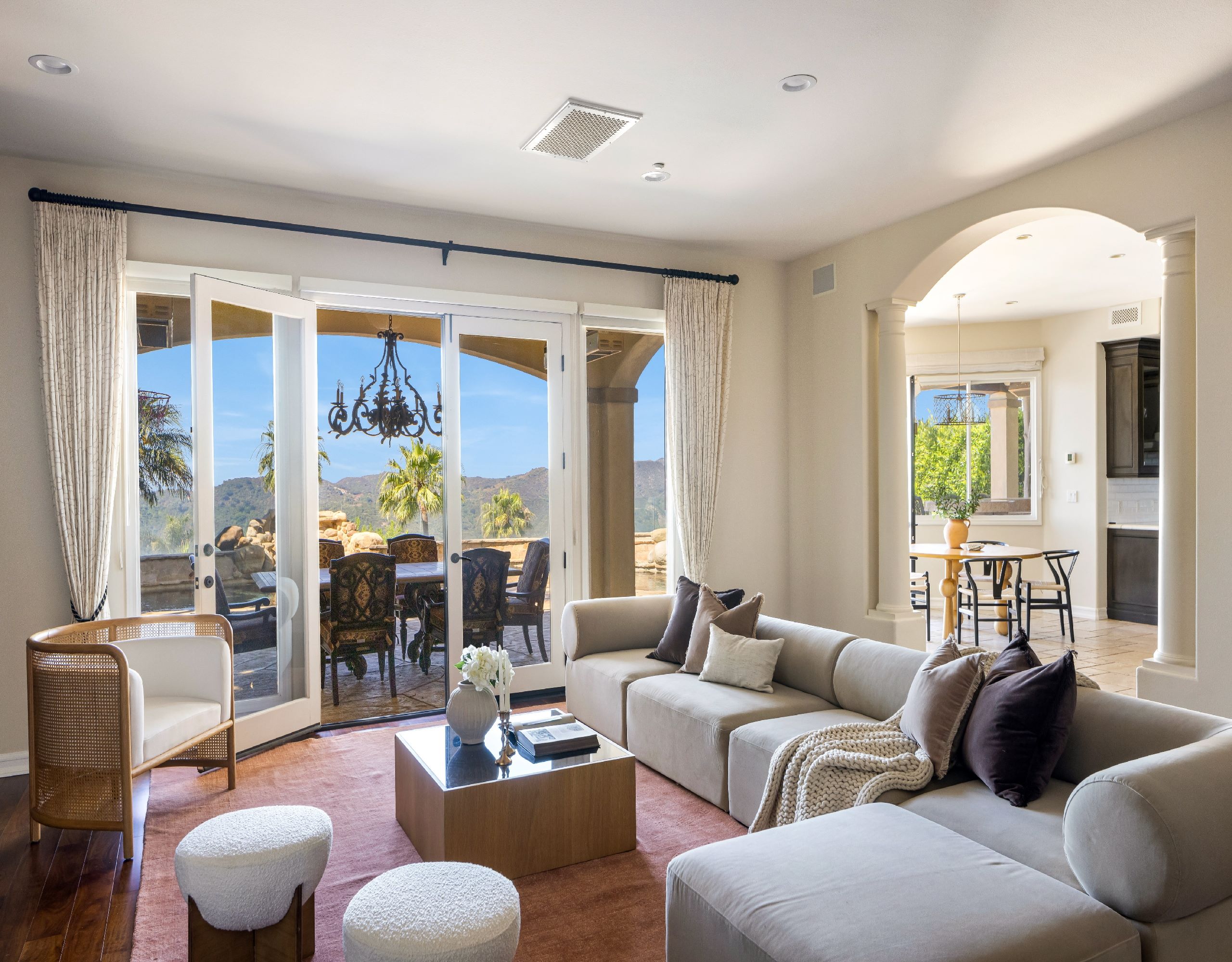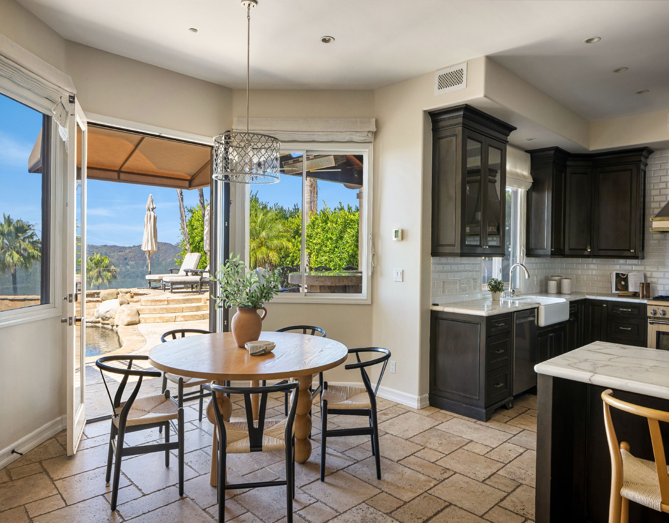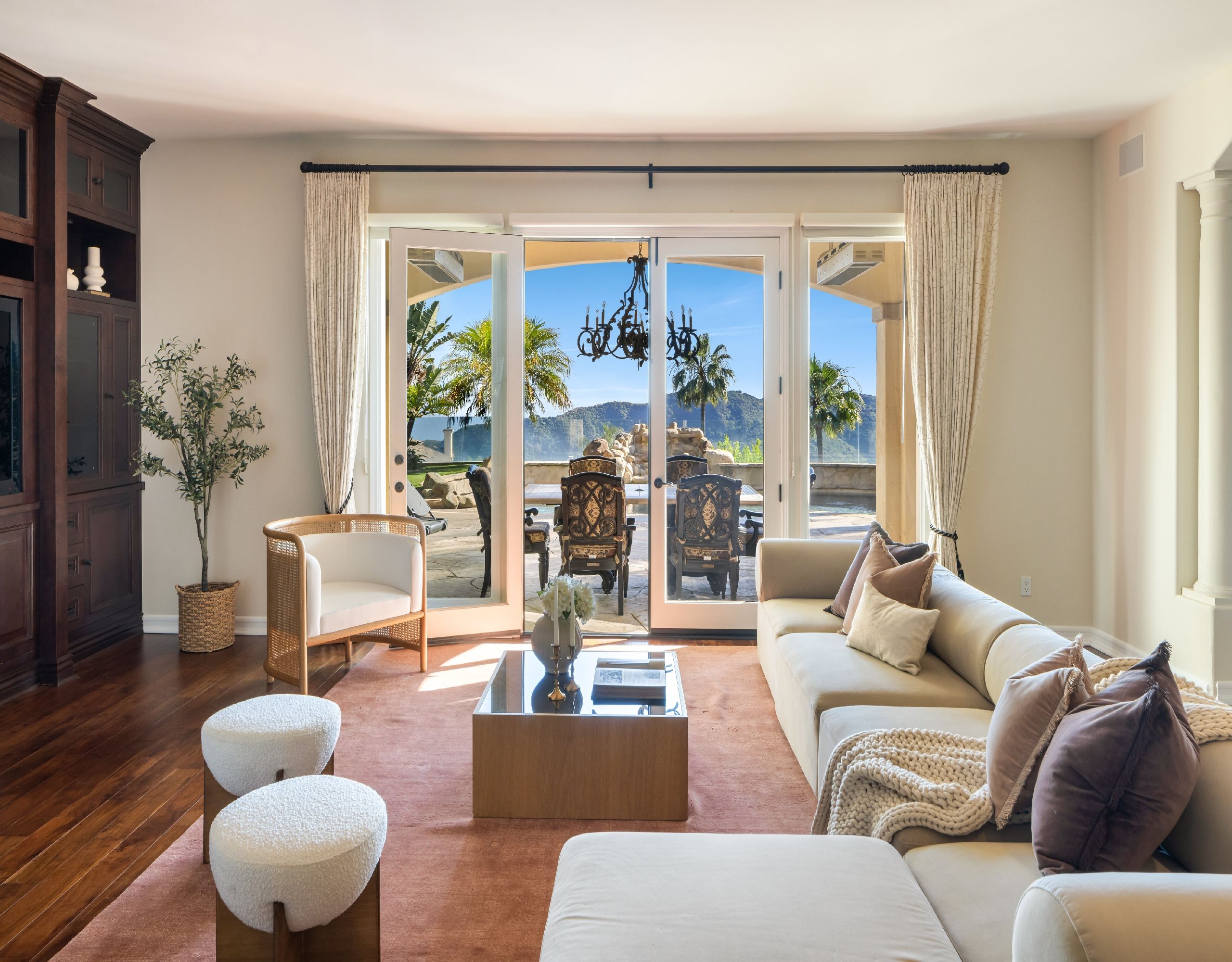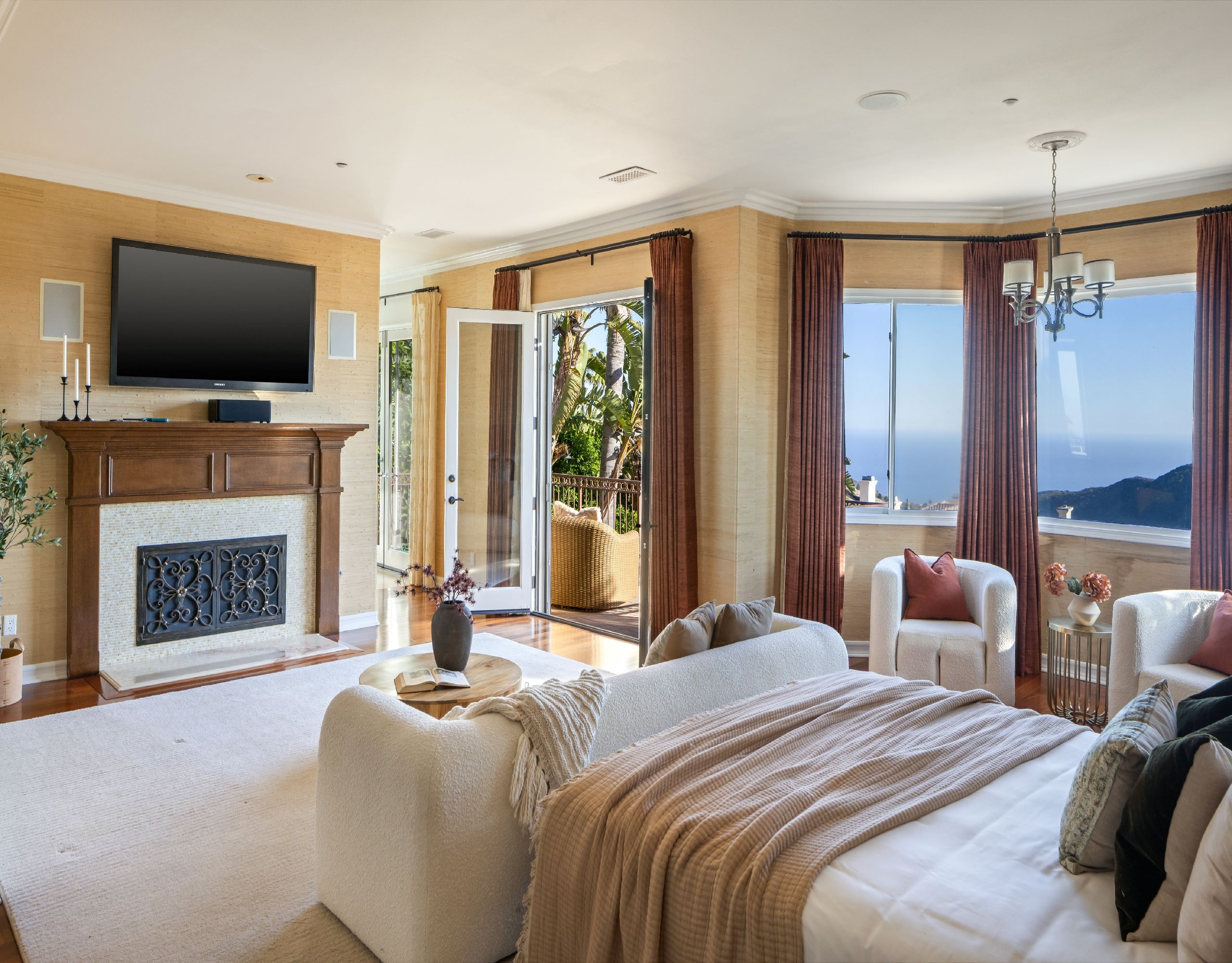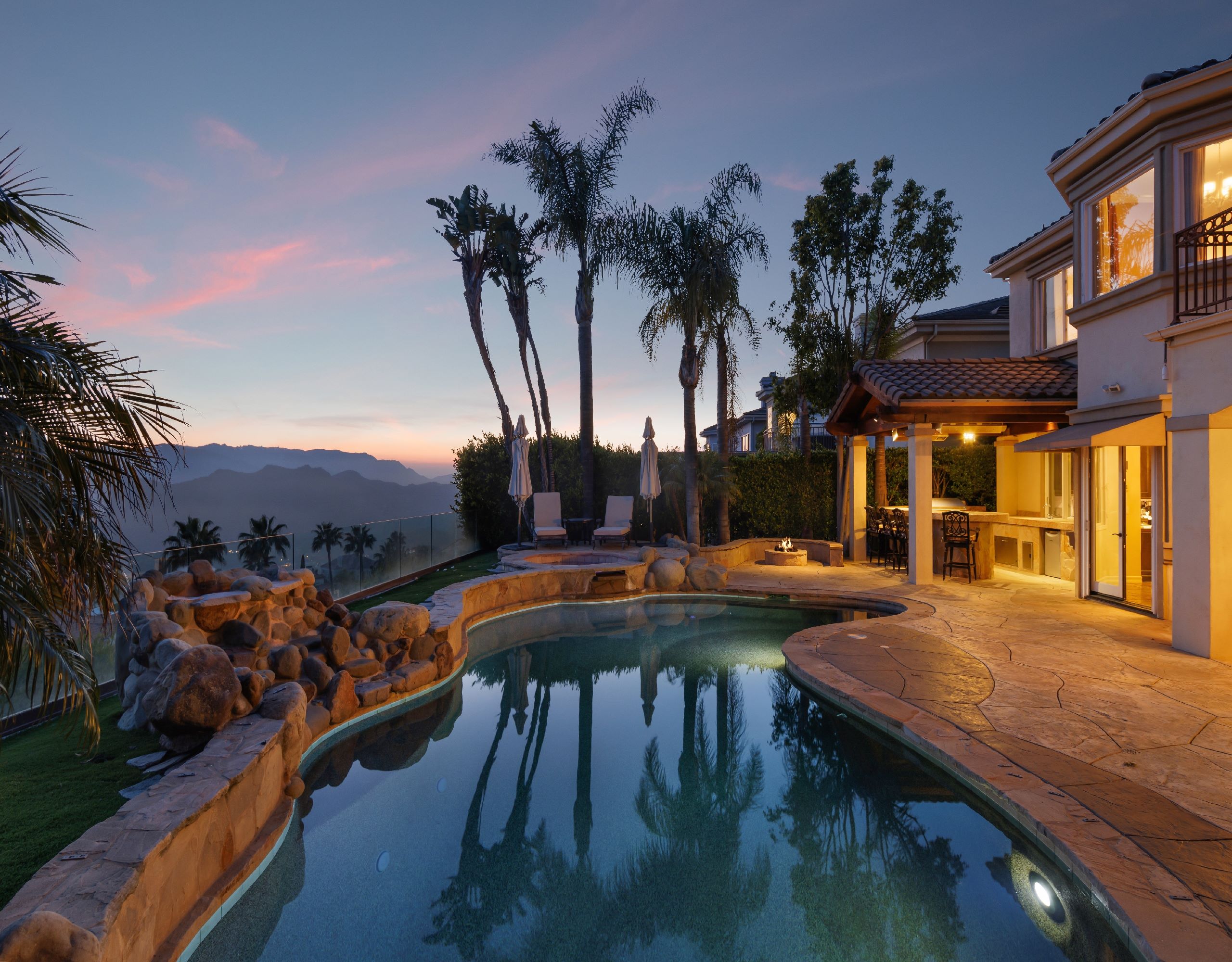 Welcome to 16826 Calle de Sarah, a sophisticated Mediterranean estate nestled in the prestigious gated community of The Summit in the Pacific Palisades. This Tuscan-esque home spans 5-bedrooms, 4-bathrooms plus home office, in 5,759 square feet. A perfect blend of family living mixed with Southern California lifestyle that includes iconic views of the Pacific Ocean. Upon entering through the grand entrance, you'll be welcomed by a spacious and elegant interior that seamlessly combines style and comfort. The spacious living areas are perfect for both entertaining and everyday living, featuring windows that flood the home with natural light and offer breathtaking panoramic views of the surrounding mountains, valleys, and picturesque sunsets. The heart of this home is its gourmet kitchen, equipped with top-of-the-line appliances.. It flows effortlessly into the dining and living areas, creating a perfect setting for gatherings. The primary suite is a true sanctuary, boasting a stunning master bathroom complete with a fireplace, ensuring a spa-like experience in the comfort of your own home. Outside, the property transforms into a private oasis. The beautifully landscaped backyard is adorned with trees and palms, enhancing the sense of tranquility. The sparkling pool with a spa invites you to relax and unwind, while the outdoor BBQ area is ideal for alfresco dining and entertaining. Experience the ultimate in Southern California living at 16826 Calle de Sarah, where every detail is designed to provide a luxurious and serene lifestyle.