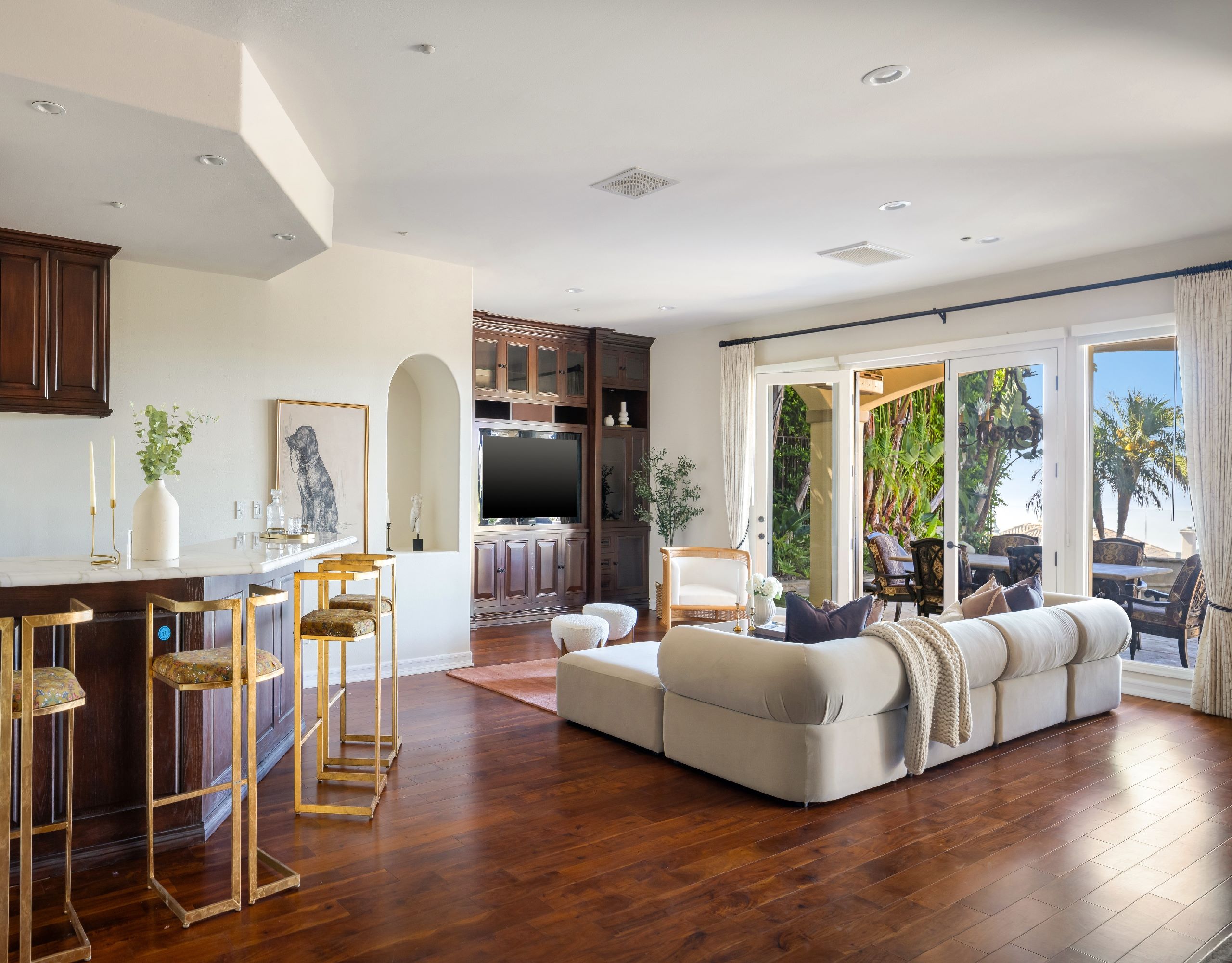 string(1556) "Welcome to 16826 Calle de Sarah, a sophisticated Mediterranean estate nestled in the prestigious gated community of The Summit in the Pacific Palisades. This Tuscan-esque home spans 5-bedrooms, 4-bathrooms plus home office, in 5,759 square feet. A perfect blend of family living mixed with Southern California lifestyle that includes iconic views of the Pacific Ocean. Upon entering through the grand entrance, you'll be welcomed by a spacious and elegant interior that seamlessly combines style and comfort. The spacious living areas are perfect for both entertaining and everyday living, featuring windows that flood the home with natural light and offer breathtaking panoramic views of the surrounding mountains, valleys, and picturesque sunsets. The heart of this home is its gourmet kitchen, equipped with top-of-the-line appliances.. It flows effortlessly into the dining and living areas, creating a perfect setting for gatherings. The primary suite is a true sanctuary, boasting a stunning master bathroom complete with a fireplace, ensuring a spa-like experience in the comfort of your own home. Outside, the property transforms into a private oasis. The beautifully landscaped backyard is adorned with trees and palms, enhancing the sense of tranquility. The sparkling pool with a spa invites you to relax and unwind, while the outdoor BBQ area is ideal for alfresco dining and entertaining. Experience the ultimate in Southern California living at 16826 Calle de Sarah, where every detail is designed to provide a luxurious and serene lifestyle."