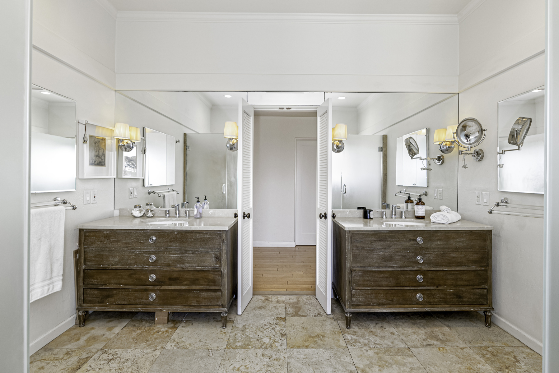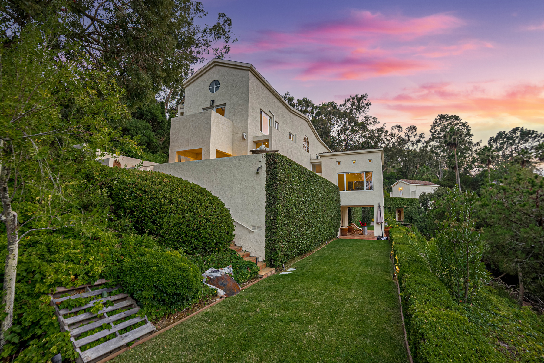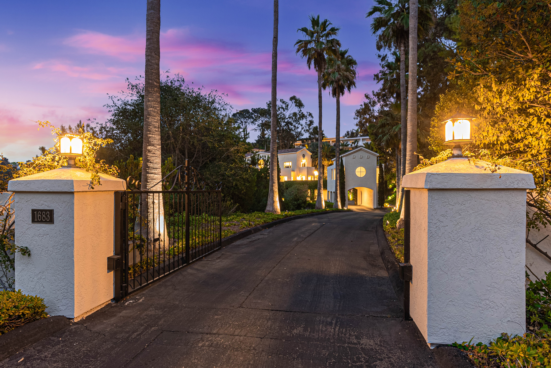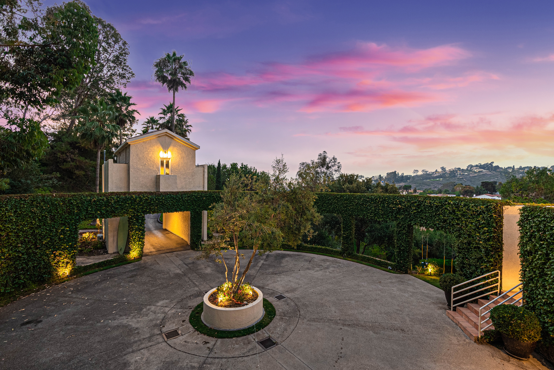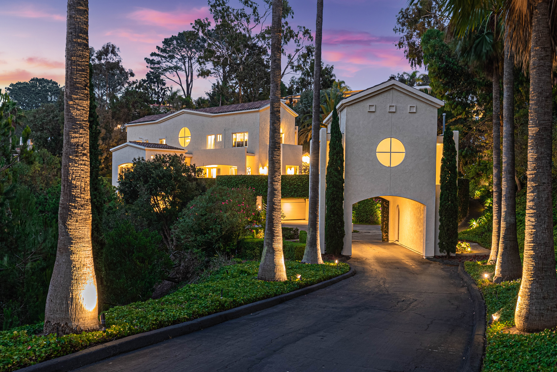 Exceptional design and craftsmanship meet elegance, serenity, and privacy in this one-of-a-kind Muirlands Estate. Tucked into the hillside and accessed via private gated drive, this spectacular Spanish compound offers over an acre of beautifully manicured grounds including numerous outdoor patios, fireplace, gardens, and entertaining spaces. The main home boasts stunning ocean and hillside views, soaring ceilings, abundant natural light, a chef's kitchen equipped with Viking appliances, and an expansive master retreat offering dual walk-in closets, stunning master bath, and private view patio. Seamless indoor-outdoor flow invites entertaining, and allows for full enjoyment of the entire property. An architecturally profound circular motor court separates the main house from the detached 1bed/1bath guest house - and provides plentiful space for guest parking or valet services. Other features include: 3 wine fridges in kitchen, full maid suite on garage level, and entire property lighting system. Built for entertaining, this home offers an incredible opportunity to own one of the most beautifully unique homes in La Jolla, and perhaps in all of San Diego!