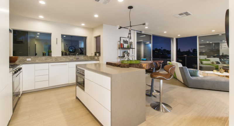SILVER LAKE HILLS CONTEMPORARY: Show Stopper! Multi-level home with high ceilings, open floor plan and breathtaking panoramic views from every room- city lights, downtown skyscrapers, and canyon views! Natural light from every direction, oversized windows, Atrium skylight, floor to ceiling sliding glass doors that open the family room to the 420sqft wrap-around deck. This large 3470sqft, completely remodeled by HGTV's Matthew Finlason, boasts 4 BR's, each with own bath. Huge Master BR suite with walk-in closet and spa bathroom. Large open kitchen with new built-in European appliances and breakfast area with spectacular Redwood Tree slab counter table that must be seen! Raised living room with separate dining room surrounded by XL view windows is perched among the treetops. This entertainer's architectural masterpiece is a gem with 2 car garage, and direct access to LA's historic Silver Lake stairs from the garden patio below, putting the Silver Lake scene just a short walk away to Sunset and Silverlake Blvd.