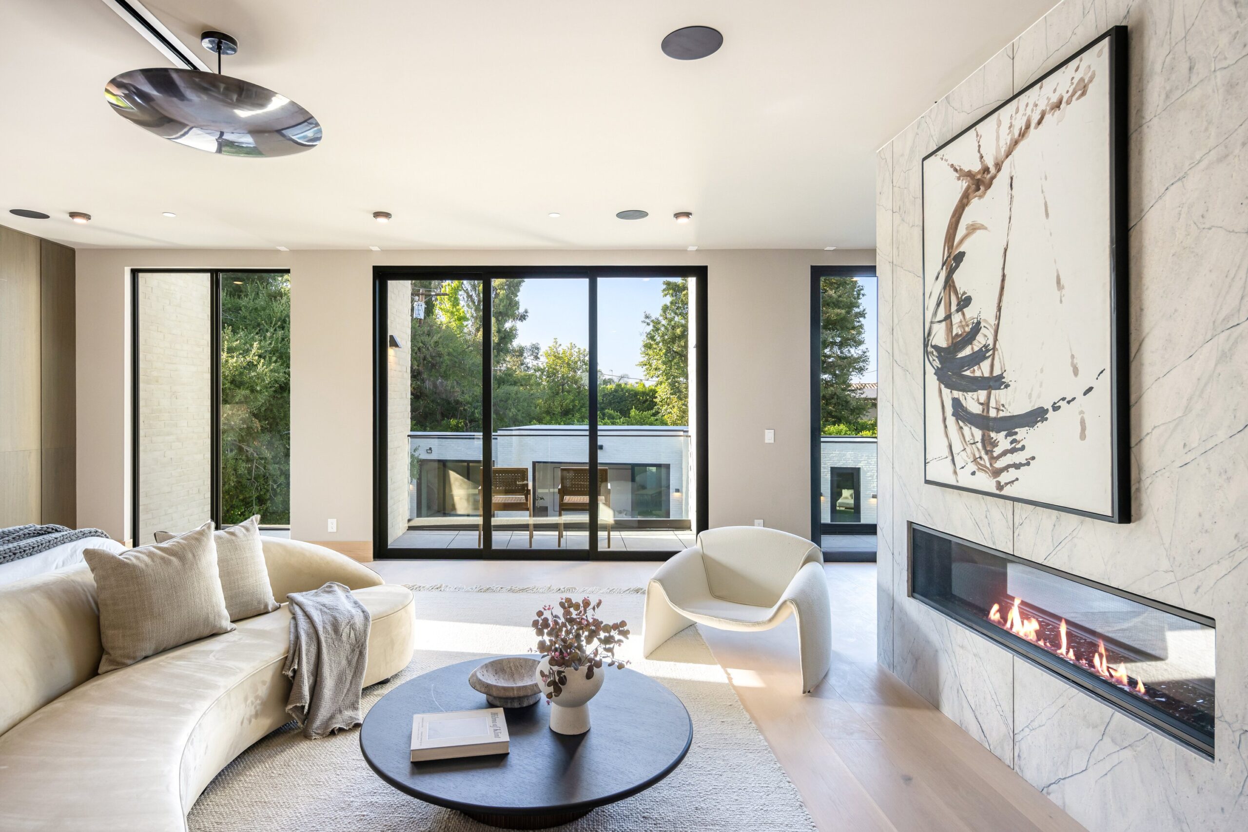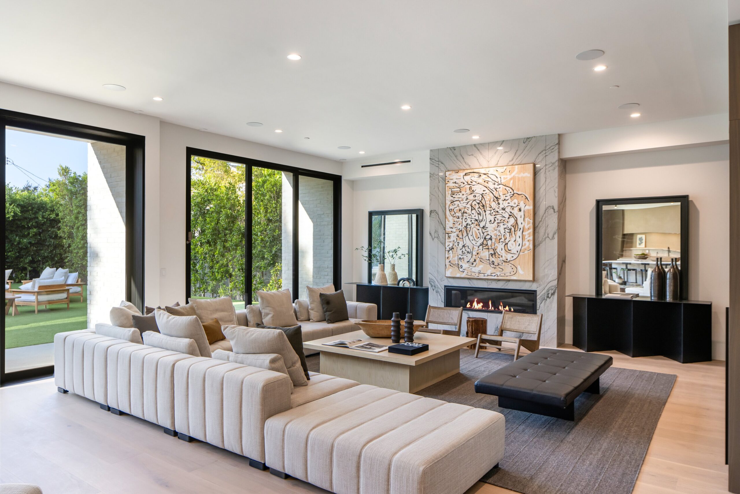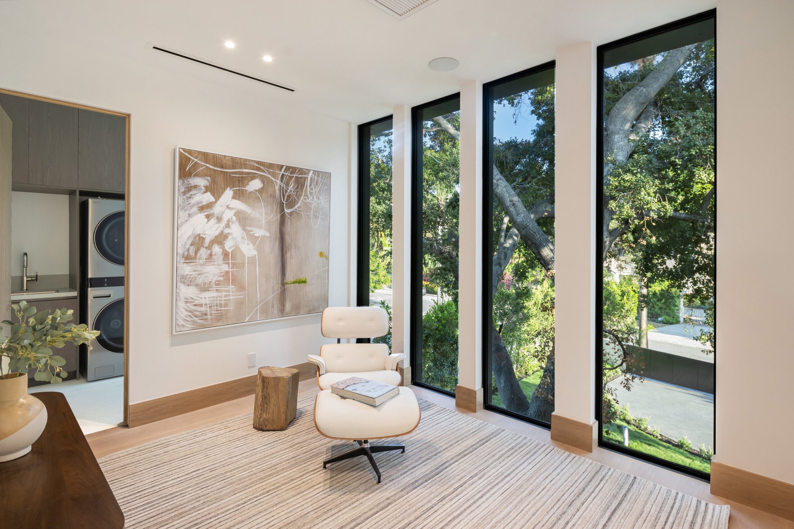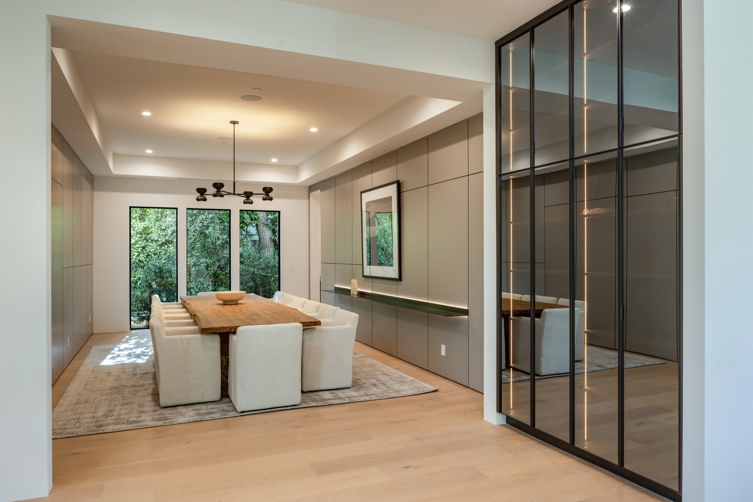 Located on one of the most coveted streets south of Ventura Blvd in the prestigious Rancho Estates of Encino, this stunning modern-mid-century estate blends exceptional design with high-end craftsmanship. Its stone facade and vertical lines create a striking visual, while expansive picture windows flood the interiors with natural light. A refined selection of materials, including brushed stone, cold-rolled steel, white oak, and gunmetal finishes, creates a seamless, stylish atmosphere. The home features a chef’s kitchen, full bar, family and living rooms, office/study, cinema room, and gym, all designed for both comfort and entertainment. The luxurious primary suite includes a private balcony, a spa-inspired bath with an oversized shower, and designer walk-in closets. The outdoor space offers a pool, spa, cabana with an outdoor kitchen, fire pit, and lounging deck. An ADU provides additional flexibility, while the lush grounds, featuring olive trees and Italian cypress, offer plenty of room for play and relaxation. Ideally situated just moments from Brentwood, Bel Air, and the Westside, this home provides the ultimate in luxury living.