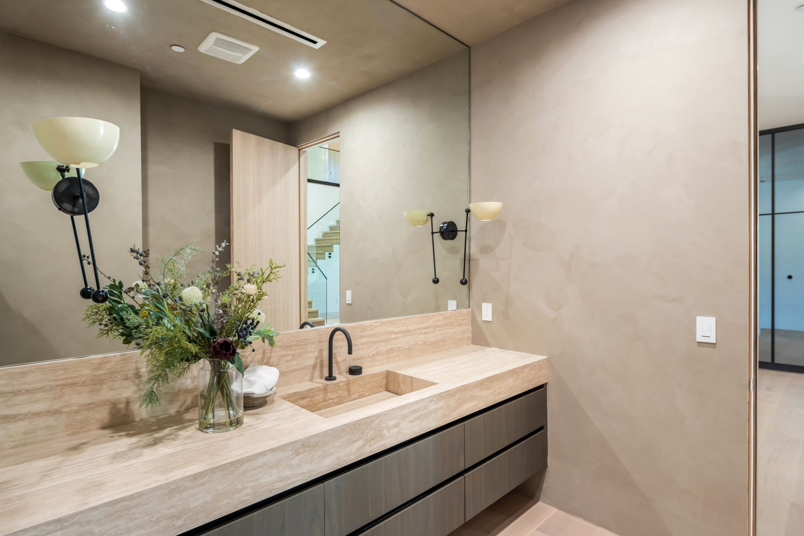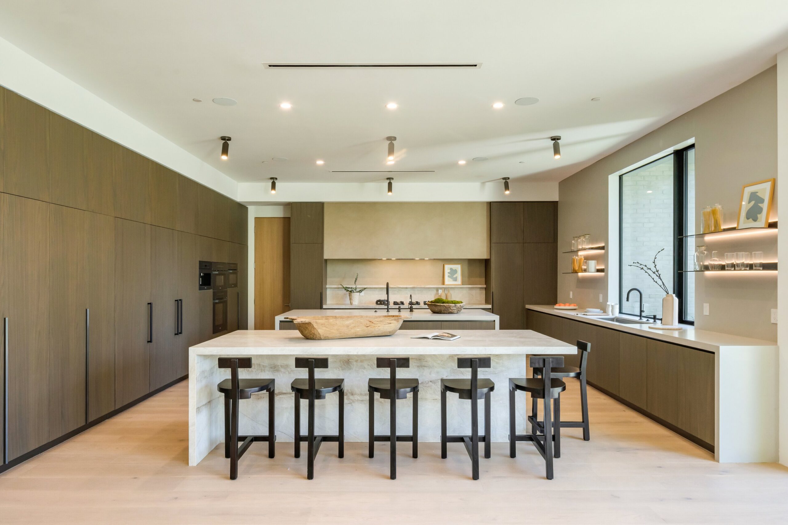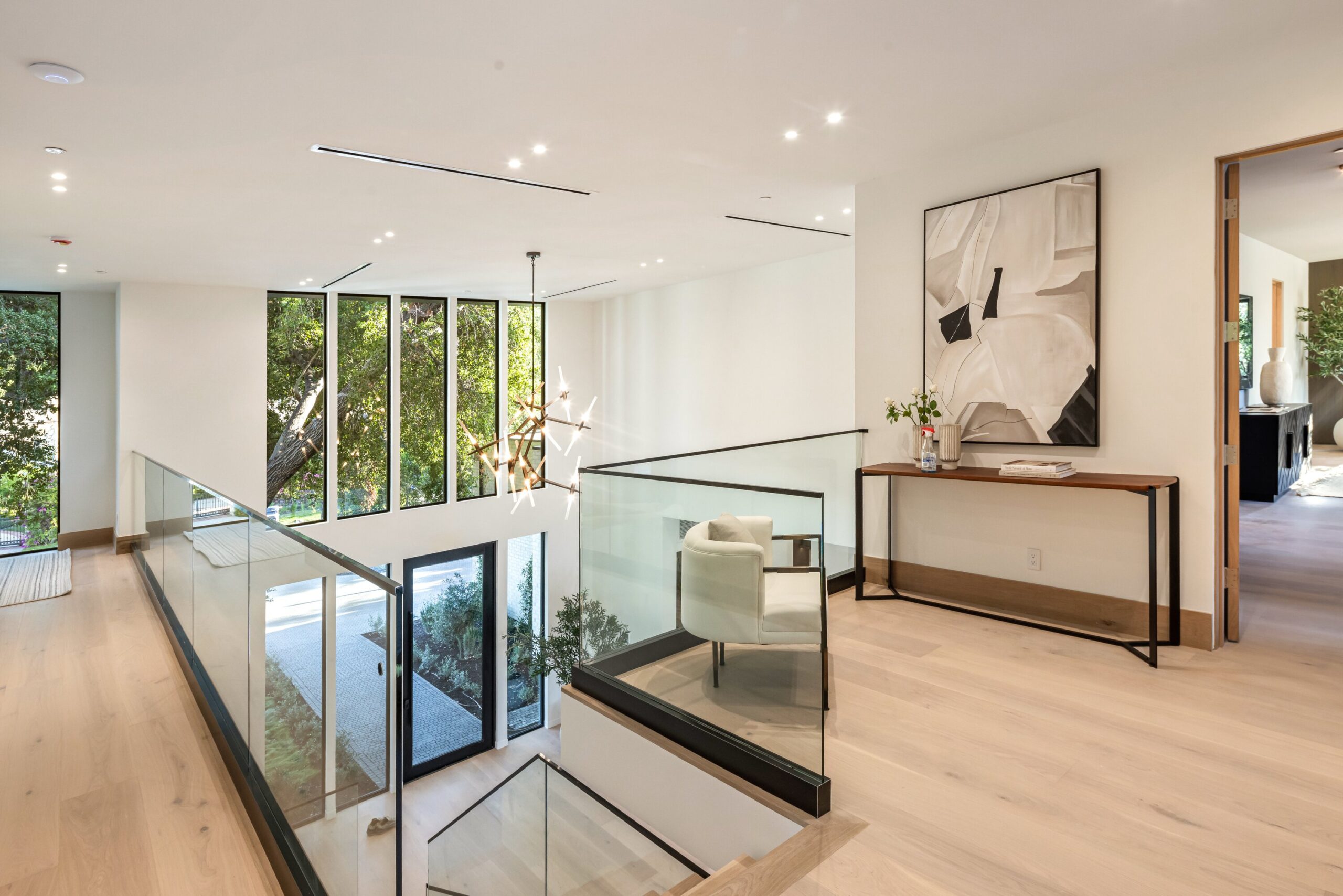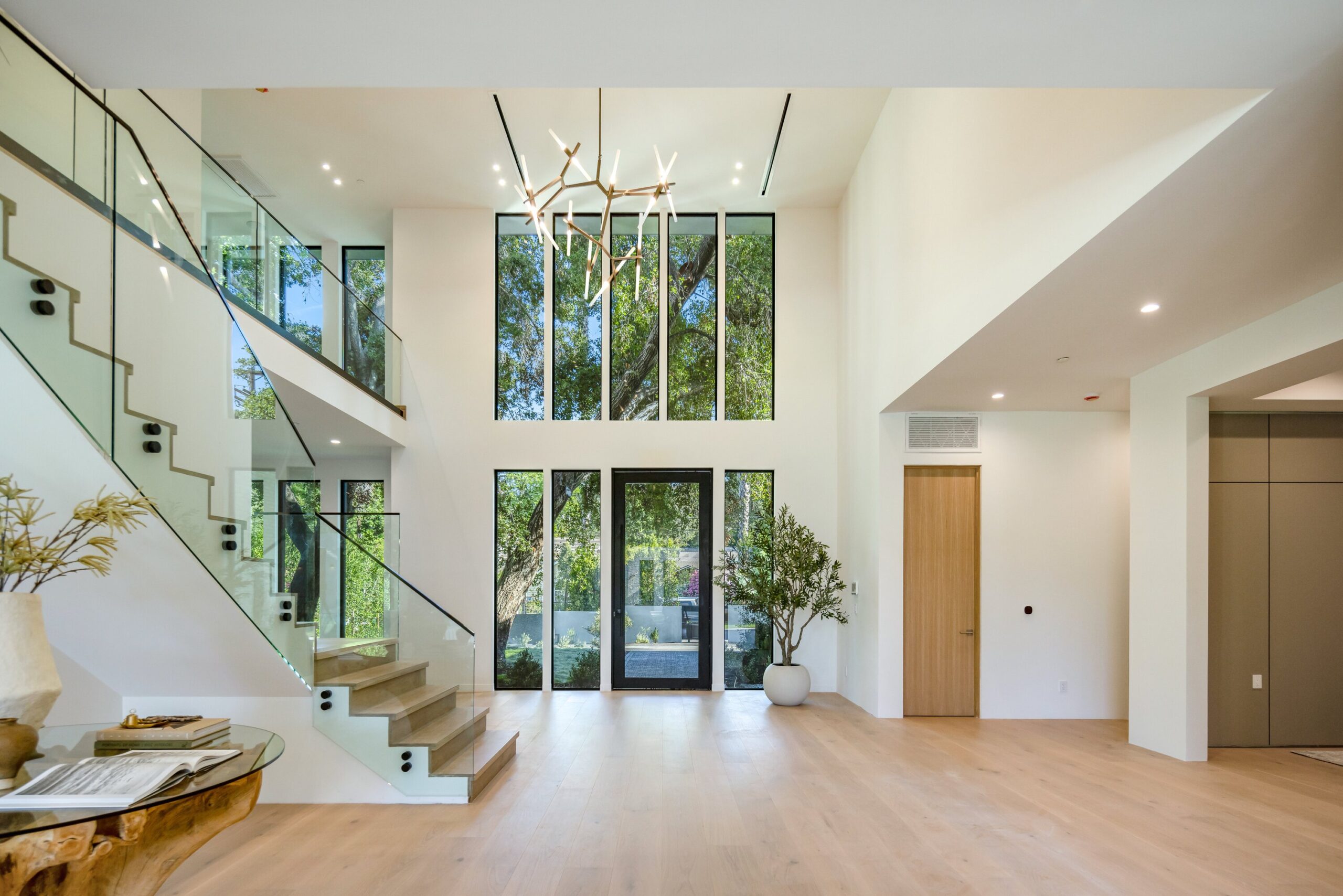 Located on one of the most coveted streets south of Ventura Blvd in the prestigious Rancho Estates of Encino, this stunning modern-mid-century estate blends exceptional design with high-end craftsmanship. Its stone facade and vertical lines create a striking visual, while expansive picture windows flood the interiors with natural light. A refined selection of materials, including brushed stone, cold-rolled steel, white oak, and gunmetal finishes, creates a seamless, stylish atmosphere. The home features a chef’s kitchen, full bar, family and living rooms, office/study, cinema room, and gym, all designed for both comfort and entertainment. The luxurious primary suite includes a private balcony, a spa-inspired bath with an oversized shower, and designer walk-in closets. The outdoor space offers a pool, spa, cabana with an outdoor kitchen, fire pit, and lounging deck. An ADU provides additional flexibility, while the lush grounds, featuring olive trees and Italian cypress, offer plenty of room for play and relaxation. Ideally situated just moments from Brentwood, Bel Air, and the Westside, this home provides the ultimate in luxury living.
