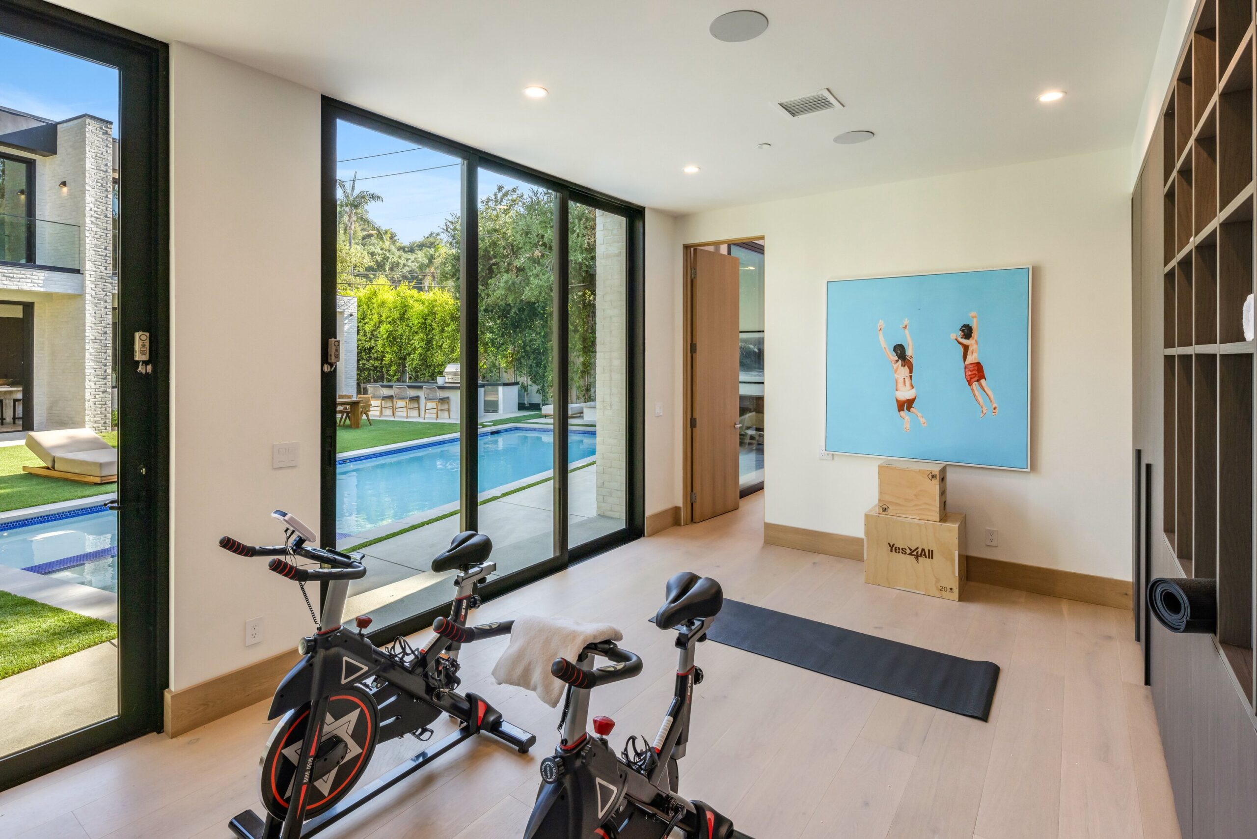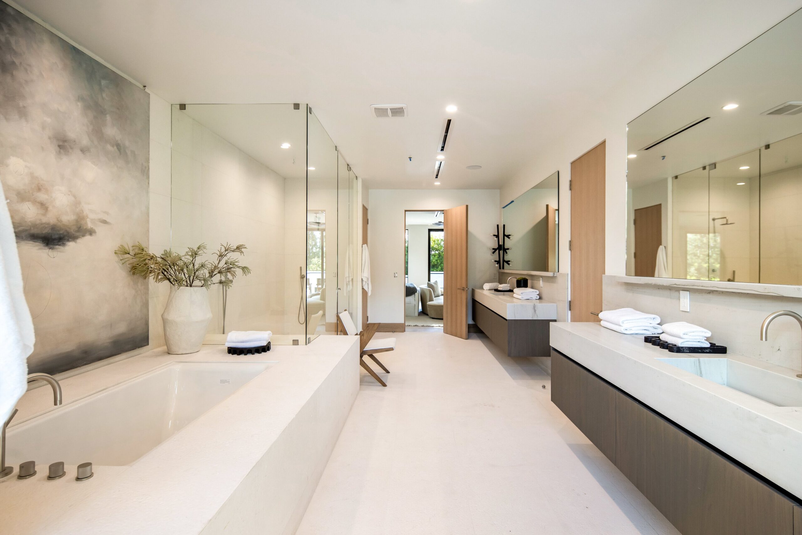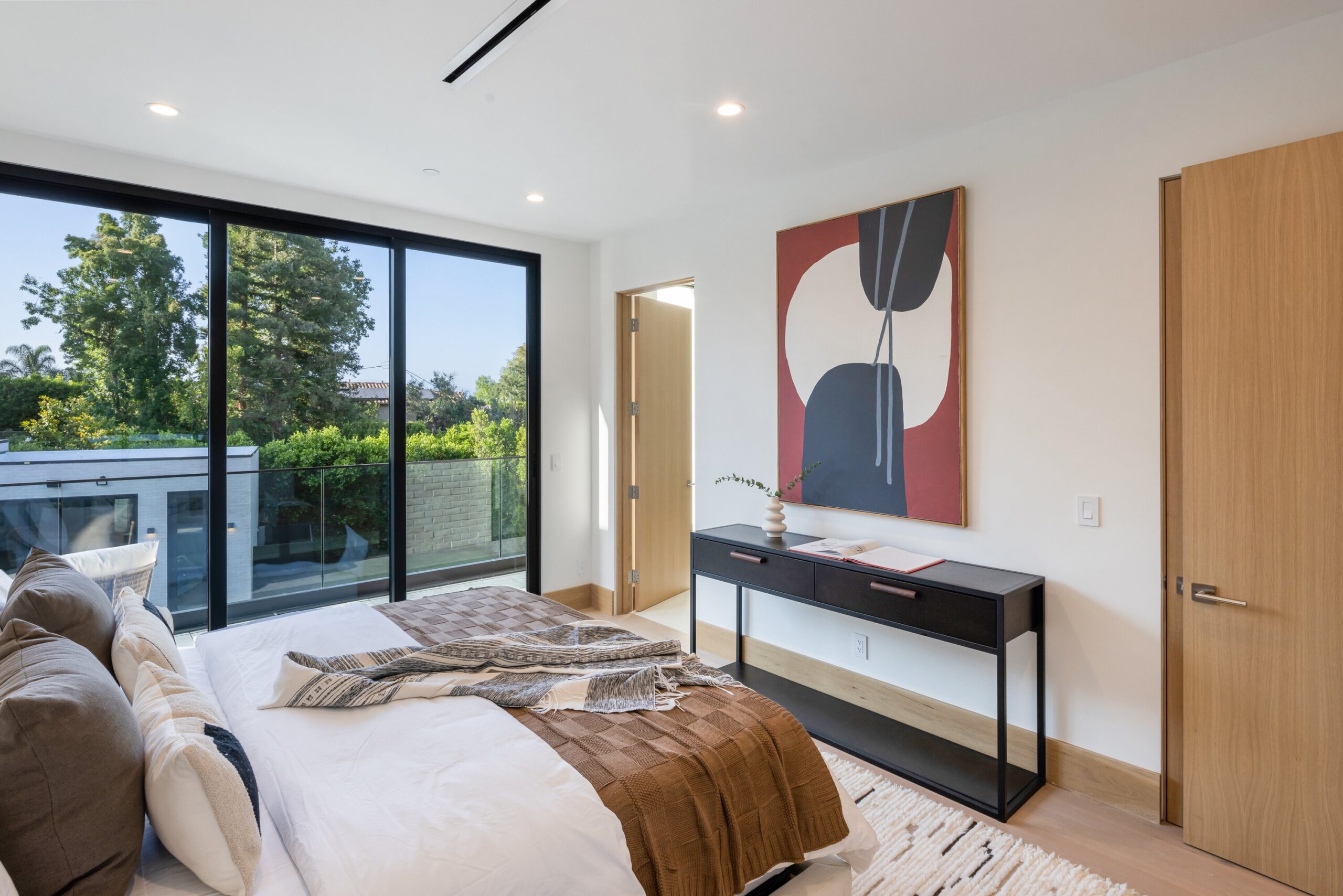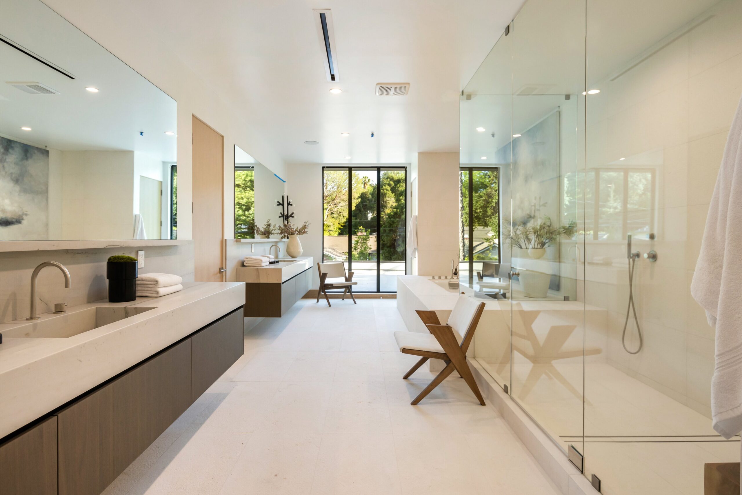 Located on one of the most coveted streets south of Ventura Blvd in the prestigious Rancho Estates of Encino, this stunning modern-mid-century estate blends exceptional design with high-end craftsmanship. Its stone facade and vertical lines create a striking visual, while expansive picture windows flood the interiors with natural light. A refined selection of materials, including brushed stone, cold-rolled steel, white oak, and gunmetal finishes, creates a seamless, stylish atmosphere. The home features a chef’s kitchen, full bar, family and living rooms, office/study, cinema room, and gym, all designed for both comfort and entertainment. The luxurious primary suite includes a private balcony, a spa-inspired bath with an oversized shower, and designer walk-in closets. The outdoor space offers a pool, spa, cabana with an outdoor kitchen, fire pit, and lounging deck. An ADU provides additional flexibility, while the lush grounds, featuring olive trees and Italian cypress, offer plenty of room for play and relaxation. Ideally situated just moments from Brentwood, Bel Air, and the Westside, this home provides the ultimate in luxury living.