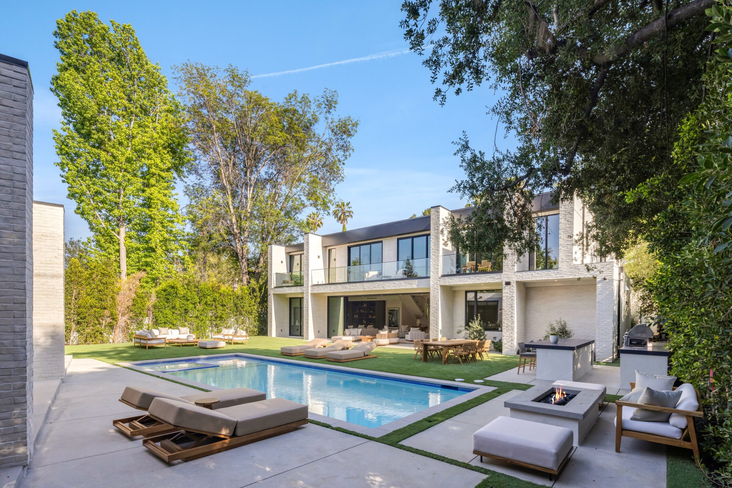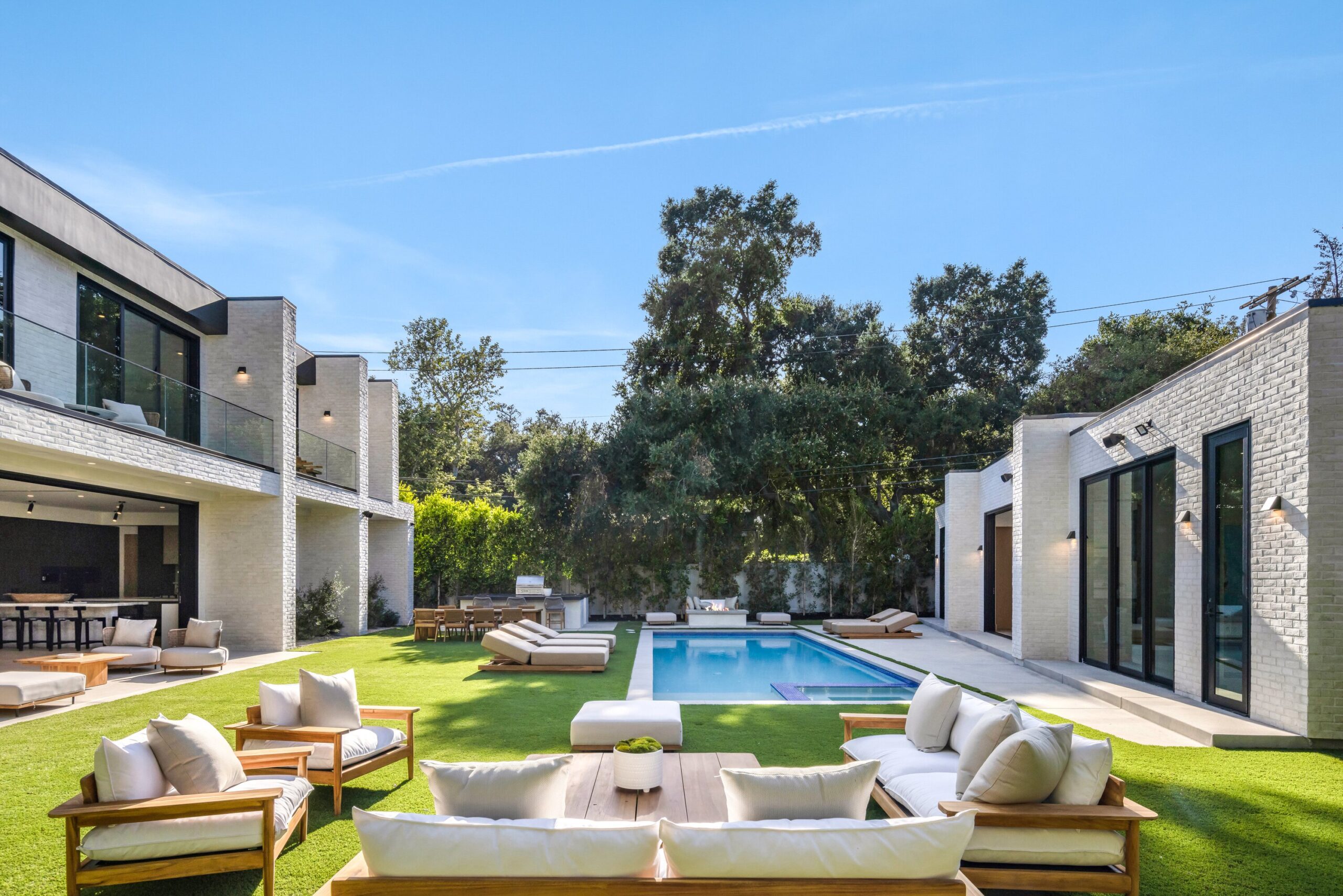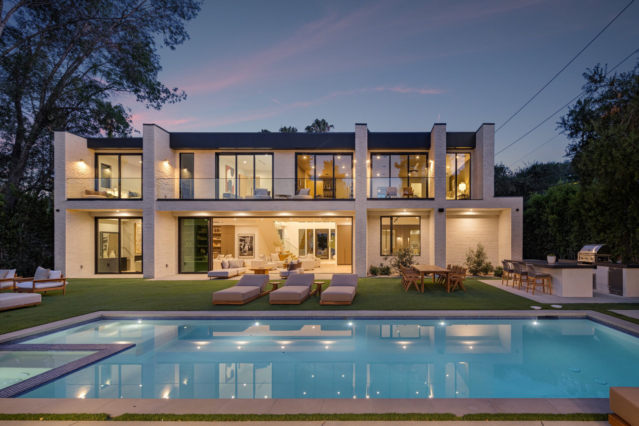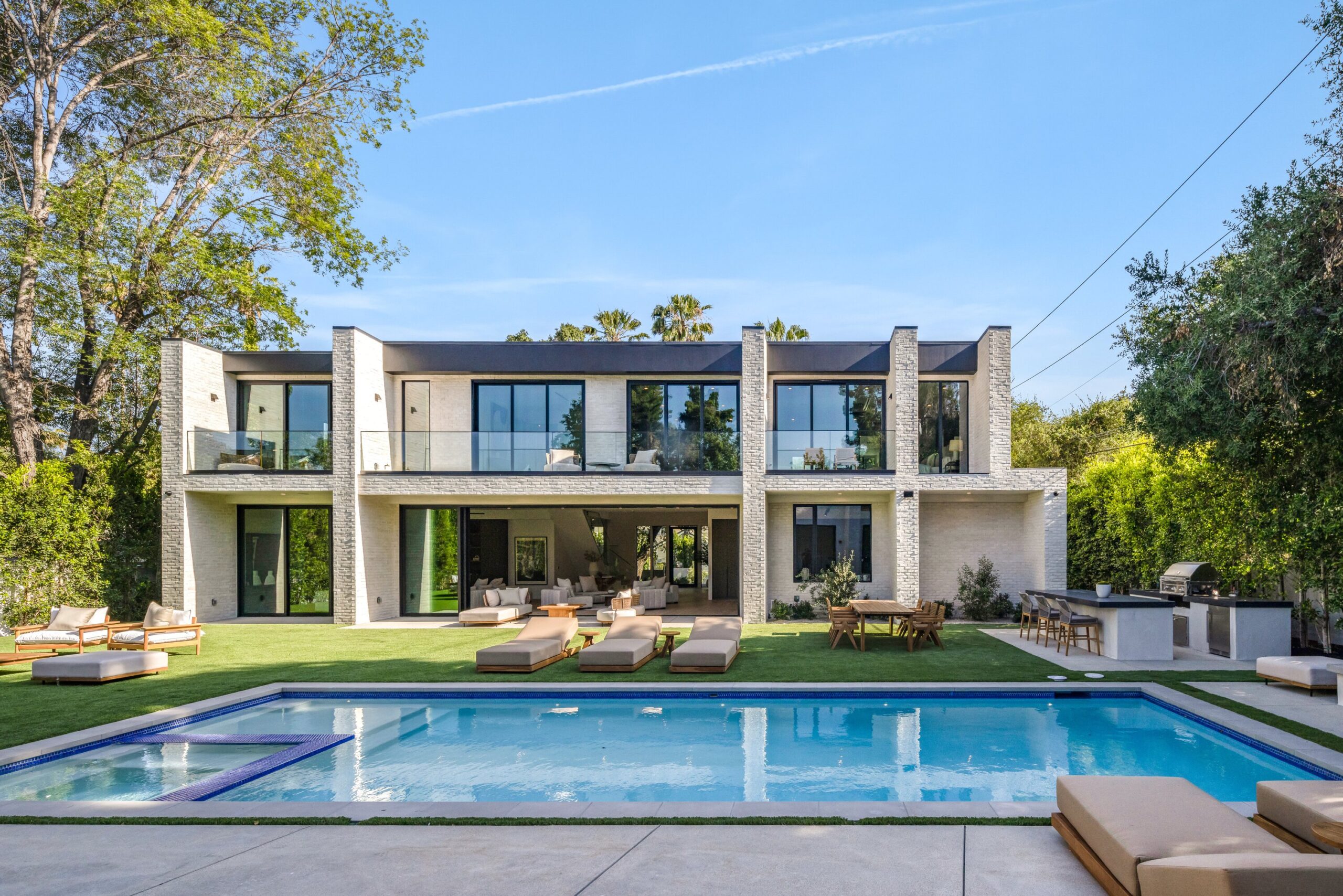 string(1155) "Located on one of the most coveted streets south of Ventura Blvd in the prestigious Rancho Estates of Encino, this stunning modern-mid-century estate blends exceptional design with high-end craftsmanship. Its stone facade and vertical lines create a striking visual, while expansive picture windows flood the interiors with natural light. A refined selection of materials, including brushed stone, cold-rolled steel, white oak, and gunmetal finishes, creates a seamless, stylish atmosphere. The home features a chef’s kitchen, full bar, family and living rooms, office/study, cinema room, and gym, all designed for both comfort and entertainment. The luxurious primary suite includes a private balcony, a spa-inspired bath with an oversized shower, and designer walk-in closets. The outdoor space offers a pool, spa, cabana with an outdoor kitchen, fire pit, and lounging deck. An ADU provides additional flexibility, while the lush grounds, featuring olive trees and Italian cypress, offer plenty of room for play and relaxation. Ideally situated just moments from Brentwood, Bel Air, and the Westside, this home provides the ultimate in luxury living."
