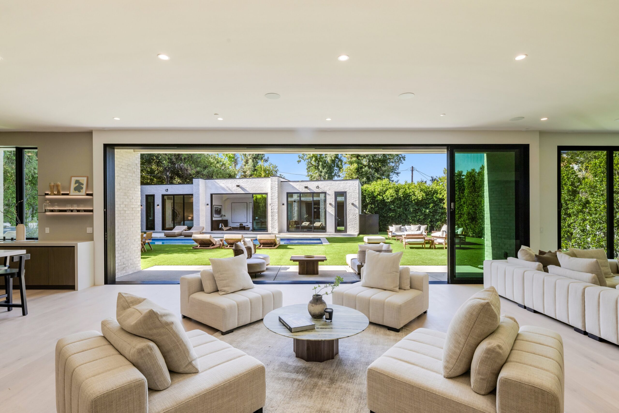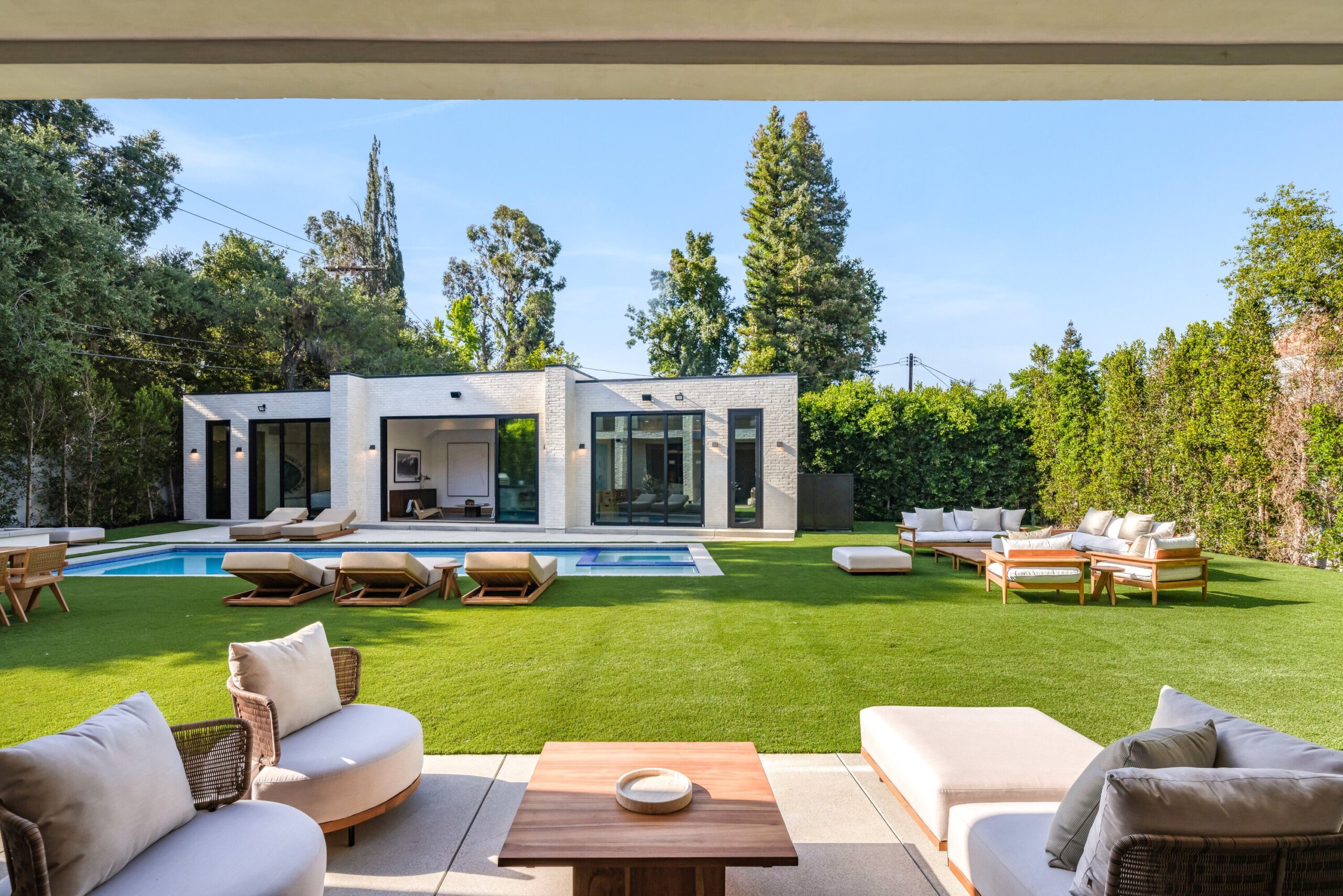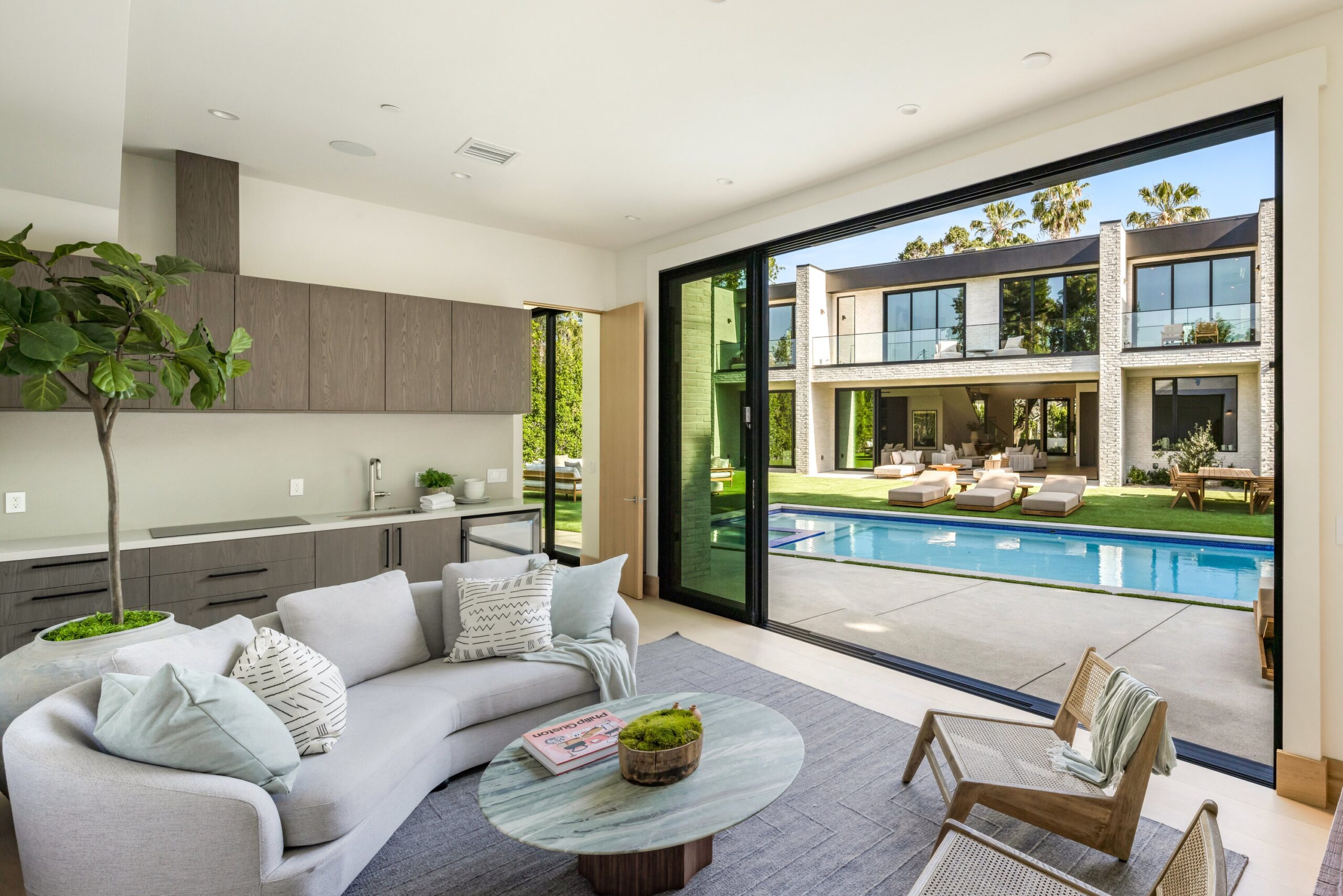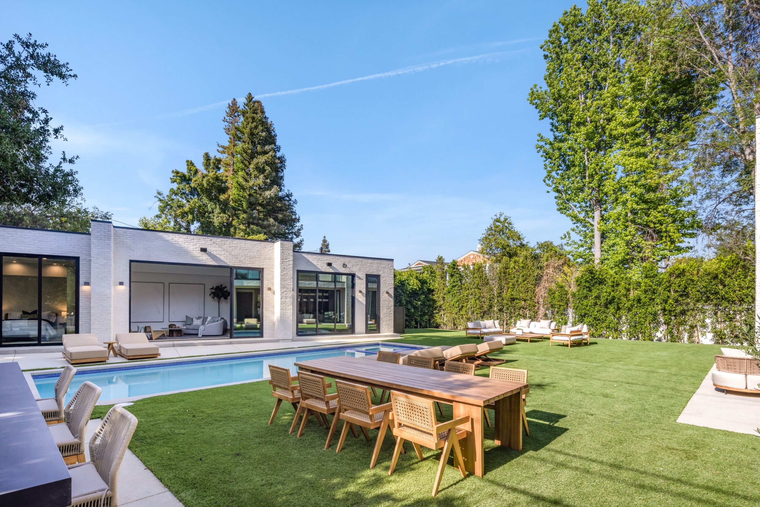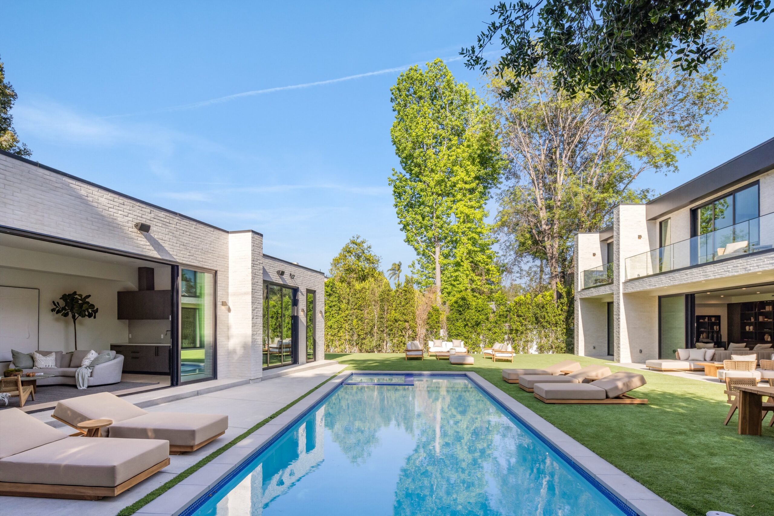 string(1155) "Located on one of the most coveted streets south of Ventura Blvd in the prestigious Rancho Estates of Encino, this stunning modern-mid-century estate blends exceptional design with high-end craftsmanship. Its stone facade and vertical lines create a striking visual, while expansive picture windows flood the interiors with natural light. A refined selection of materials, including brushed stone, cold-rolled steel, white oak, and gunmetal finishes, creates a seamless, stylish atmosphere. The home features a chef’s kitchen, full bar, family and living rooms, office/study, cinema room, and gym, all designed for both comfort and entertainment. The luxurious primary suite includes a private balcony, a spa-inspired bath with an oversized shower, and designer walk-in closets. The outdoor space offers a pool, spa, cabana with an outdoor kitchen, fire pit, and lounging deck. An ADU provides additional flexibility, while the lush grounds, featuring olive trees and Italian cypress, offer plenty of room for play and relaxation. Ideally situated just moments from Brentwood, Bel Air, and the Westside, this home provides the ultimate in luxury living."