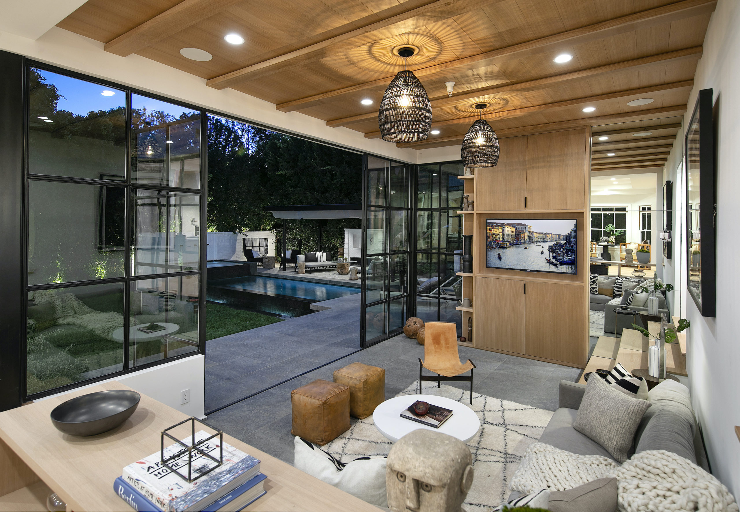 This ~6,100 square foot gated Traditional radiates exceptional design, remarkable features and quality materials. The sleek chef's kitchen blends aesthetic vision and functionality with rift white oak cabinets, a marble topped island, and Wolf/Sub-Zero appliances. Seamless indoor/outdoor living through custom Steelcase windows and doors that allow an abundance of light to fill the home while putting the incredible property grounds on display. Featuring 5 bedrooms and 7 bathrooms the home includes a living room, great room, office, theatre, wine cellar and bar. The beautiful master suite boasts soaring vaulted ceilings, a fireplace, stone filled bathroom and massive custom closet. Offering ultimate privacy with tall lush greenery, the backyard showcases the epitome of California living with an infinity pool, water feature, BBQ and cabana with a fireplace.