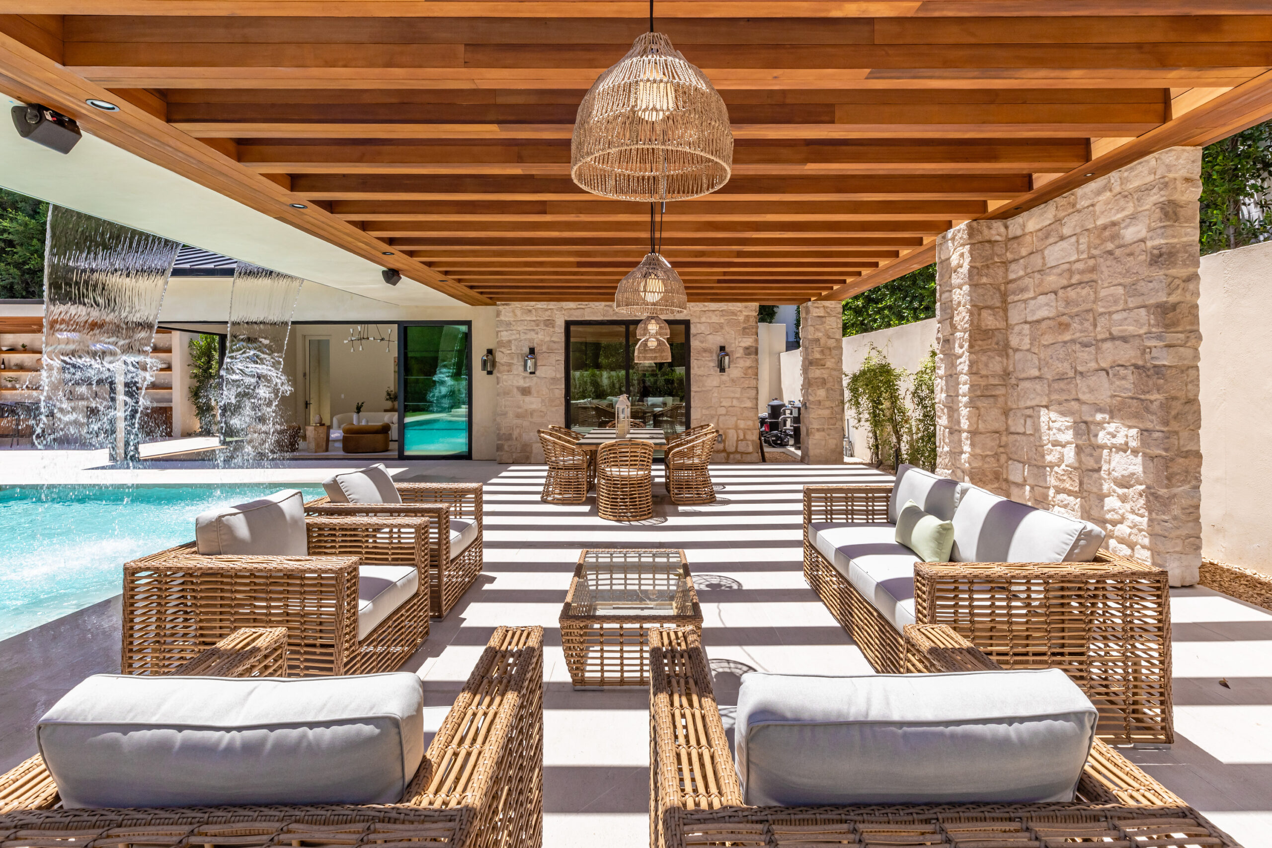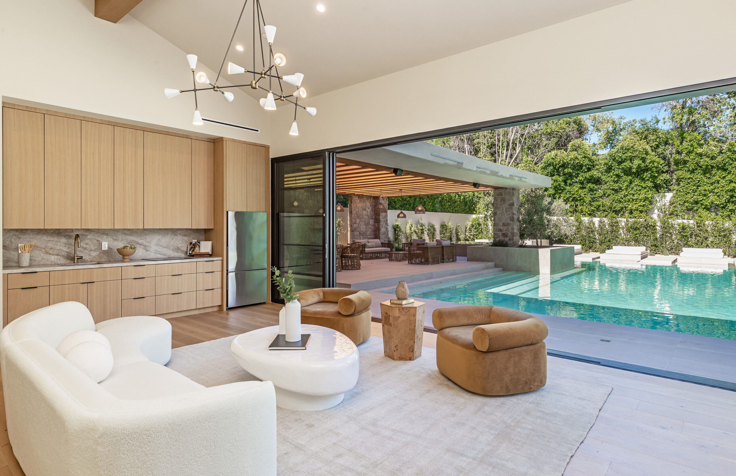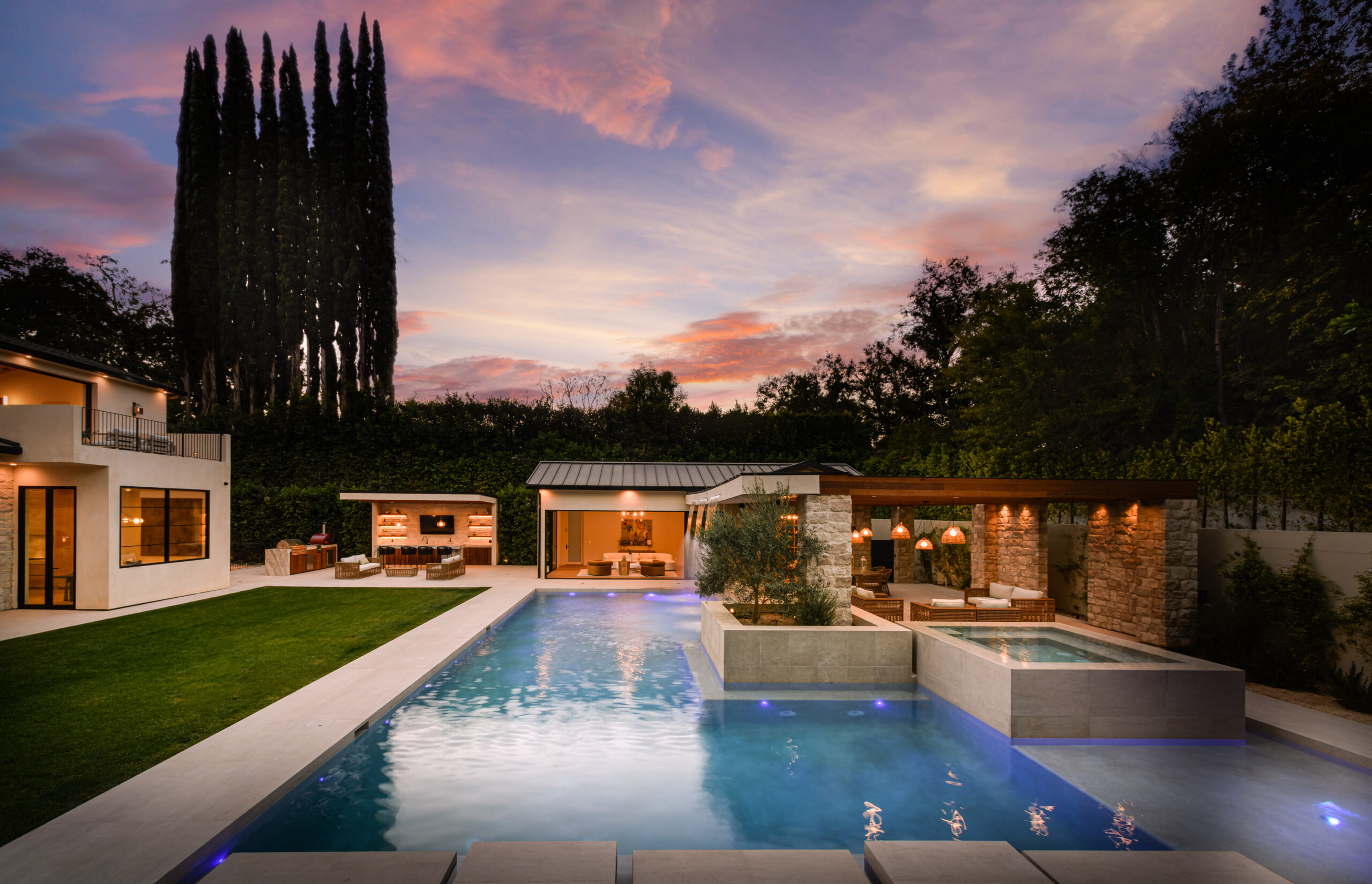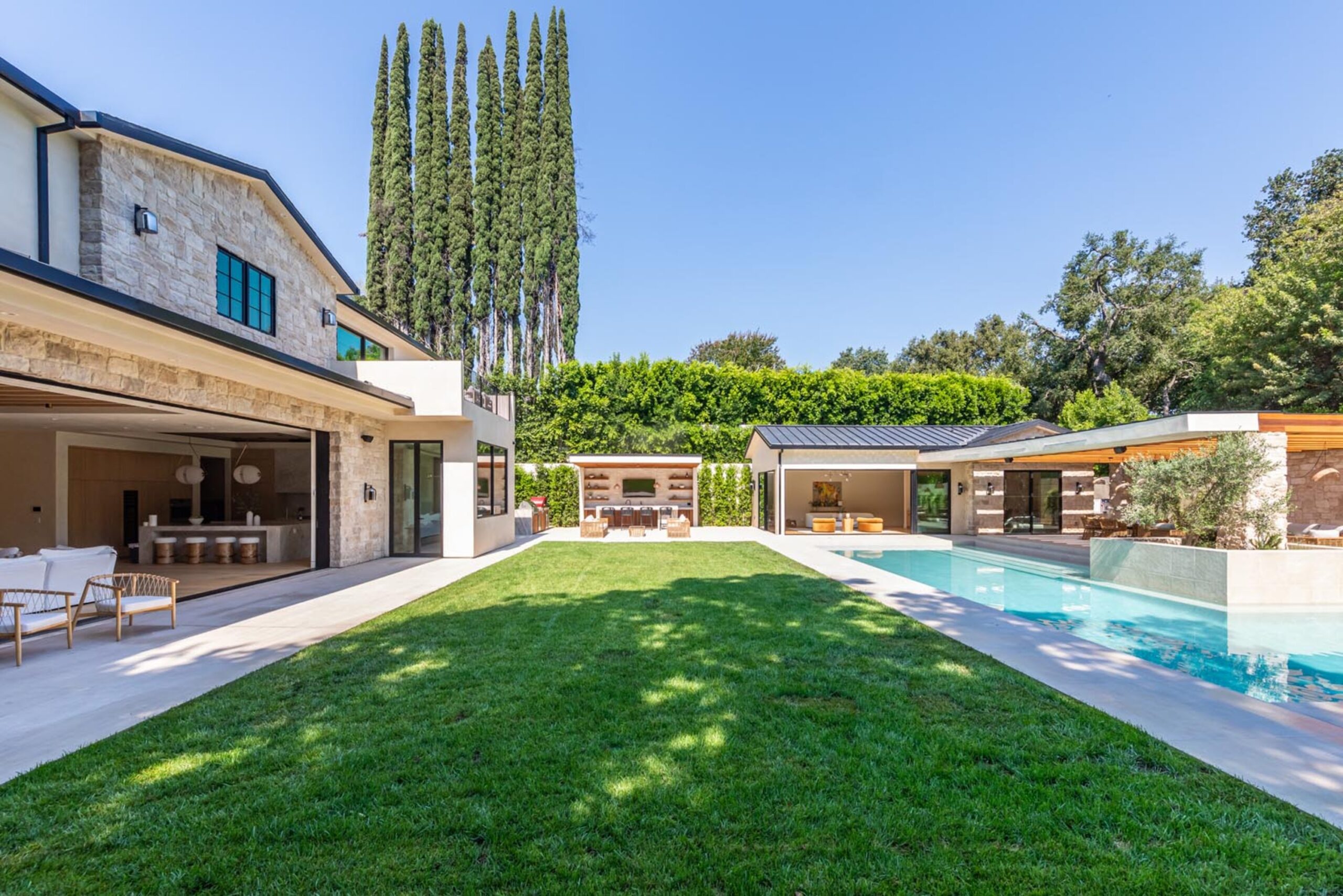string(2478) "Step into a world of unparalleled design and sophistication in this exclusive private oasis, nestled on over of an acre. This gated Encino estate greets you with a grand motor court, setting the stage for a life of refined elegance and ultimate privacy. Every detail of this compound exudes luxury. The interior is a masterpiece of curated organic finishes, featuring plaster walls and natural stones that seamlessly blend with the soaring high ceilings and fluid indoor-outdoor transitions. The sprawling family room is where comfort meets elegance. This grand space boasts custom built-ins and a stunning fireplace that serves as the room's focal point. Expansive sliding doors reveal breathtaking views of the resort-inspired backyard, creating a seamless connection between indoor elegance and outdoor paradise. The awe-inspiring double island kitchen, along with a secondary chef s kitchen equipped with top-of-the-line appliances, will leave you breathless. The formal dining room is ideal for lavish dinners, where an outdoor fireplace framed by a majestic oak tree provides a stunning backdrop. The primary suite is a sanctuary of luxury, offering not just one, but two private balconies, dual SPA inspired baths, and two massive walk-in closets that promise to satisfy even the most discerning tastes. The executive office adjoins the auto gallery/game room, ensuring that work and play coexist in perfect harmony. Descend to the lower level, where indulgence knows no bounds. Here, a state-of-the-art fitness center with a steam shower, dry sauna, dedicated lap pool and spa awaits. Enjoy blockbuster nights in the luxurious theater, savor your finest vintages in the walk-in wine cellar, and relax in the lounge area complete with a full bar. Each of the en-suite bedrooms offers a private retreat, while additional features such as an elevator, two bars, a media room, two family rooms, two laundry rooms, home automation, and designer light fixtures elevate this estate to the pinnacle of modern living. Step outside to a resort-inspired paradise. An outdoor kitchen, multiple seating areas, and a uniquely designed pool with cascading waterfalls and floating pool beds create an idyllic setting for unforgettable gatherings. A well-appointed guest house provides a luxurious haven for your visitors. This estate is not just a home; it is a testament to where function, elegance, and flawless execution meet, creating a sanctuary that is both majestic and inviting."