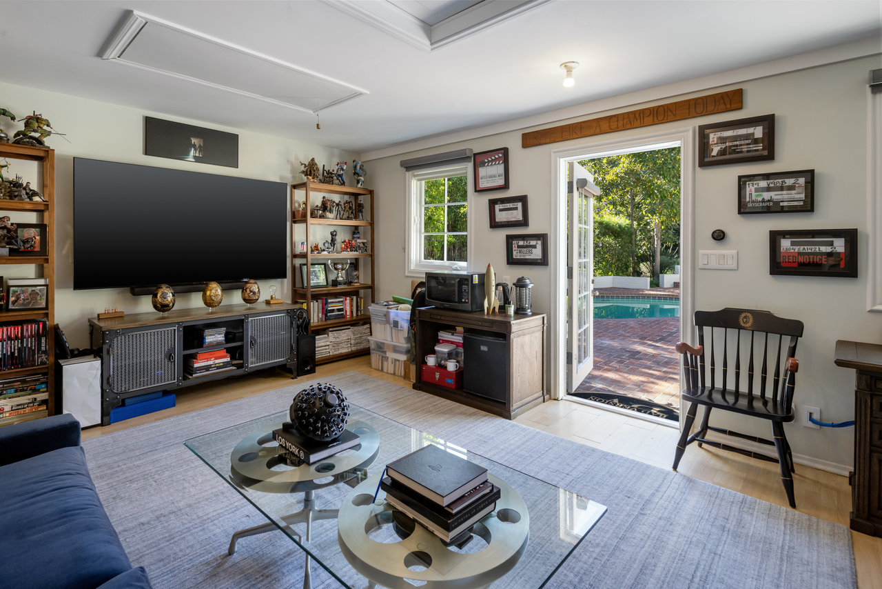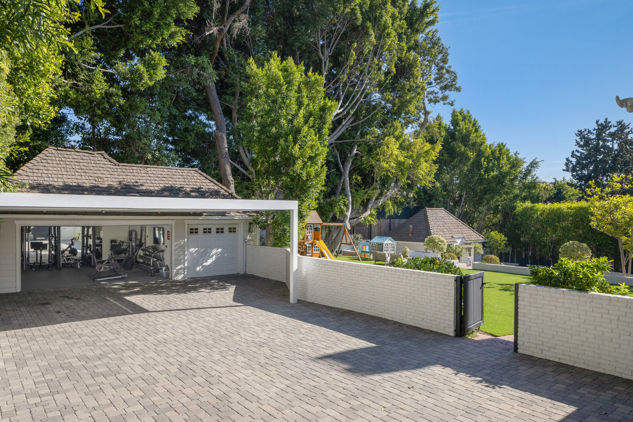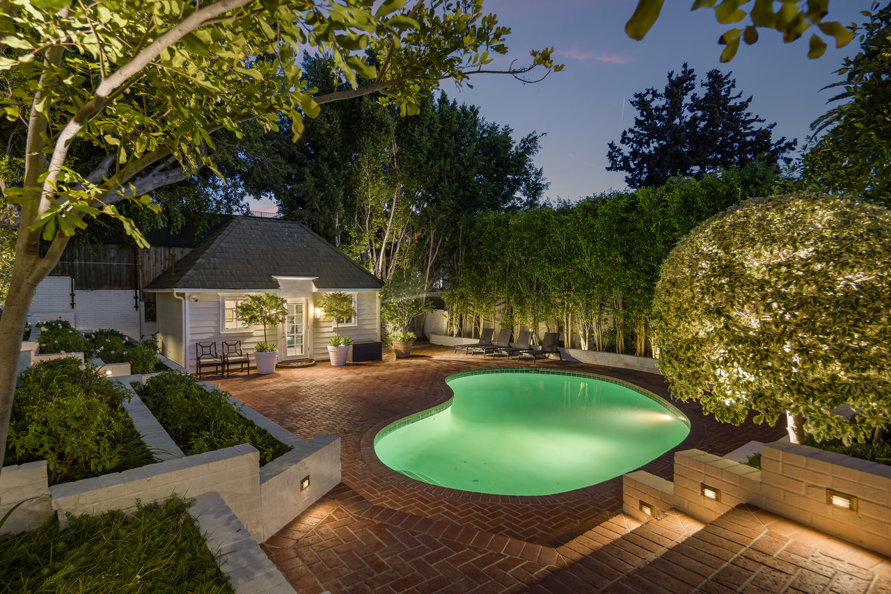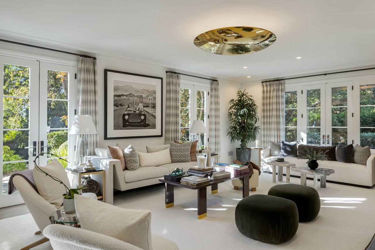 The private grounds are equally stunning, with manicured lawns, a sun-drenched pool, a guest/pool house, a three-car garage, and a large motor court. This historic estate offers the perfect balance of Hollywood nostalgia and contemporary elegance, making it a one-of-a-kind retreat.