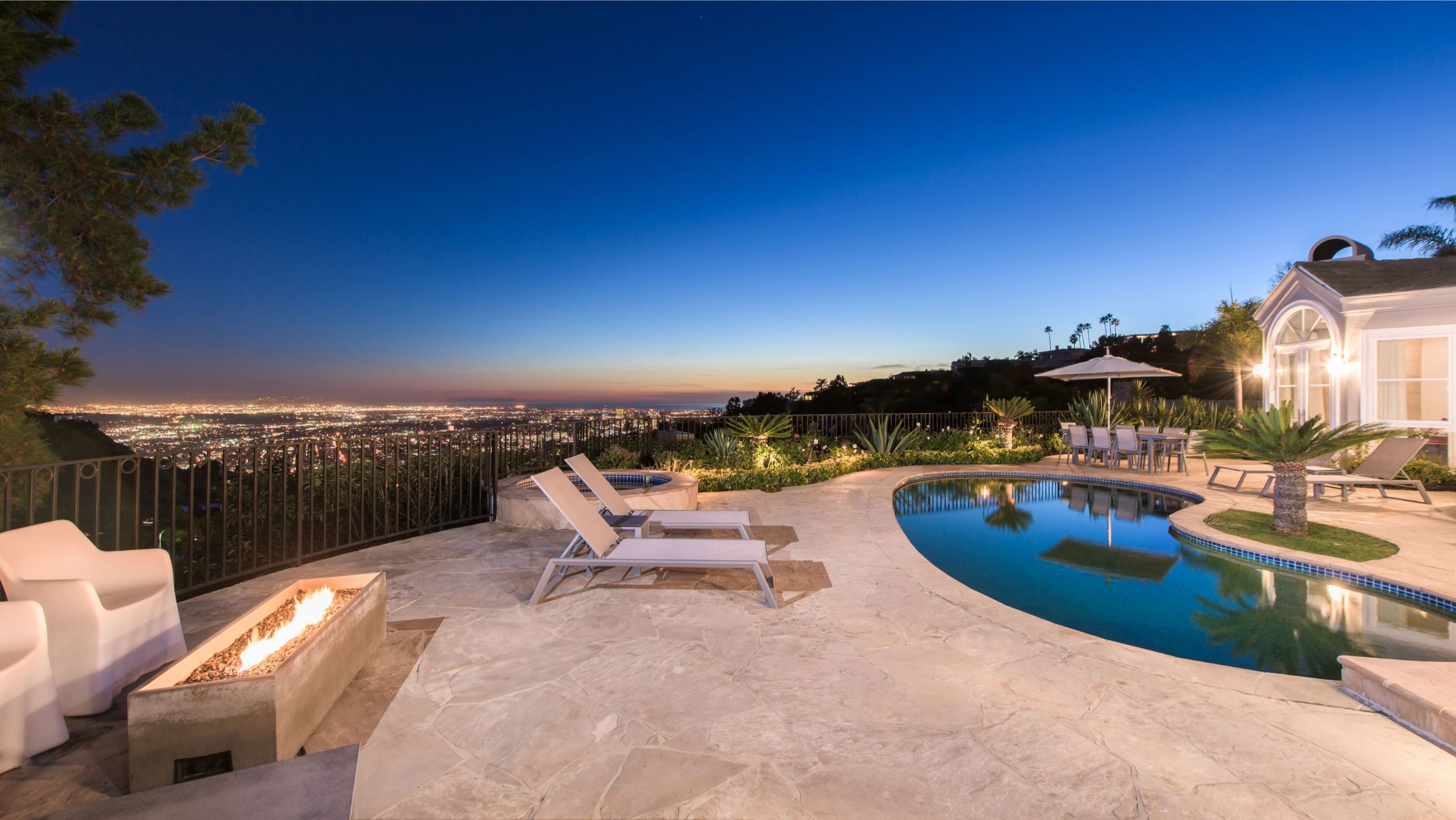 string(995) "Set proudly on one of the premiere streets in Doheny Estates, this distinguished villa designed by Richard Landry showcases one of the most impressive city to ocean VIEWS imaginable boasting effortless indoor/outdoor flow from almost every rm. Enter through a massive light filled formal foyer to this gorgeous 4bd+5ba single story home w/ ~4,600sf of living space where European sophistication &contemporary Californian style converge. Entertainer's dream ft 12ft soaring ceilings, oversized formal LR which doubles as home theater w/120" drop down projector screen & auto black out blinds situated next to formal DR. Gourmet Chef's kitchen w/top of the line appls w/butler's pantry connecting to FR & sep bkfst rm. All French doors lead to ultra private outdoor pavilion w/pool &spa &expansive city views. A sprawling master suite comprises an entire wing complete w/luxurious his &hers dressing rms &wonderfully appointed ba overlooking lush yard &french doors opening to pool &stunning view."