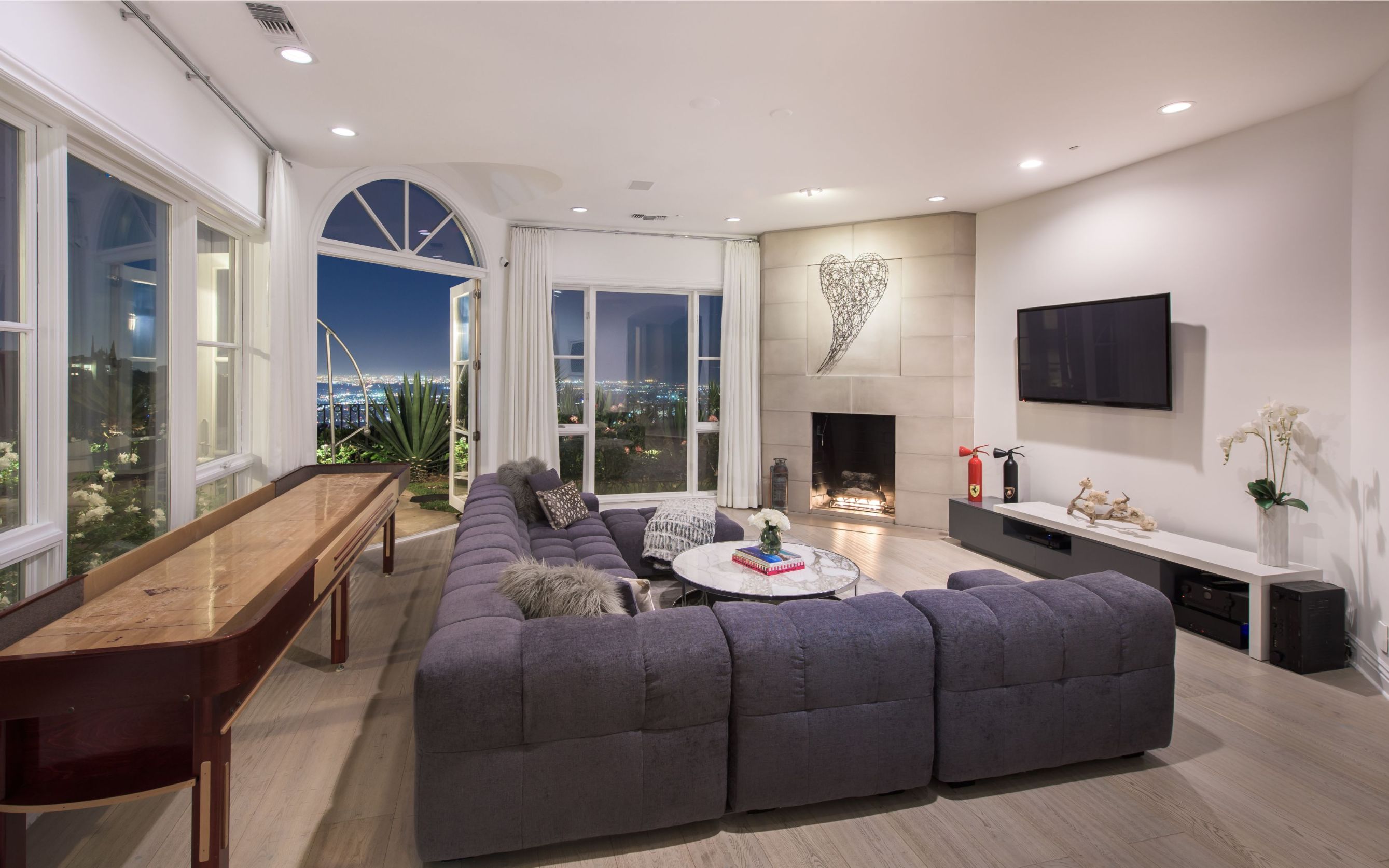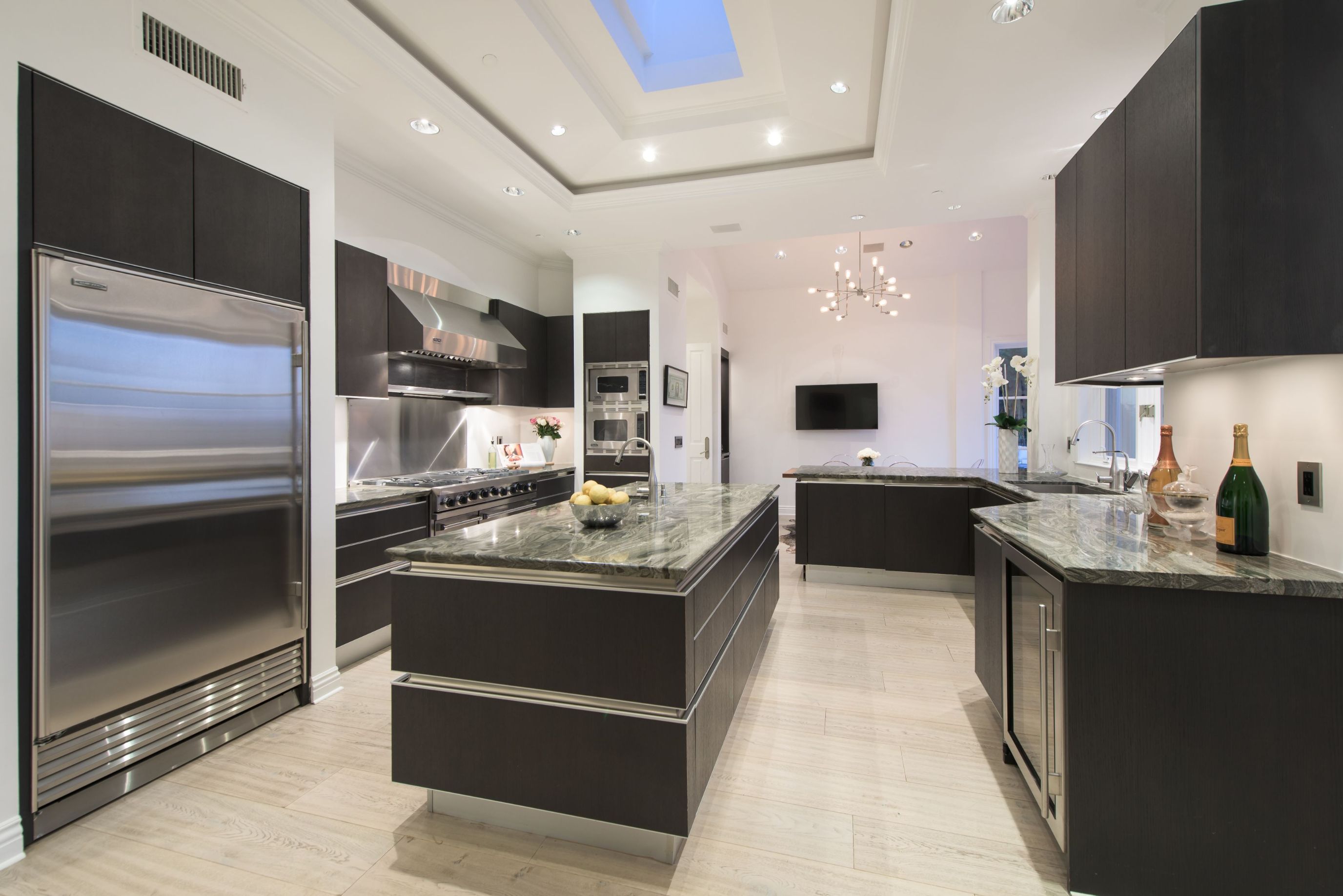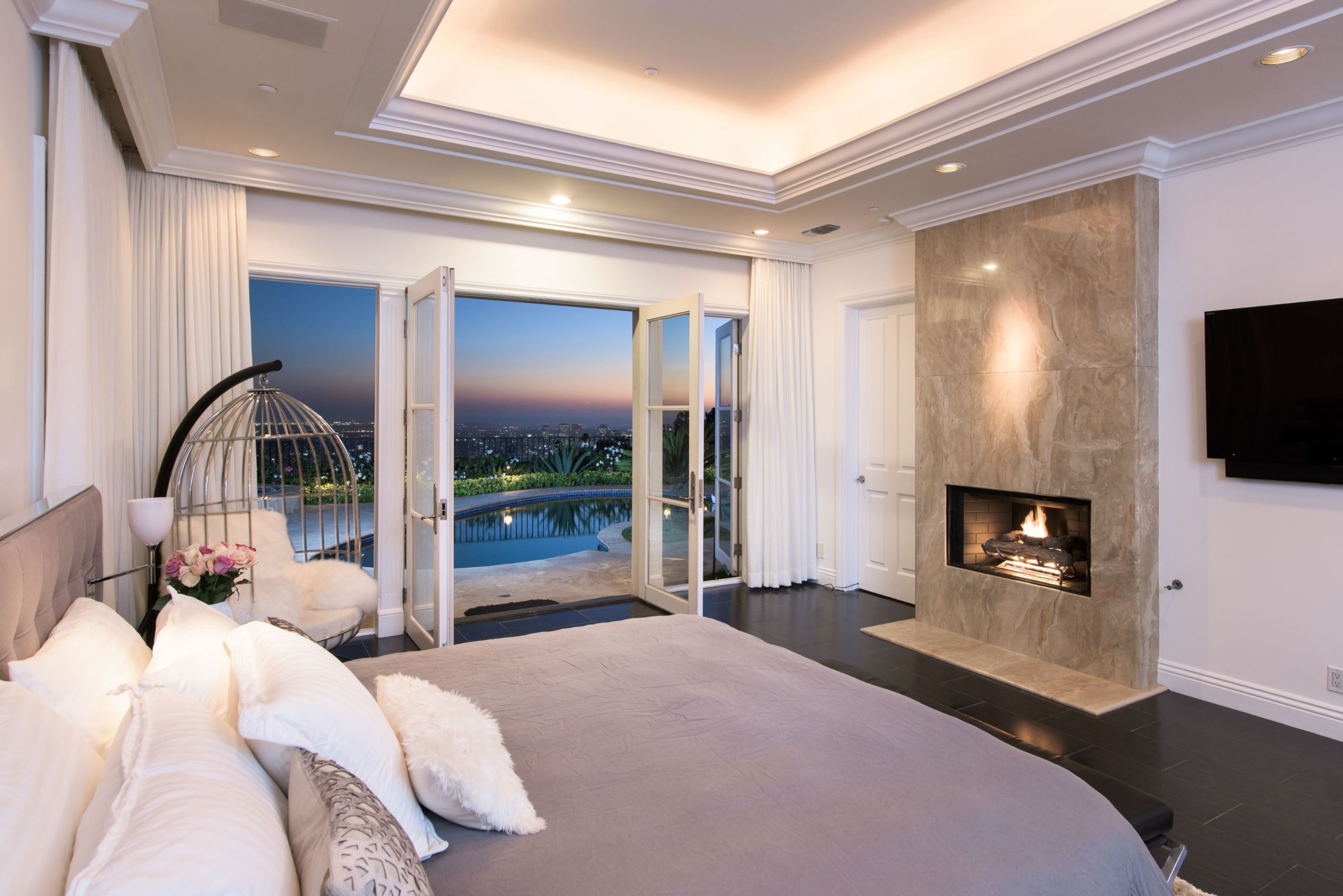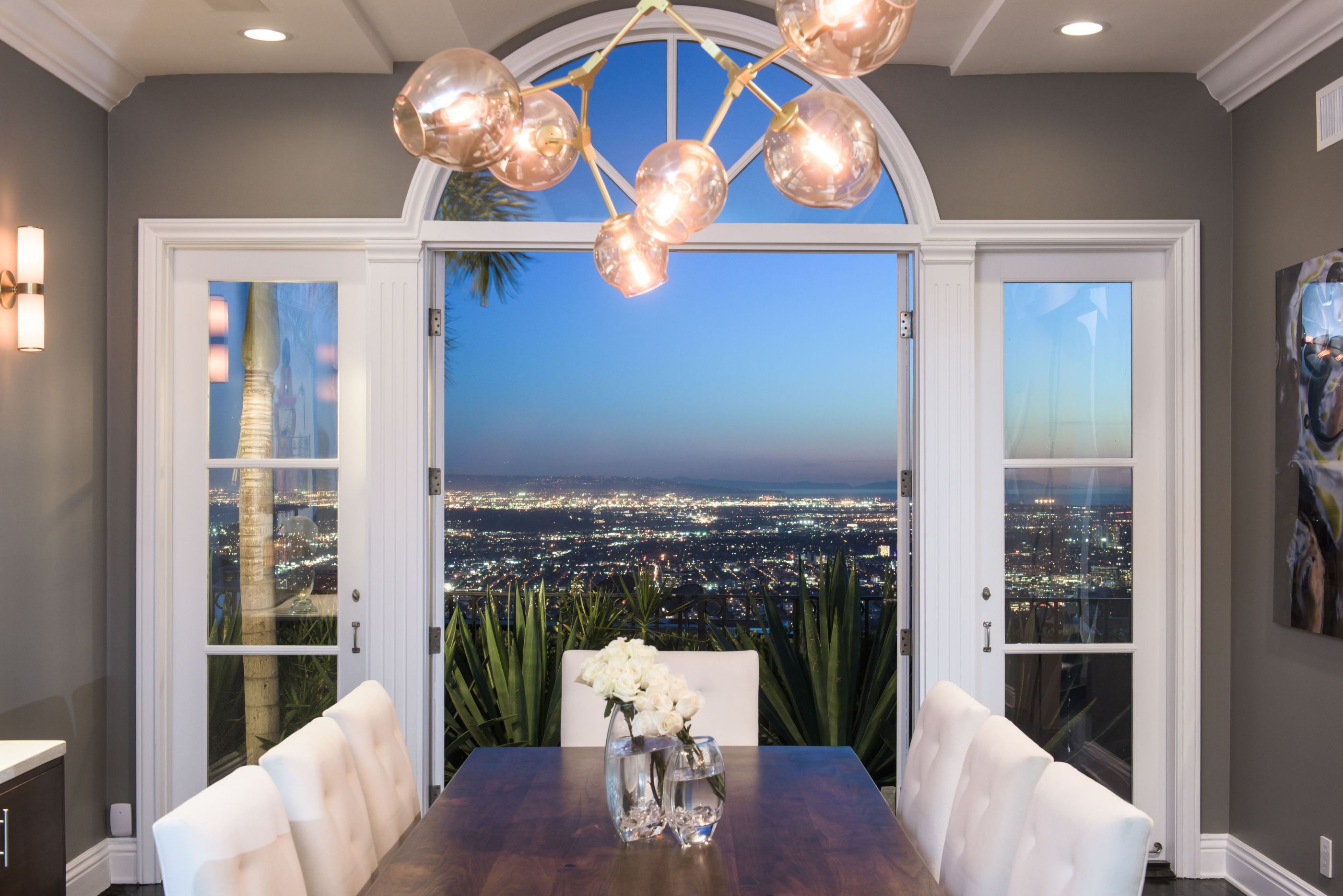 Set proudly on one of the premiere streets in Doheny Estates, this distinguished villa designed by Richard Landry showcases one of the most impressive city to ocean VIEWS imaginable boasting effortless indoor/outdoor flow from almost every rm. Enter through a massive light filled formal foyer to this gorgeous 4bd+5ba single story home w/ ~4,600sf of living space where European sophistication &contemporary Californian style converge. Entertainer's dream ft 12ft soaring ceilings, oversized formal LR which doubles as home theater w/120" drop down projector screen & auto black out blinds situated next to formal DR. Gourmet Chef's kitchen w/top of the line appls w/butler's pantry connecting to FR & sep bkfst rm. All French doors lead to ultra private outdoor pavilion w/pool &spa &expansive city views. A sprawling master suite comprises an entire wing complete w/luxurious his &hers dressing rms &wonderfully appointed ba overlooking lush yard &french doors opening to pool &stunning view.