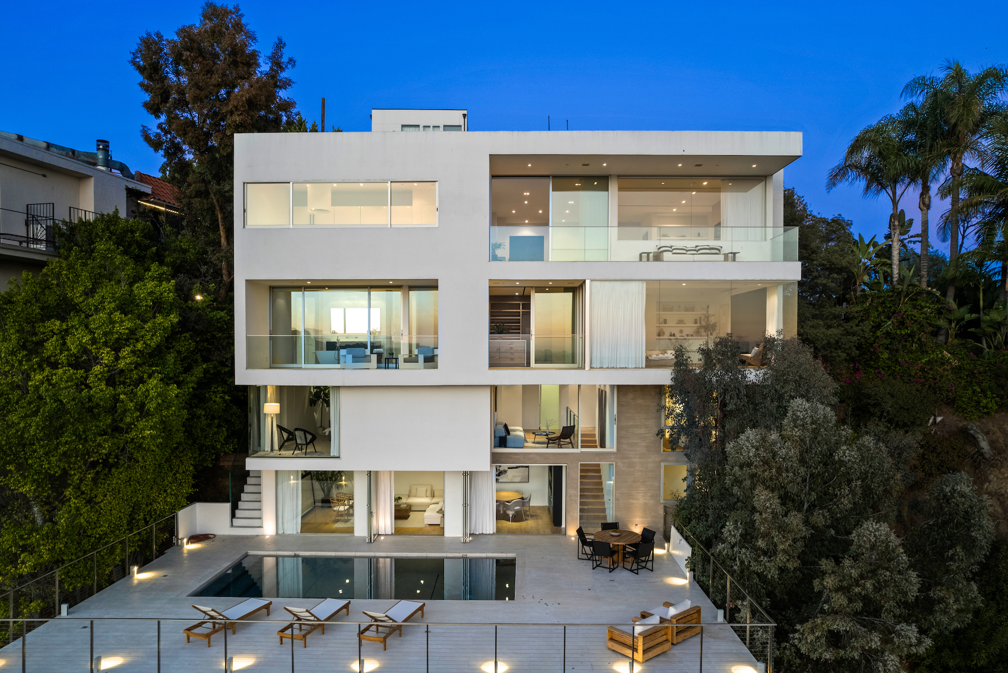 Fully remodeled Modern-Contemporary home situated in Hollywood Hills with unobstructed, panoramic city views throughout! No expense was spared in the four level, 5 bedroom and 8-bathroom masterpiece. Showcasing 5,063sf of European style, the home boasts soaring 18ft ceilings in the living room with a stunning fireplace and includes a gourmet chef's kitchen with bespoke custom flat-panel white cabinets, top-of-the-line Miele and Wolf appliances and island seating. The gorgeous primary suite includes floor to ceiling glass windows illuminating the city view, a fireplace, built-in shelving, and a spa-like bathroom with sunken tub, attached deck, and a showroom style walk-in closet. This fully customized home also boasts Surround/In wall sound system, Dom-Vision Home Automation, In-Wall iPads, Electronic Shades and other smart home features. Not to be overlooked, also included is a gym/yoga studio, sauna, steam shower, and a spacious outdoor pool/lounge with an over-sized deck that is perfect for entertaining! Hollywood Hills at its finest with a one-of-a-kind view!
