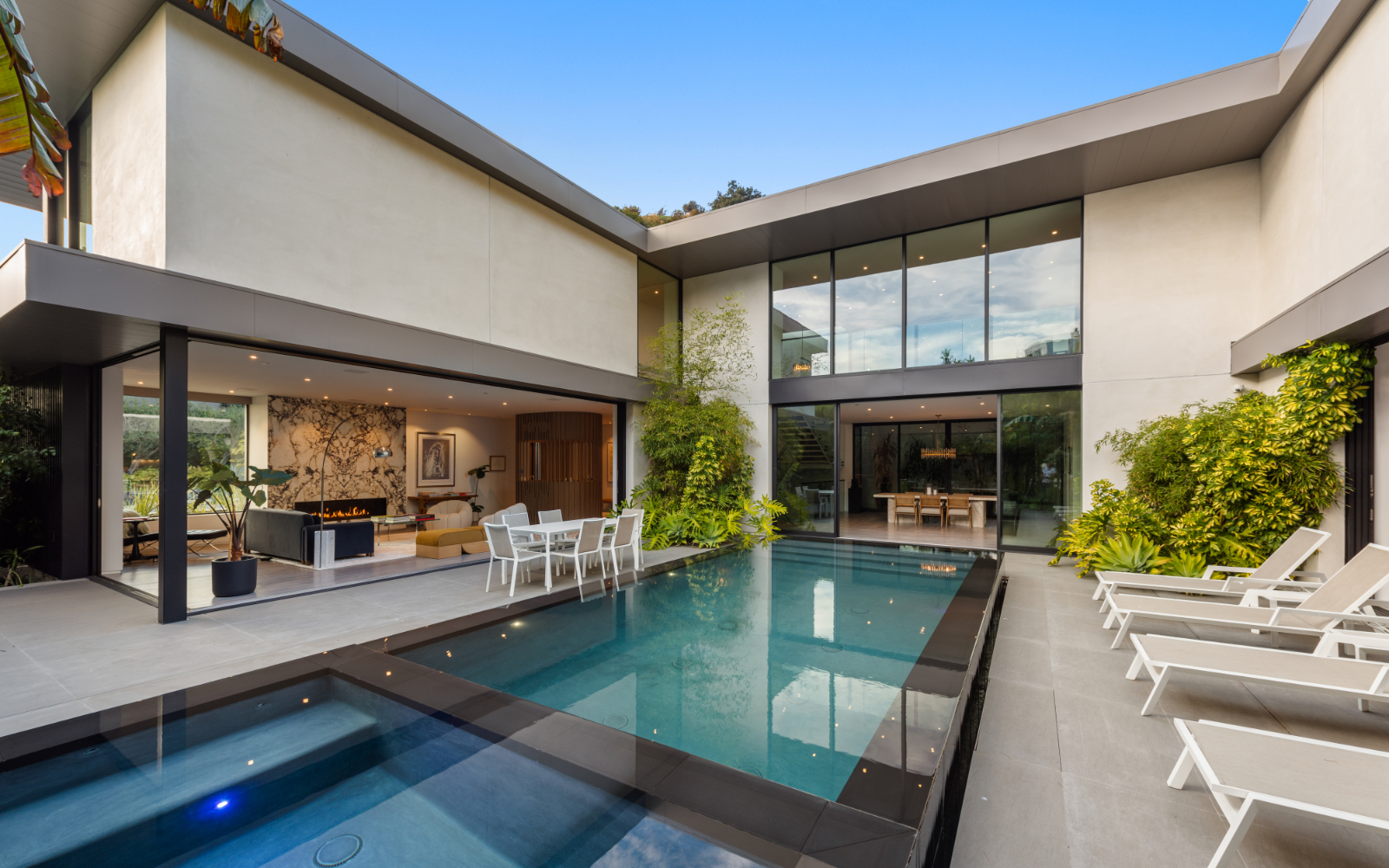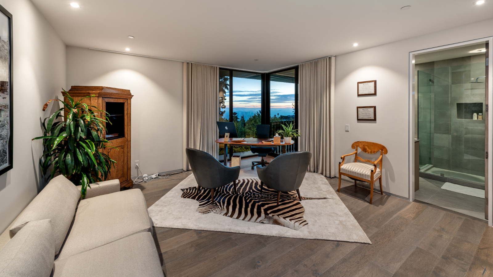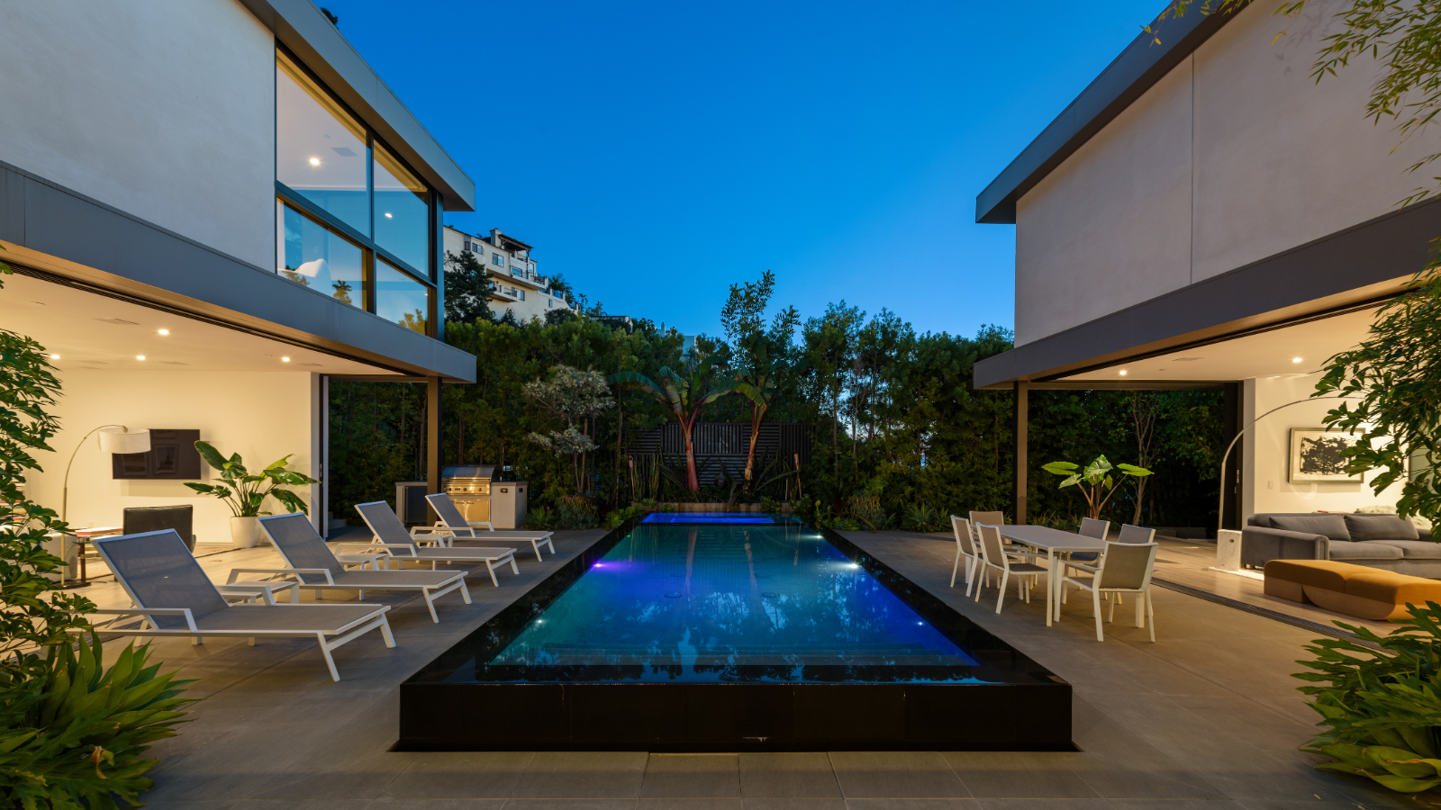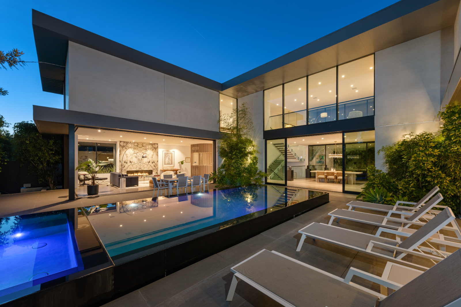 Exceptional opportunity to possess a contemporary masterpiece nestled in the prestigious Bird Streets of the Hollywood Hills. Situated at the top of the Doheny Estates, this architectural gem boasts 5 bedrooms and 8 bathrooms spread across ~7,800 square feet, commanding panoramic views of the Los Angeles skyline. The main floor is a symphony of design, featuring a bespoke zero-edge pool, outdoor living spaces embraced by floor-to-ceiling glass sliding doors, seamlessly melding the indoor and outdoor realms. Perfect for entertaining, the formal living and dining areas, complemented by a custom bar and glass wine vault, create an inviting ambiance. The kitchen effortlessly connects to an expansive family room, fostering an open and airy atmosphere. Ascending to the upper level, the Primary Suite exudes grace, offering a private retreat with a massage room, dual walk-in closets, and a personal outdoor sanctuary that capitalizes on the home's breathtaking views. Four additional ensuite bedrooms and a second living room complete the upper floor, ensuring luxurious accommodations for all. This residence goes beyond the ordinary with added features like a media room, fitness area, cutting-edge surround sound system, integrated smart home technology, and intricate designer touches that elevate it to the pinnacle of luxury. This distinguished Doheny Estates property represents an extraordinary value, providing both seclusion and convenient access to the Sunset Strip, West Hollywood, and Beverly Hills. Immerse yourself in the epitome of upscale living with this rare and unparalleled offering.