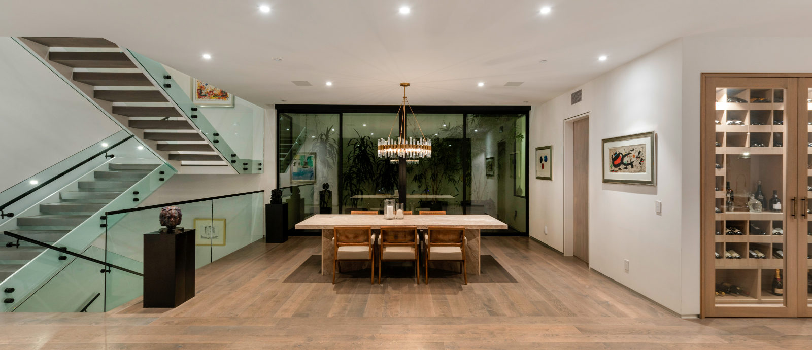 string(1609) "Exceptional opportunity to possess a contemporary masterpiece nestled in the prestigious Bird Streets of the Hollywood Hills. Situated at the top of the Doheny Estates, this architectural gem boasts 5 bedrooms and 8 bathrooms spread across ~7,800 square feet, commanding panoramic views of the Los Angeles skyline. The main floor is a symphony of design, featuring a bespoke zero-edge pool, outdoor living spaces embraced by floor-to-ceiling glass sliding doors, seamlessly melding the indoor and outdoor realms. Perfect for entertaining, the formal living and dining areas, complemented by a custom bar and glass wine vault, create an inviting ambiance. The kitchen effortlessly connects to an expansive family room, fostering an open and airy atmosphere. Ascending to the upper level, the Primary Suite exudes grace, offering a private retreat with a massage room, dual walk-in closets, and a personal outdoor sanctuary that capitalizes on the home's breathtaking views. Four additional ensuite bedrooms and a second living room complete the upper floor, ensuring luxurious accommodations for all. This residence goes beyond the ordinary with added features like a media room, fitness area, cutting-edge surround sound system, integrated smart home technology, and intricate designer touches that elevate it to the pinnacle of luxury. This distinguished Doheny Estates property represents an extraordinary value, providing both seclusion and convenient access to the Sunset Strip, West Hollywood, and Beverly Hills. Immerse yourself in the epitome of upscale living with this rare and unparalleled offering."