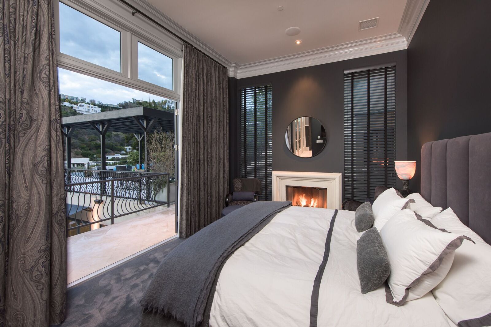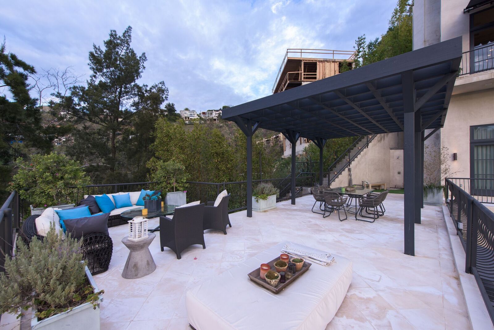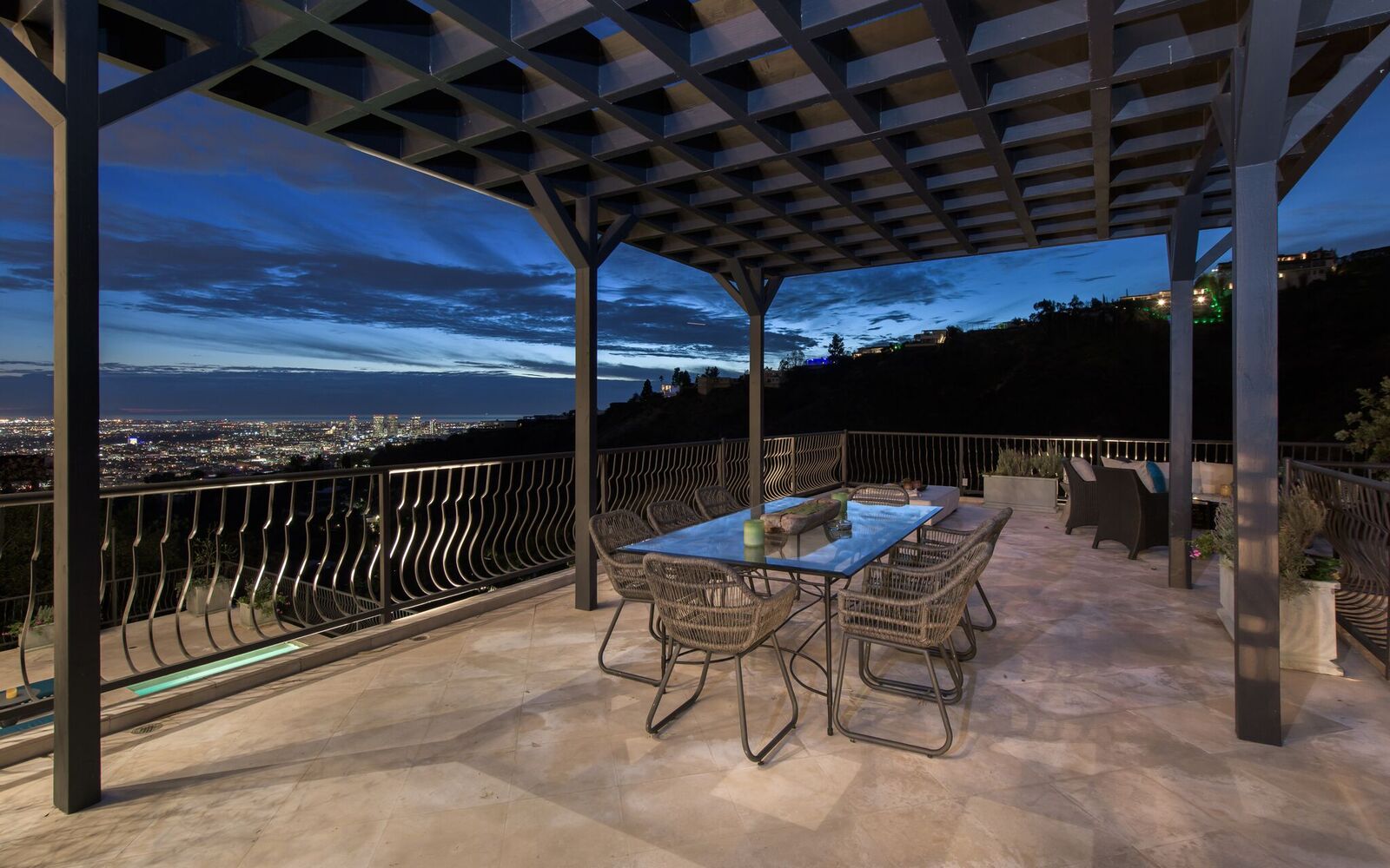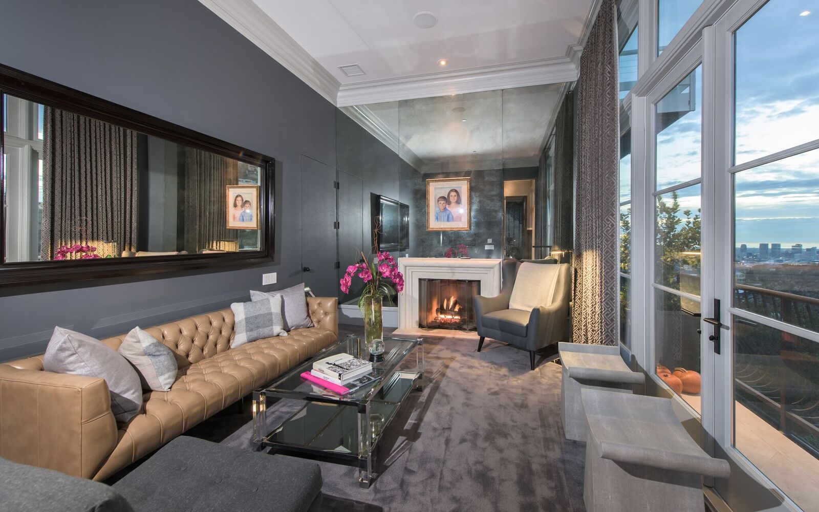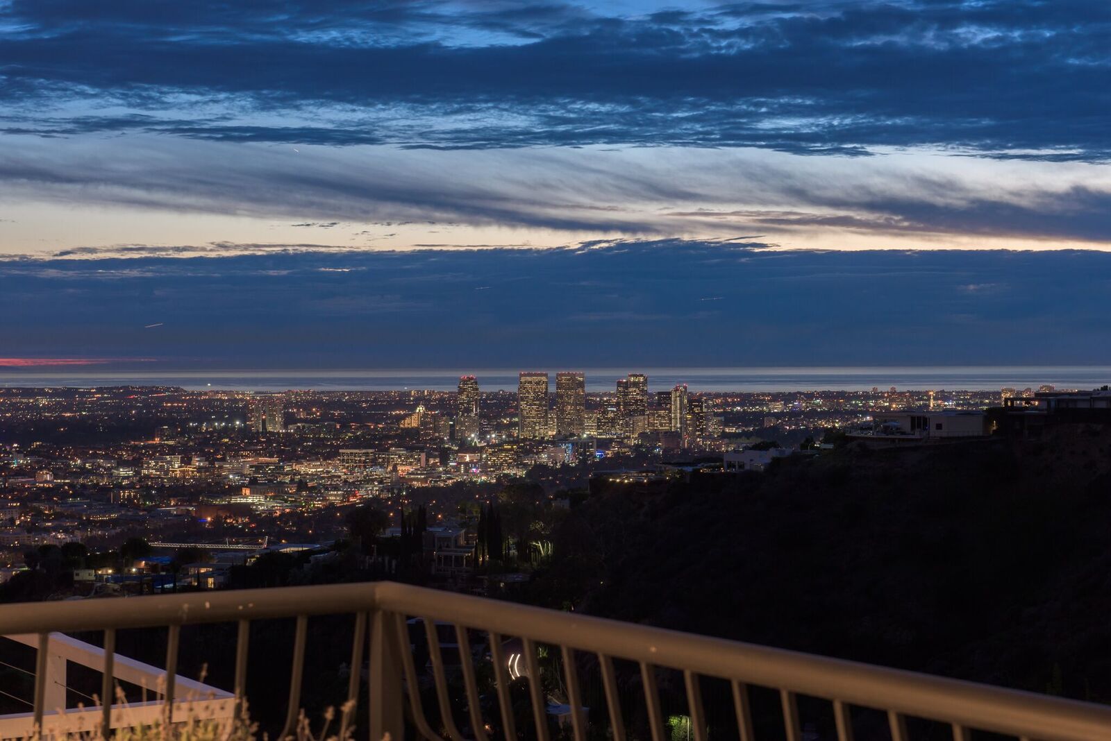 Iconic contemporary villa. Built with steel support construction and grand floor-to-ceiling windows that perfectly frame ocean, canyon and city views. An architectural trophy, its soaring volume of space, sunlight and double height ceilings surround a beautifully designed and extremely high quality interior. Master retreat is fit for royalty with cozy fireplace, top-of-the-line closets, luxurious stone baths with chrome accents, triple thick moldings and french doors leading you to views that remind you why Sunset Plaza is the most sought after are to live in. You can rest assured guests will feel welcome as each bedroom suite is outfitted with a spacious full bath, fireplace, ample closet space and terrace with views and a guest house complete with full kitchen, bath, and additional laundry. Party the night away on your huge outdoor terrace and lounge overlooking the pool, spa, and city you call home. Gourmet kitchen is outfitted with elite appliances, butler's pantry and leads to exquisite dining room, sophisticated living room, and media enclave. Nothing is visible from the street curb but a discreet entry and 4-car garage with direct access into the home.