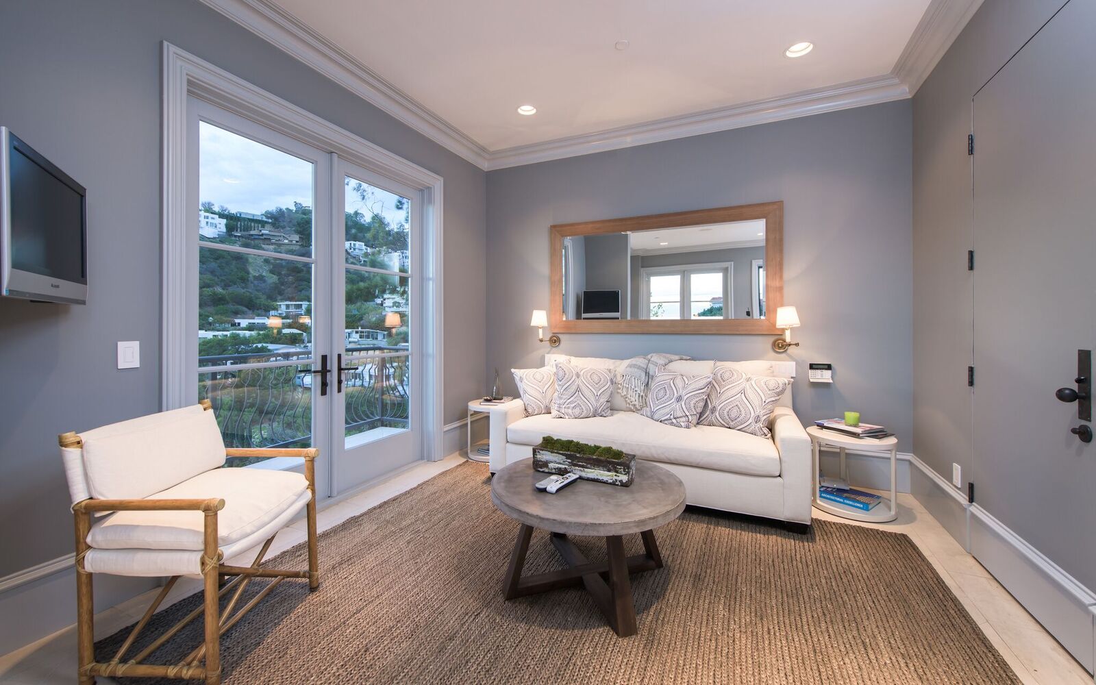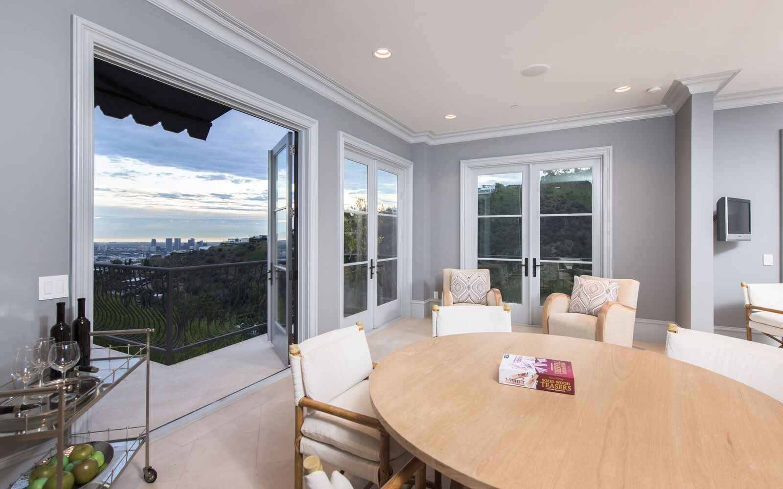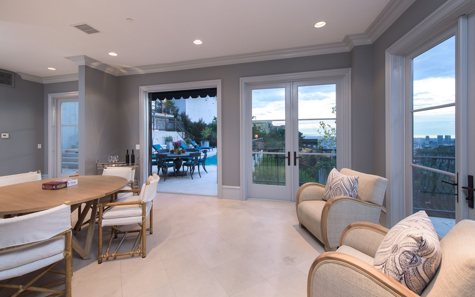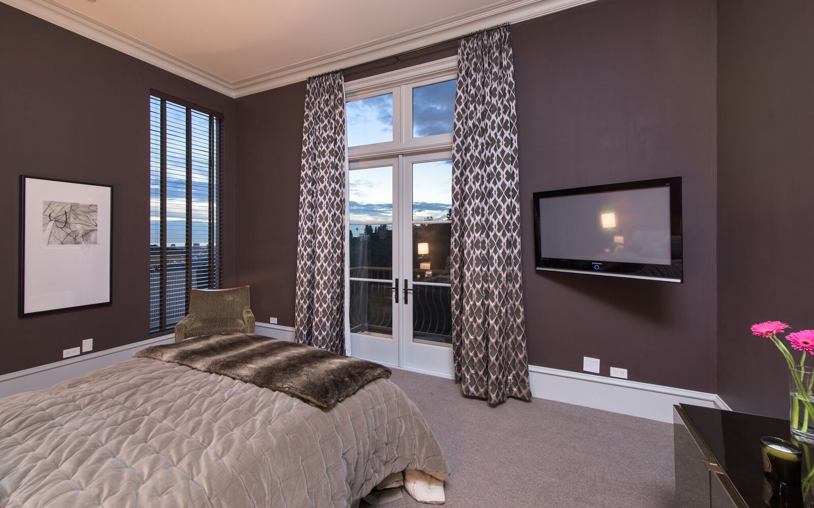 Iconic contemporary villa. Built with steel support construction and grand floor-to-ceiling windows that perfectly frame ocean, canyon and city views. An architectural trophy, its soaring volume of space, sunlight and double height ceilings surround a beautifully designed and extremely high quality interior. Master retreat is fit for royalty with cozy fireplace, top-of-the-line closets, luxurious stone baths with chrome accents, triple thick moldings and french doors leading you to views that remind you why Sunset Plaza is the most sought after are to live in. You can rest assured guests will feel welcome as each bedroom suite is outfitted with a spacious full bath, fireplace, ample closet space and terrace with views and a guest house complete with full kitchen, bath, and additional laundry. Party the night away on your huge outdoor terrace and lounge overlooking the pool, spa, and city you call home. Gourmet kitchen is outfitted with elite appliances, butler's pantry and leads to exquisite dining room, sophisticated living room, and media enclave. Nothing is visible from the street curb but a discreet entry and 4-car garage with direct access into the home.
