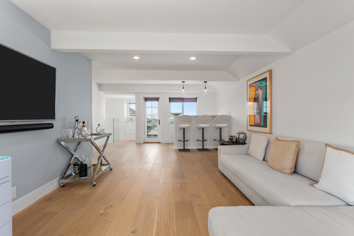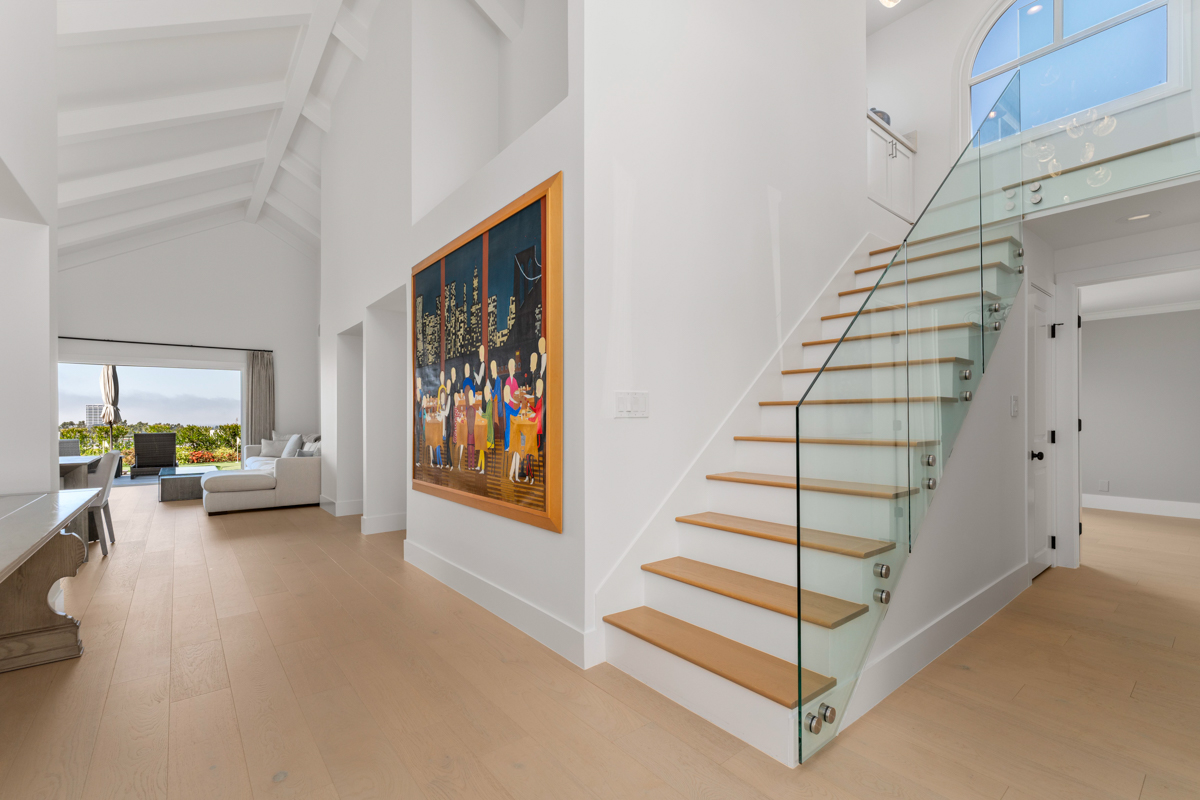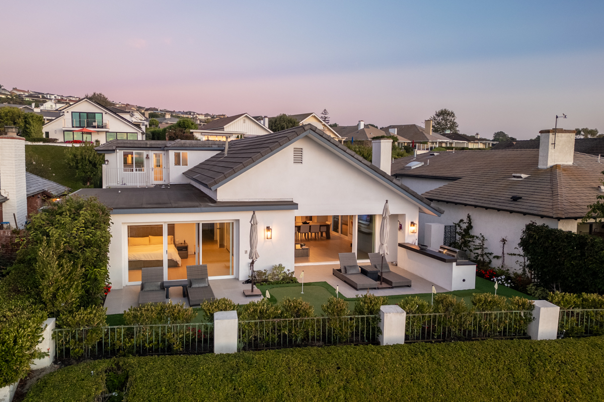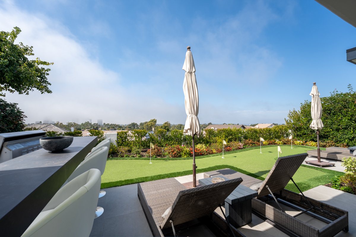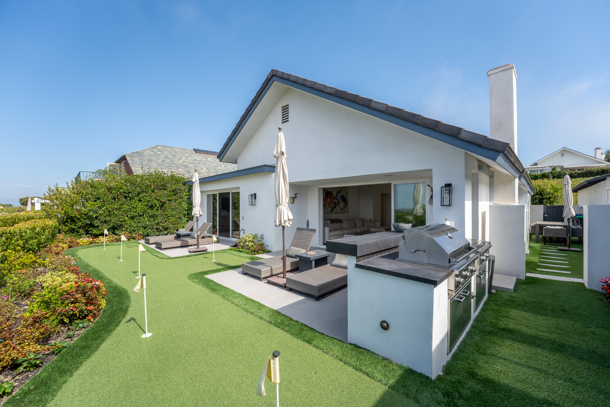 1915 Yacht Truant - Introducing a beautifully remodeled home tucked away in the exclusive, guard-gated Seaview community of Newport Beach. As you step through the charming Dutch door, you're greeted by breathtaking 180-degree panoramic views encompassing the city skyline, coastline, and mountains. Situated on a quiet cul-de-sac, this 4-bedroom, 3-bathroom home boasts a sought-after open-concept design that seamlessly connects the living room, dining area, and kitchen. Bathed in natural light, the living room features soaring double-height vaulted ceilings that flow to the outdoors where you'll find a newly installed putting green, built-in BBQ, and lush, freshly landscaped groundsan entertainer's paradise. The stunning kitchen showcases abundant cabinetry, quartz countertops, an elegant glass tile backsplash, a spacious utility sink, top-of-the-line appliances, and a cozy dining nook. Designed for single-story living, the primary suite and main living areas, along with two additional bedrooms, are all conveniently situated on the ground floor. Upstairs, you'll find a versatile bonus room with a wet bar, deck with views, and an additional bedroom, offering a perfect retreat or guest space. The primary suite offers stunning views and direct access to the backyard, featuring generous closet space and a spa-inspired ensuite complete with a walk-in shower, dual vanity, and a luxurious soaking tub. Additional newly installed upgrades include oakwood flooring, central AC, a tankless water heater, repiping, and contemporary glass railings and light fixtures throughout. Enjoy the amenities of Seaview, which include 24/7 guarded entry, pool and spa, picnic area with BBQs, and two tennis courts. Conveniently located near Fashion Island, Newport Center, and the shopping and dining of Lido Isle and Corona Del Mar this home truly offers the best of Newport Beach living!