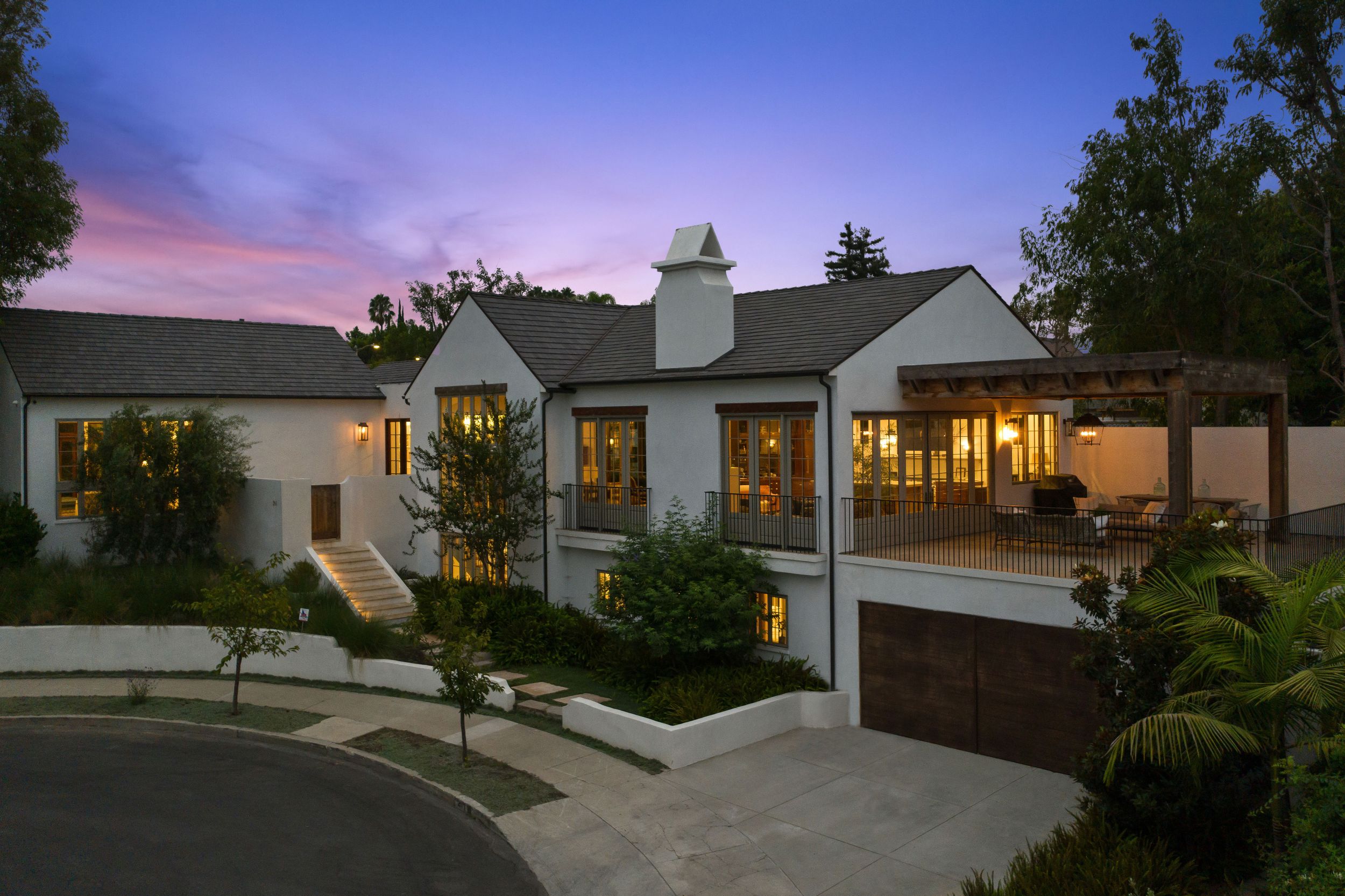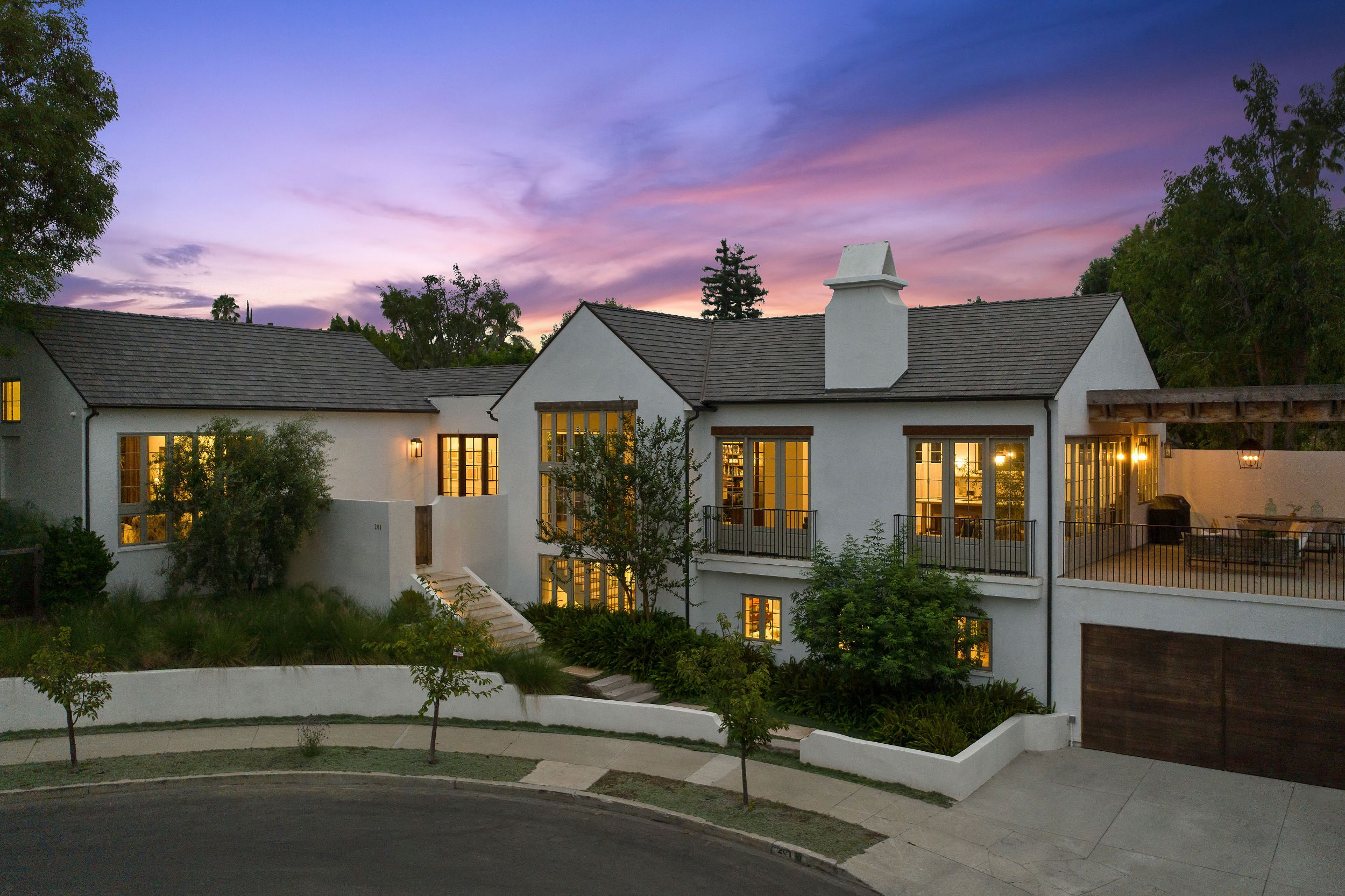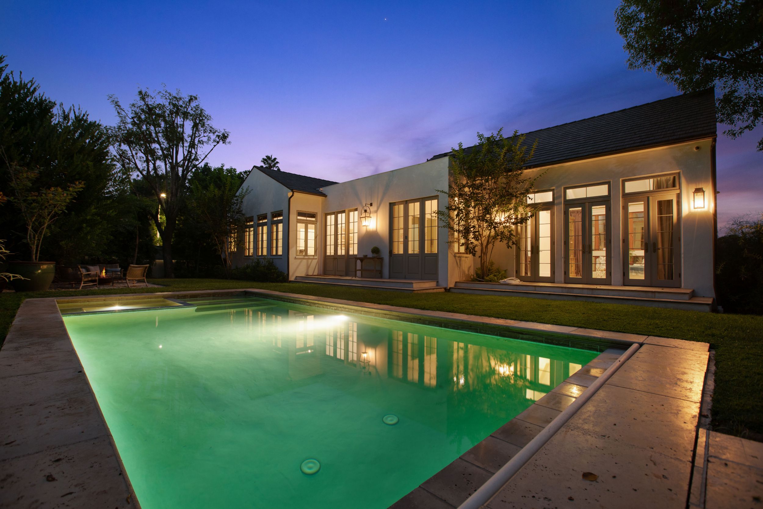 At the end of a quiet cul-de-sac, a stunning architectural home overlooking the rolling greens of the Wilshire Country Club. The result of a meticulous 2017 ground-up renovation/expansion by the homeowner, everything about this dream property was lovingly made to measure, with no expense or detail spared. An open floorplan with magnificent windows, cathedral ceilings, and French white oak floors throughout. Includes gourmet kitchen with adjacent family rm plus large dining rm -- all flowing out to a huge patio with panoramas of the golf course, Hollywood Hills, and dramatic sunsets. Master bed and bath is gilded on both sides by custom French windows and doors with views of garden/pool. Down the hall, are two large, beautiful en-suite bedrooms. The library opens to a courtyard. Terrace level: one bed and bath, office, tv den, laundry, lg storage, and gym space. Direct access to 639 sq. ft. attached, finished garage. Lush 1/3 acre yard features mature trees, a small orchard, and natural pool/spa.