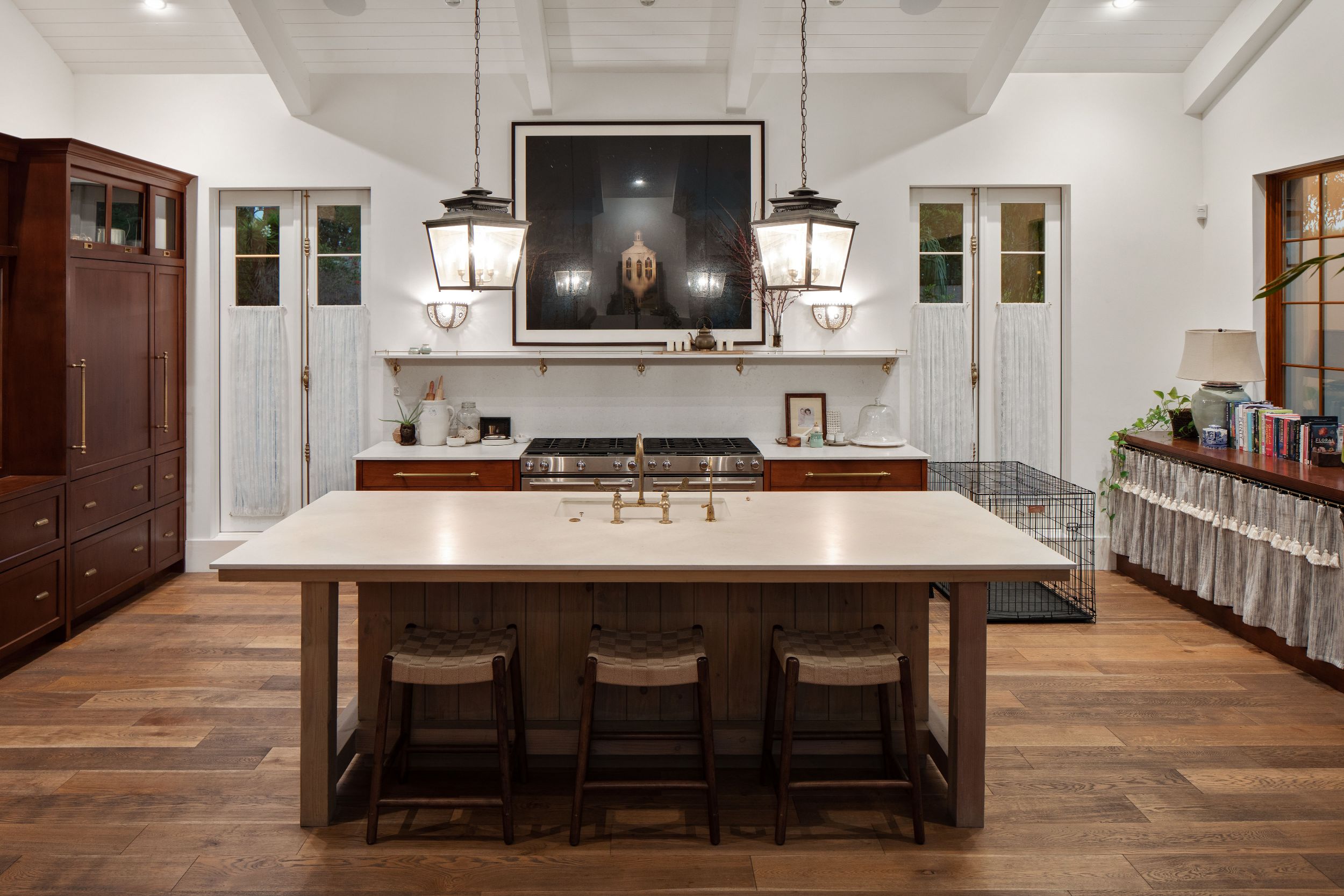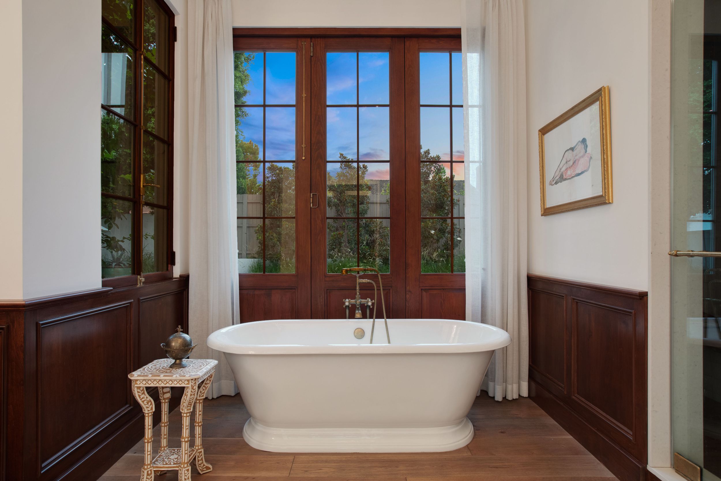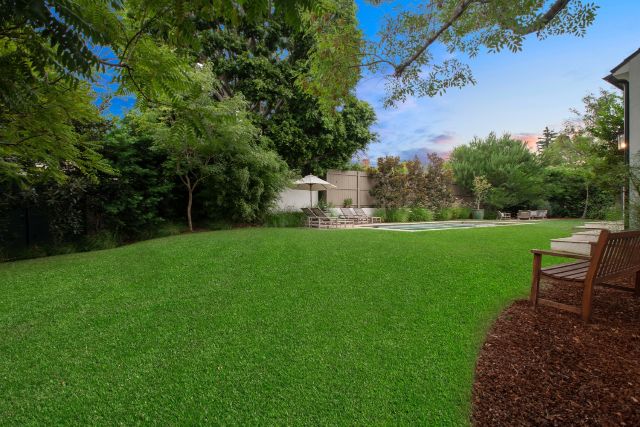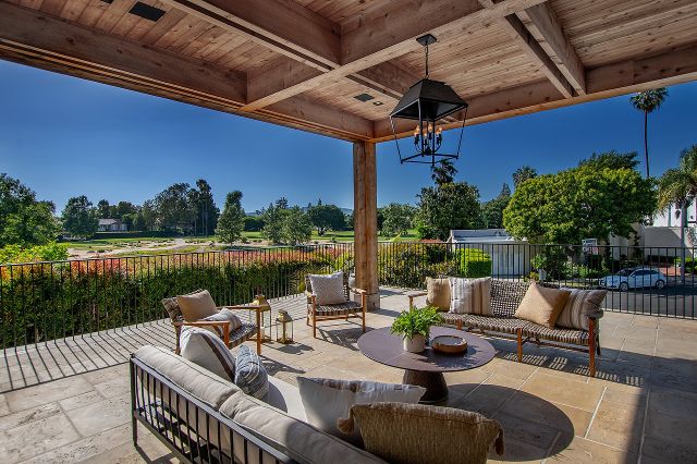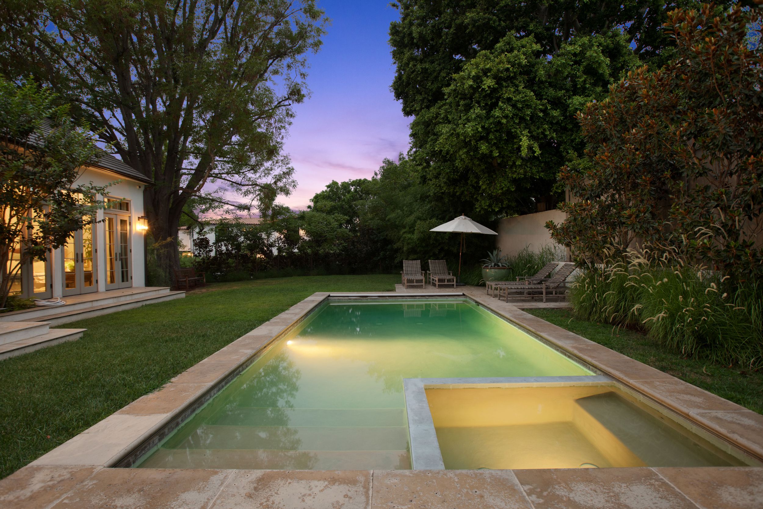 At the end of a quiet cul-de-sac, a stunning architectural home overlooking the rolling greens of the Wilshire Country Club. The result of a meticulous 2017 ground-up renovation/expansion by the homeowner, everything about this dream property was lovingly made to measure, with no expense or detail spared. An open floorplan with magnificent windows, cathedral ceilings, and French white oak floors throughout. Includes gourmet kitchen with adjacent family rm plus large dining rm -- all flowing out to a huge patio with panoramas of the golf course, Hollywood Hills, and dramatic sunsets. Master bed and bath is gilded on both sides by custom French windows and doors with views of garden/pool. Down the hall, are two large, beautiful en-suite bedrooms. The library opens to a courtyard. Terrace level: one bed and bath, office, tv den, laundry, lg storage, and gym space. Direct access to 639 sq. ft. attached, finished garage. Lush 1/3 acre yard features mature trees, a small orchard, and natural pool/spa.