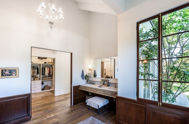 string(1010) "At the end of a quiet cul-de-sac, a stunning architectural home overlooking the rolling greens of the Wilshire Country Club. The result of a meticulous 2017 ground-up renovation/expansion by the homeowner, everything about this dream property was lovingly made to measure, with no expense or detail spared. An open floorplan with magnificent windows, cathedral ceilings, and French white oak floors throughout. Includes gourmet kitchen with adjacent family rm plus large dining rm -- all flowing out to a huge patio with panoramas of the golf course, Hollywood Hills, and dramatic sunsets. Master bed and bath is gilded on both sides by custom French windows and doors with views of garden/pool. Down the hall, are two large, beautiful en-suite bedrooms. The library opens to a courtyard. Terrace level: one bed and bath, office, tv den, laundry, lg storage, and gym space. Direct access to 639 sq. ft. attached, finished garage. Lush 1/3 acre yard features mature trees, a small orchard, and natural pool/spa."