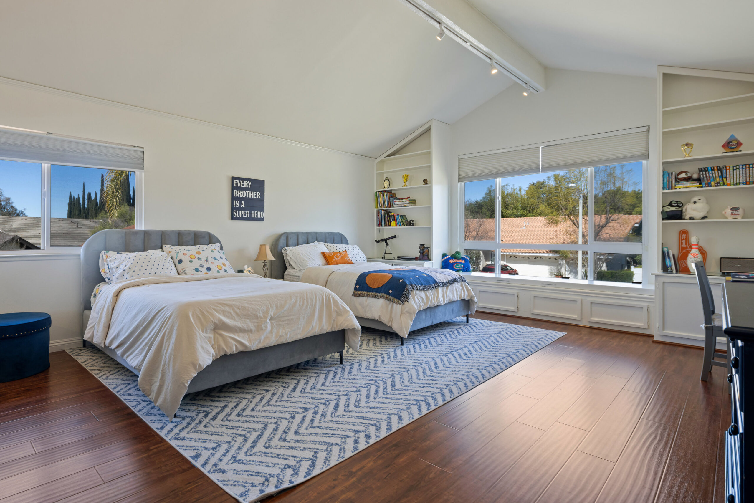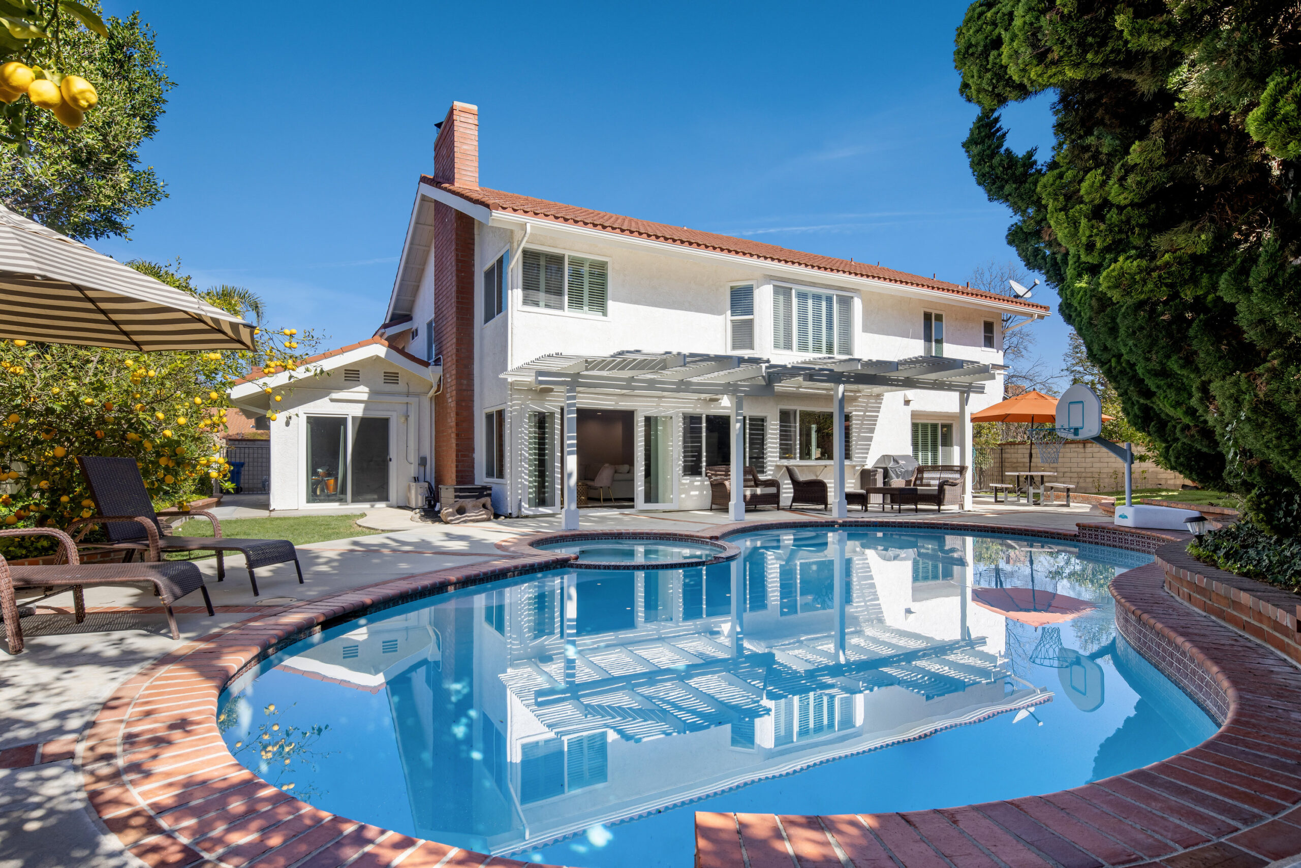 Welcome to 2156 Boe Circle, a stunning estate tucked away in a peaceful cul-de-sac, offering the perfect balance of luxury, sophistication, and privacy. Thoughtfully designed with impeccable craftsmanship, this home features open-concept living, soaring ceilings, and expansive glass walls that flood the interiors with natural light, seamlessly blending indoor and outdoor spaces. Step inside to discover a spacious living room with a striking fireplace, leading effortlessly into a gourmet kitchen equipped with top-of-the-line appliances, sleek cabinetry, and an oversized island. A dedicated dining area and inviting family room provide the ideal setting for both intimate gatherings and grand entertaining. Adding to the home's appeal is a versatile downstairs bonus room, currently a music room, offering the flexibility of an additional bedroom or office, complete with a sliding door that opens directly to the backyard. This valuable extra space makes the home one of the largest in the neighborhood for its model. Upstairs, the luxurious primary suite serves as a serene retreat, boasting a spa-like bath, a spacious walk-in closet, and elevated views. Additional guest suites offer stylish and comfortable accommodations, each designed with impeccable attention to detail. Outdoors, a resort-style backyard awaits, featuring a sparkling pool and spa, multiple lounging areas, and lush landscaping for ultimate relaxation. A covered patio extends the living space, creating the perfect setting for al fresco dining and entertaining under the stars. Located within the award-winning Conejo Valley Unified School District, this exceptional home is zoned for Westlake High School and Los Cerritos Middle School, making it an ideal choice for families seeking both luxury and top-tier education. A rare opportunity to experience modern living in a serene and highly sought-after neighborhood.