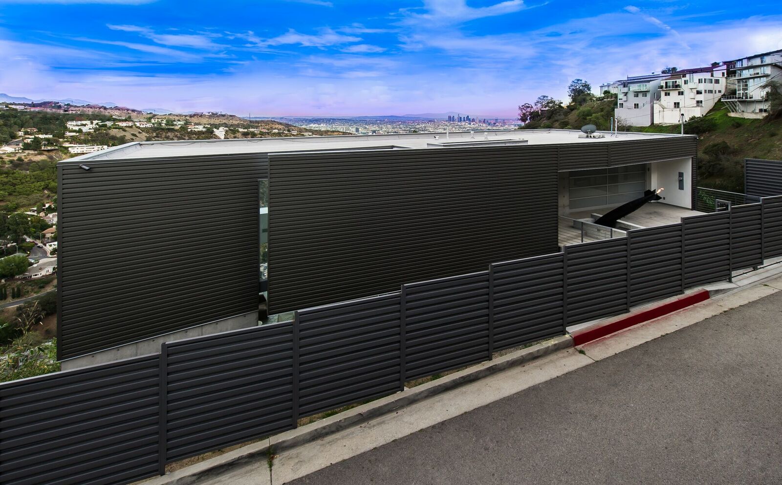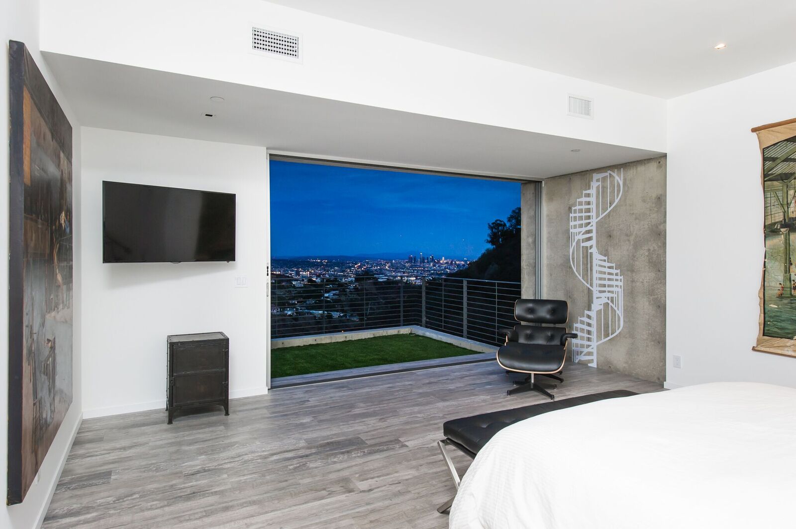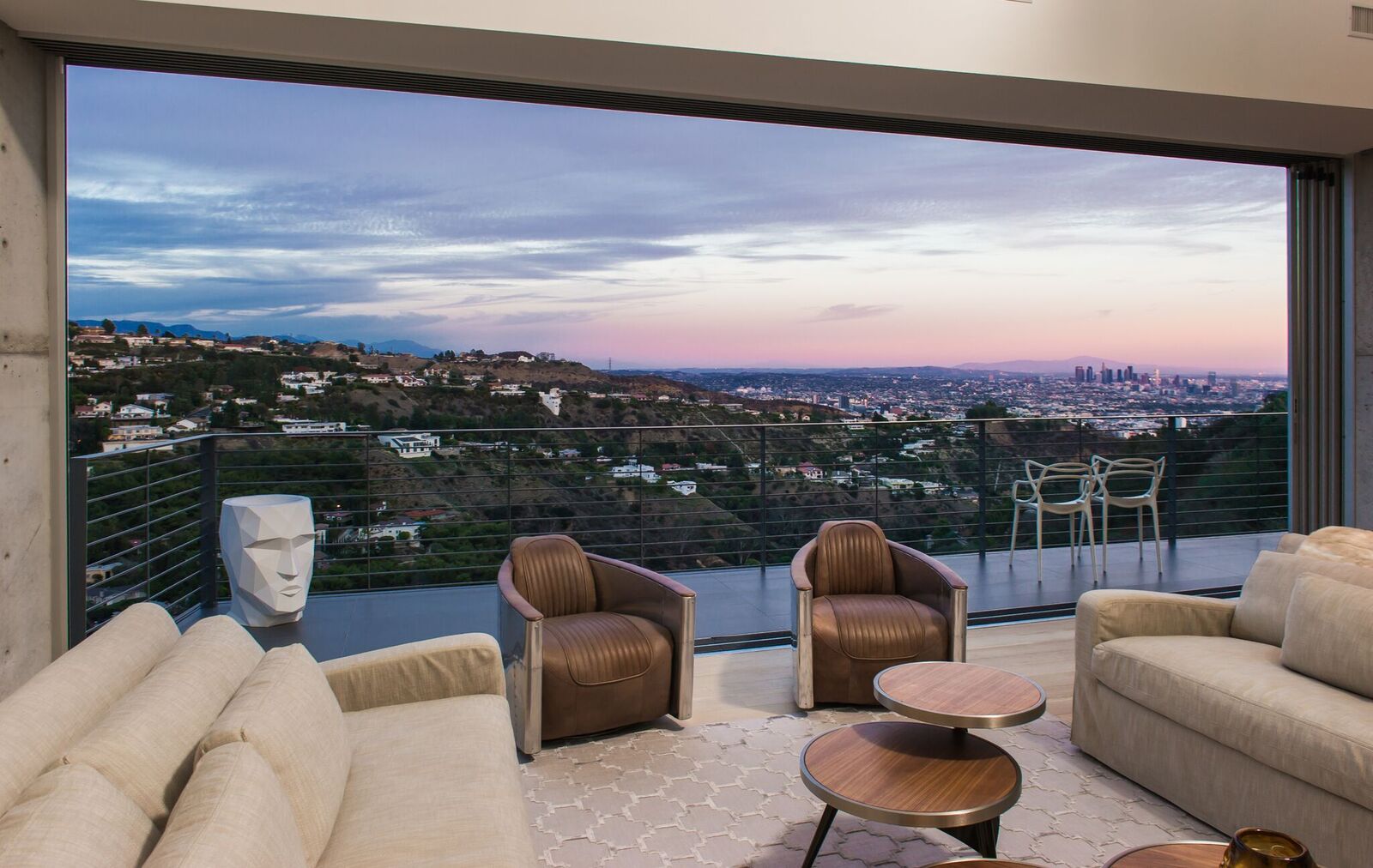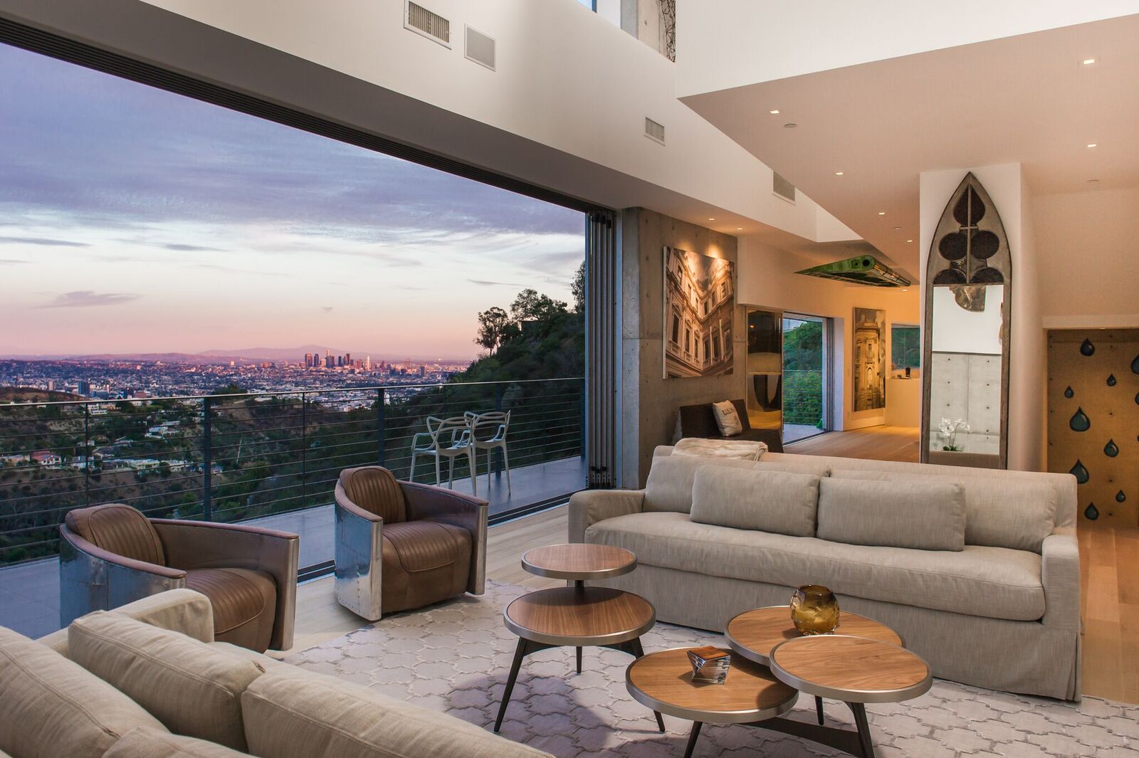180-degree unobstructed panoramic views from every room in the house. Completely private and gated compound, this is indoor-outdoor living at its finest. Approx 3,000 sq ft with 3 bed 2 1/2 bath. Fleet wood doors open walls of glass to walk out to one of the most beautiful views of the city. Custom built and designed by renowned commercial architect this home combines every aspect of modern living. Glass firewall, Viking appliances, marble, poured concrete walls, porcelanosa tiles,Caesarstone counter-tops, 20 foot ceiling, security cameras, control 4 system, over-sized garage, grass yard with room and plans for pool and hot tub.