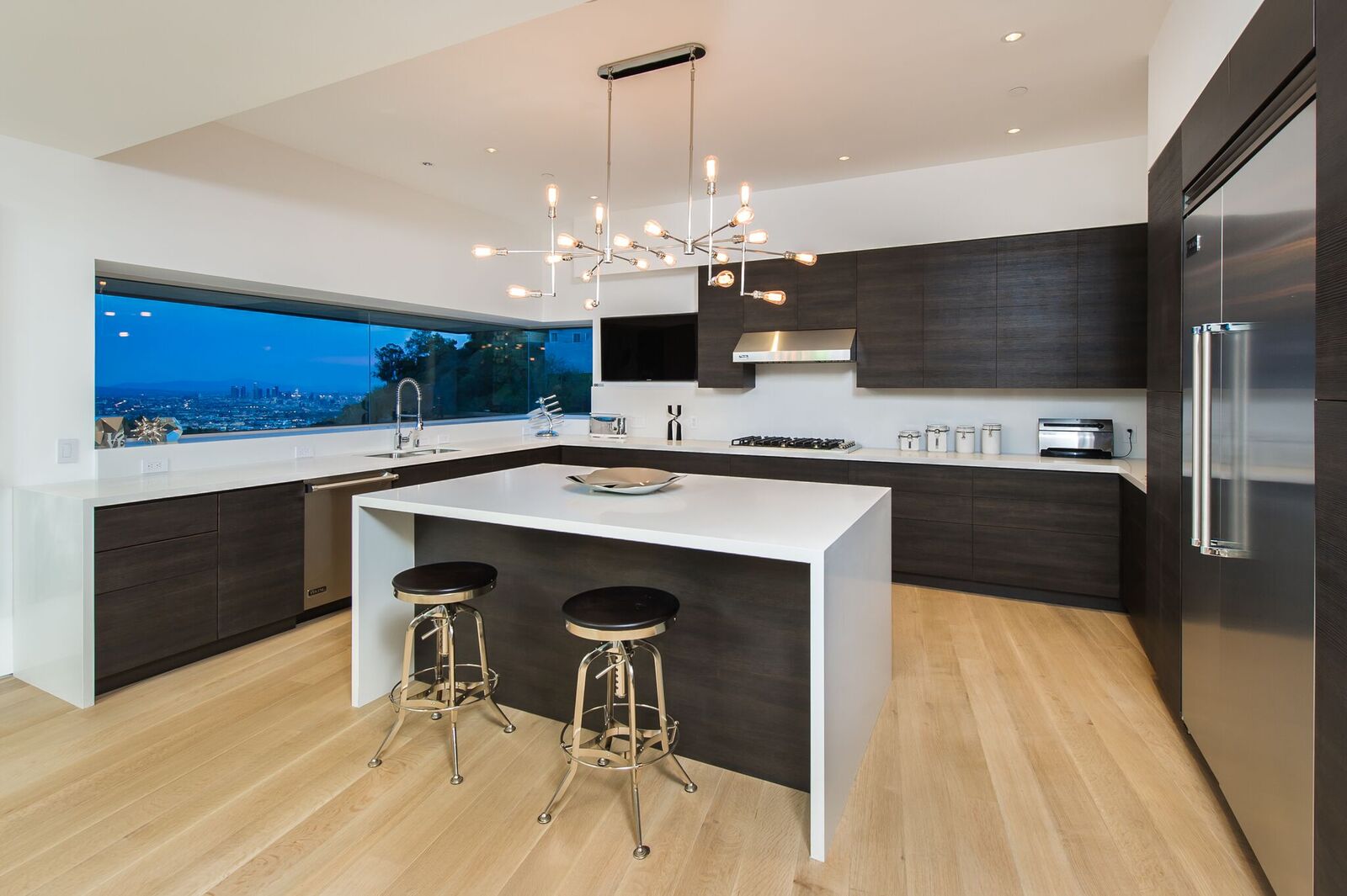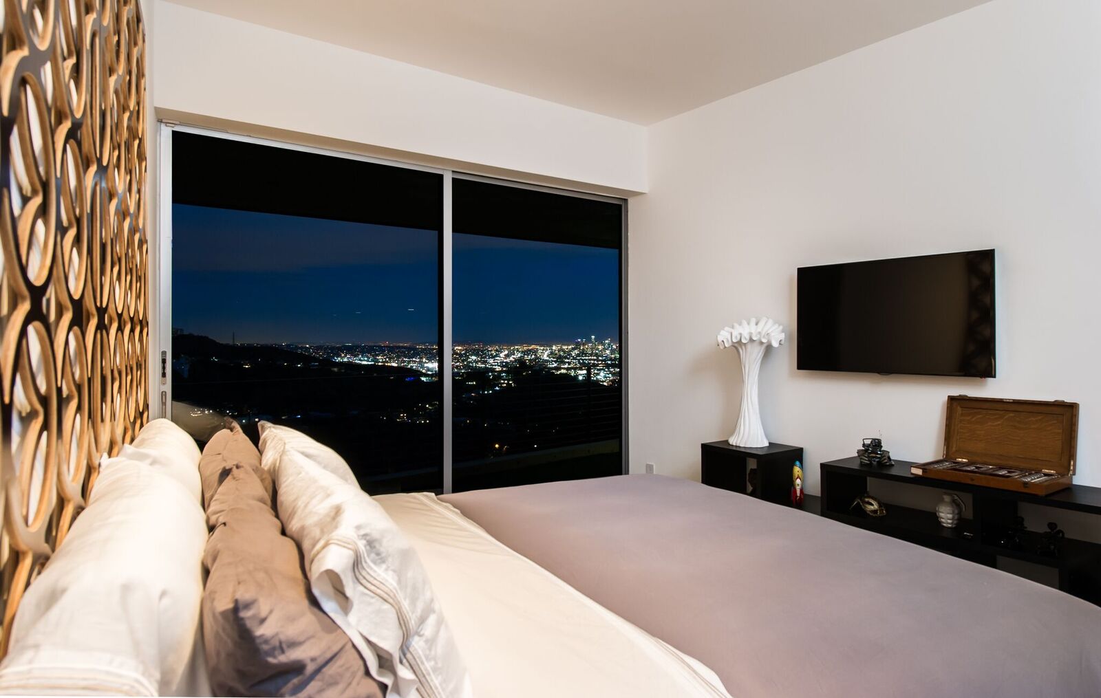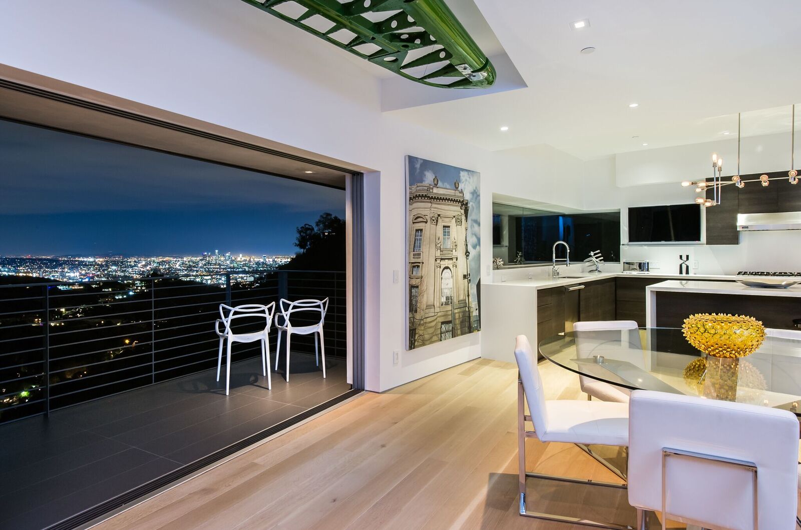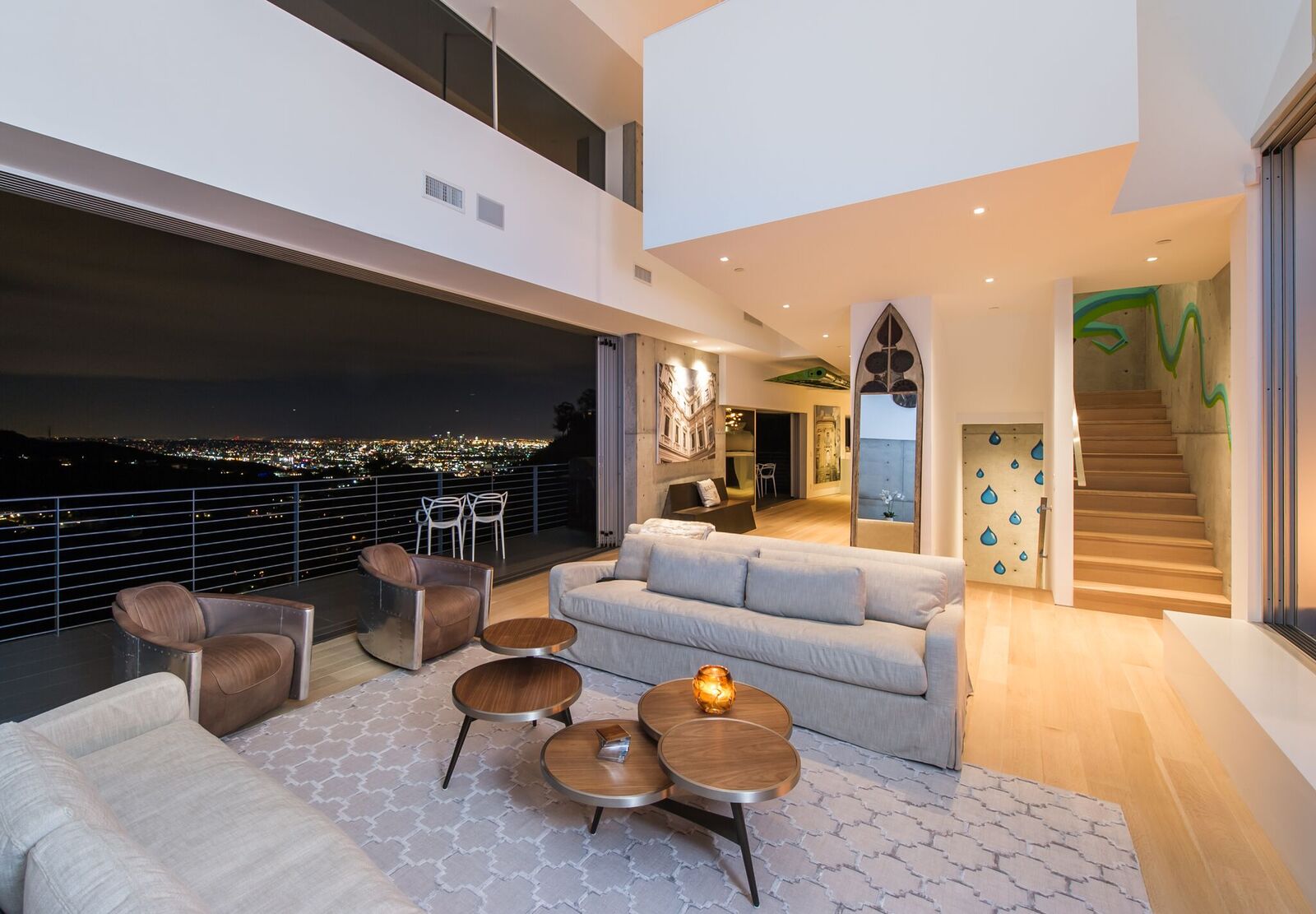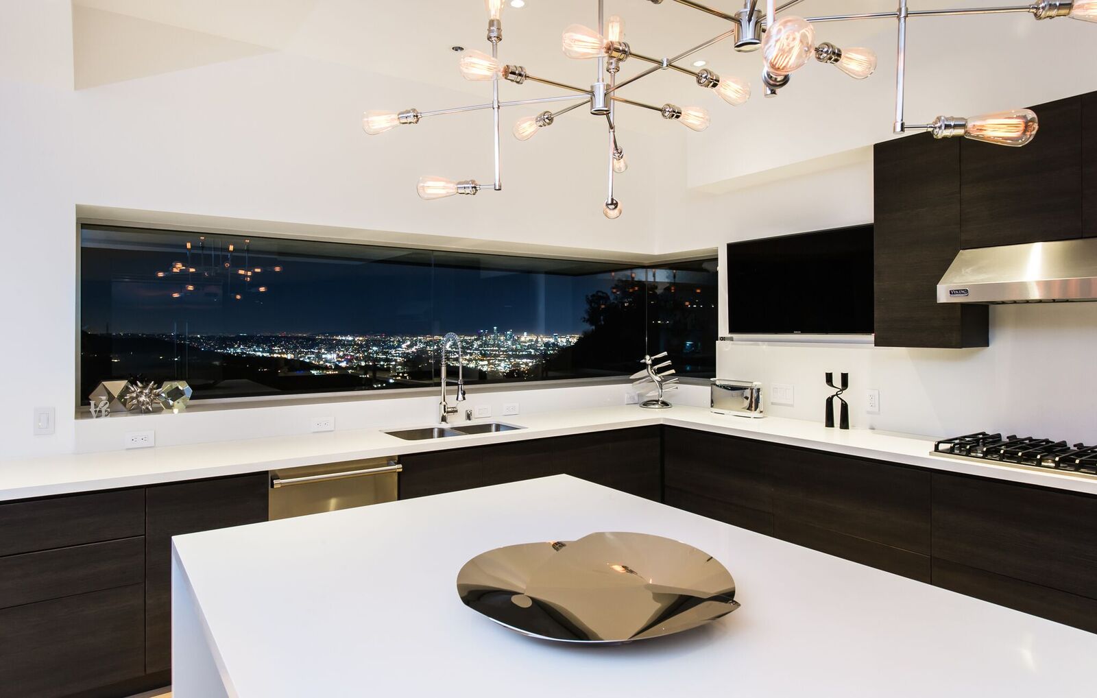 180-degree unobstructed panoramic views from every room in the house. Completely private and gated compound, this is indoor-outdoor living at its finest. Approx 3,000 sq ft with 3 bed 2 1/2 bath. Fleet wood doors open walls of glass to walk out to one of the most beautiful views of the city. Custom built and designed by renowned commercial architect this home combines every aspect of modern living. Glass firewall, Viking appliances, marble, poured concrete walls, porcelanosa tiles,Caesarstone counter-tops, 20 foot ceiling, security cameras, control 4 system, over-sized garage, grass yard with room and plans for pool and hot tub.
